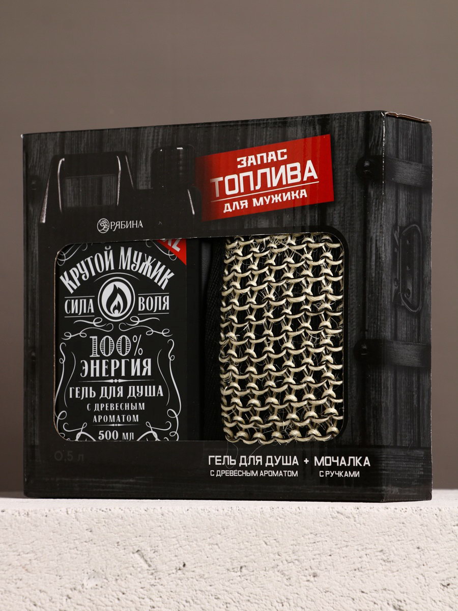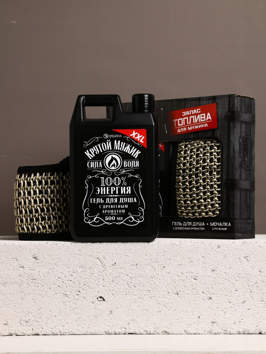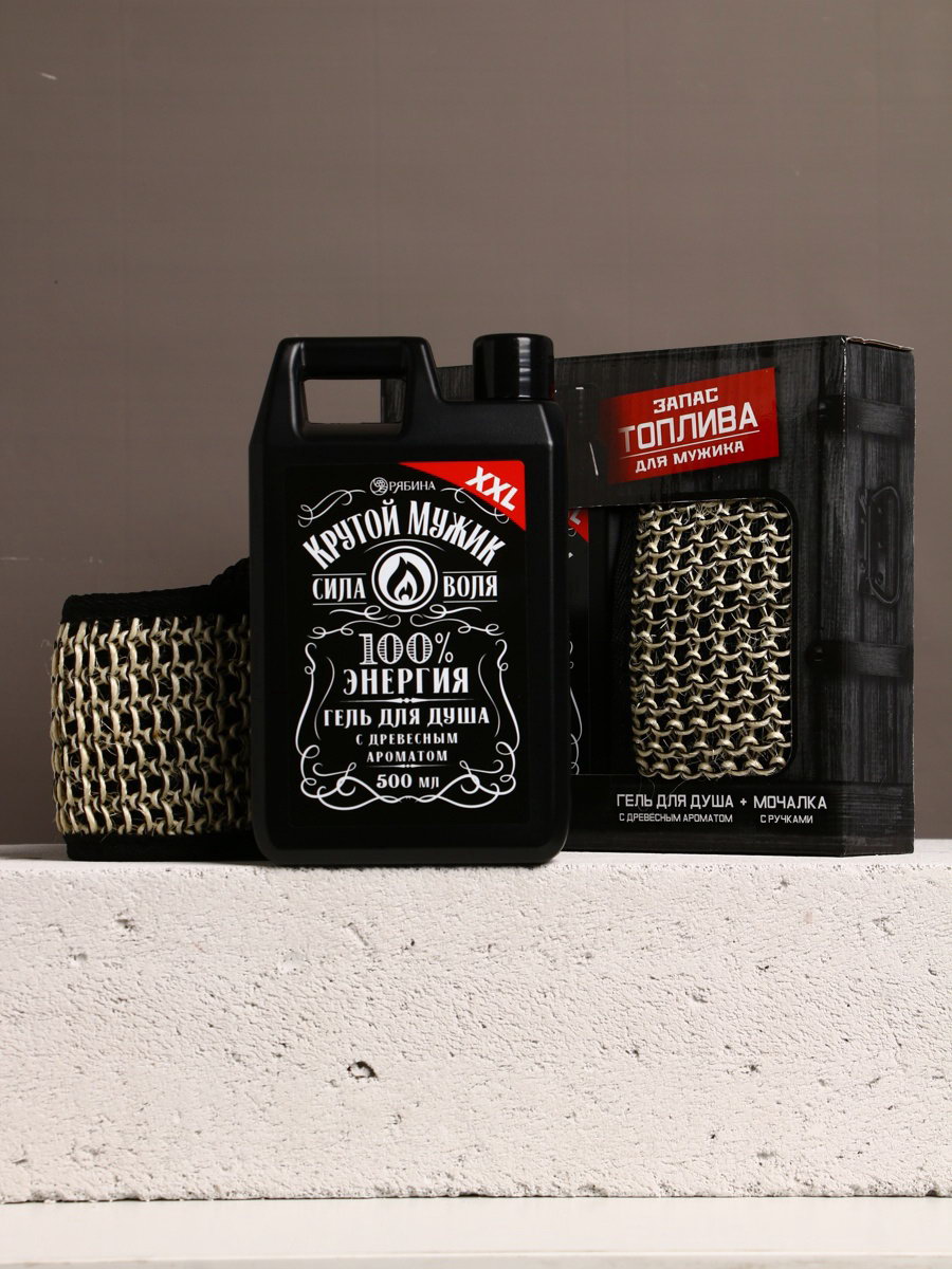 Подарочный набор "Запас топлива", гель для душа канистра 500 мл и мочалка лента, HARD LINE, Россия