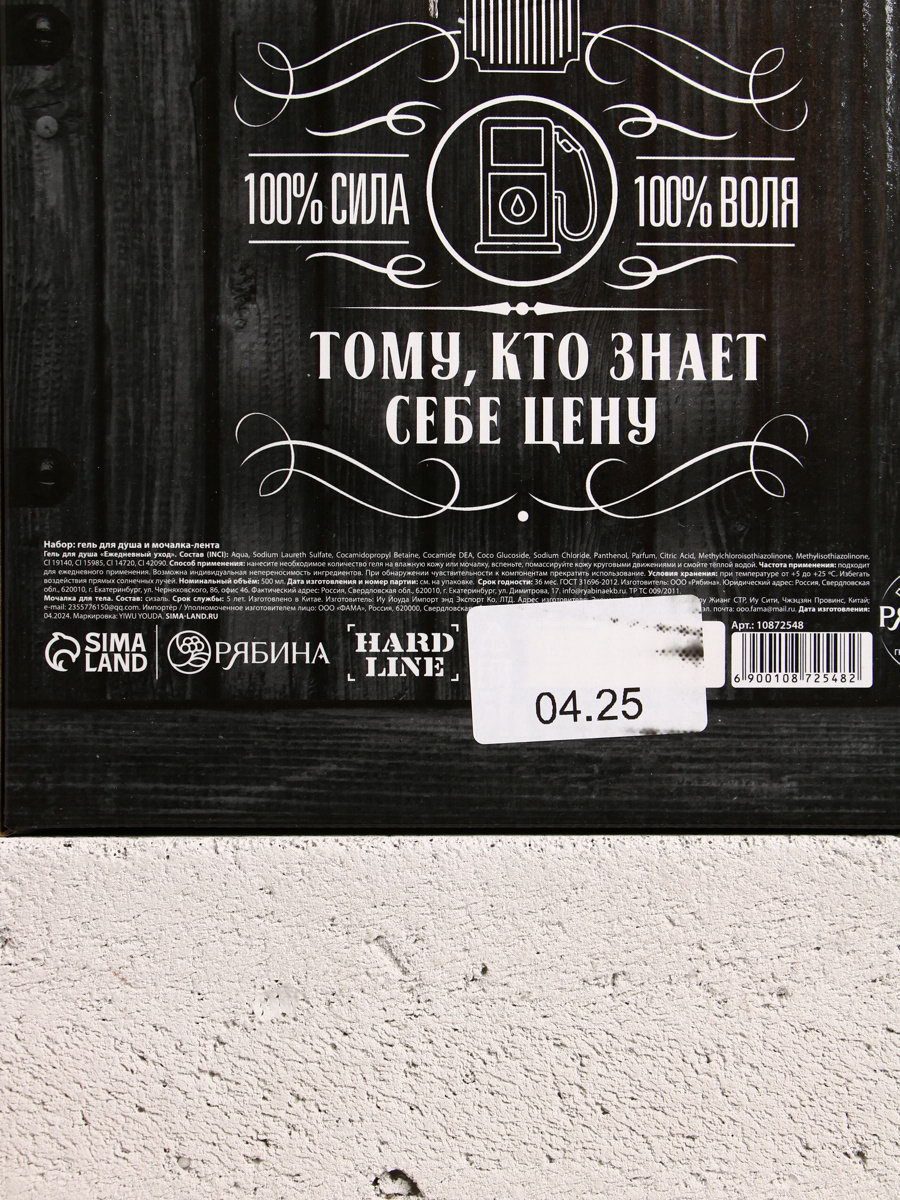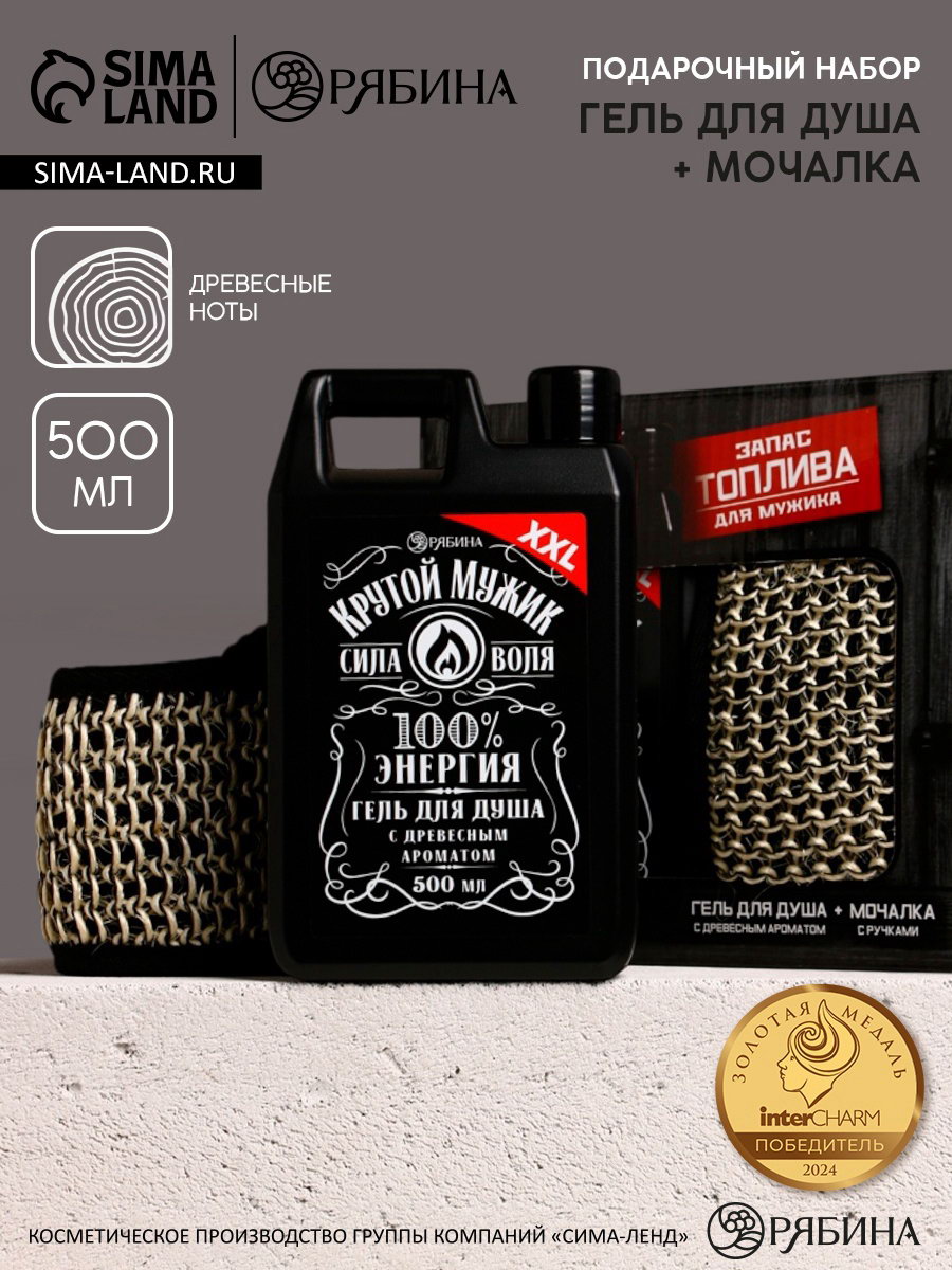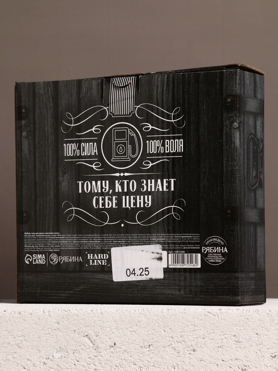Подарочный набор "Запас топлива", гель для душа канистра 500 мл и мочалка лента, HARD LINE, Россия