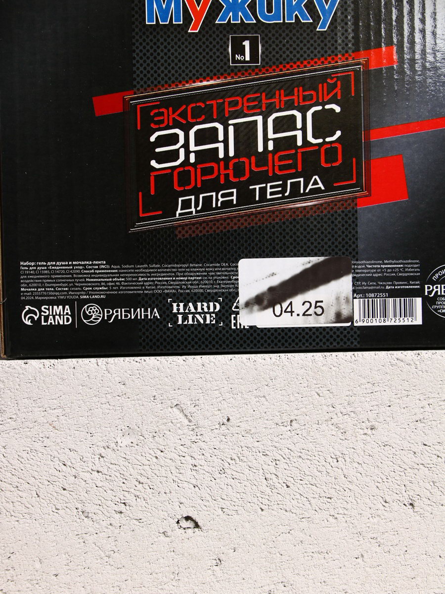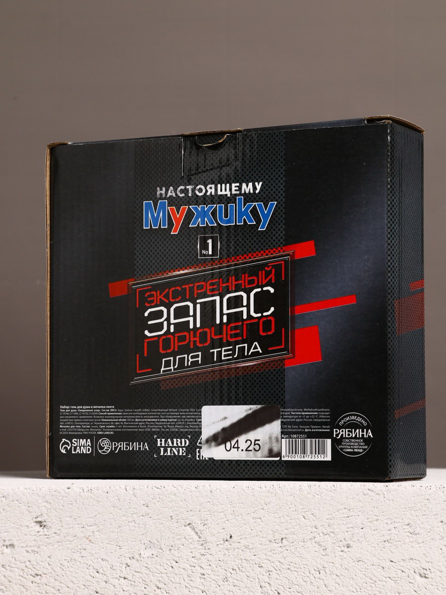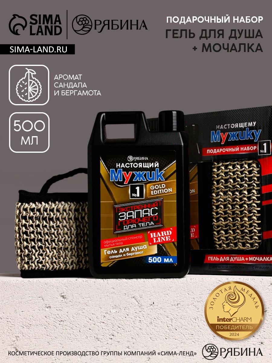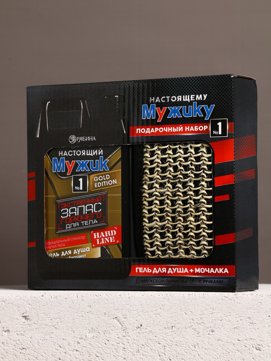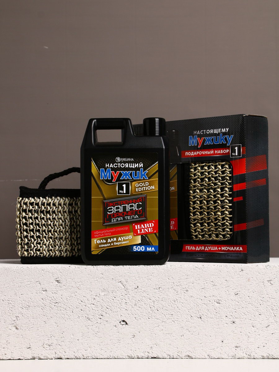 Подарочный набор "Настоящему мужику", гель для душа канистра 500 мл и мочалка лента, HARD LINE, Россия
