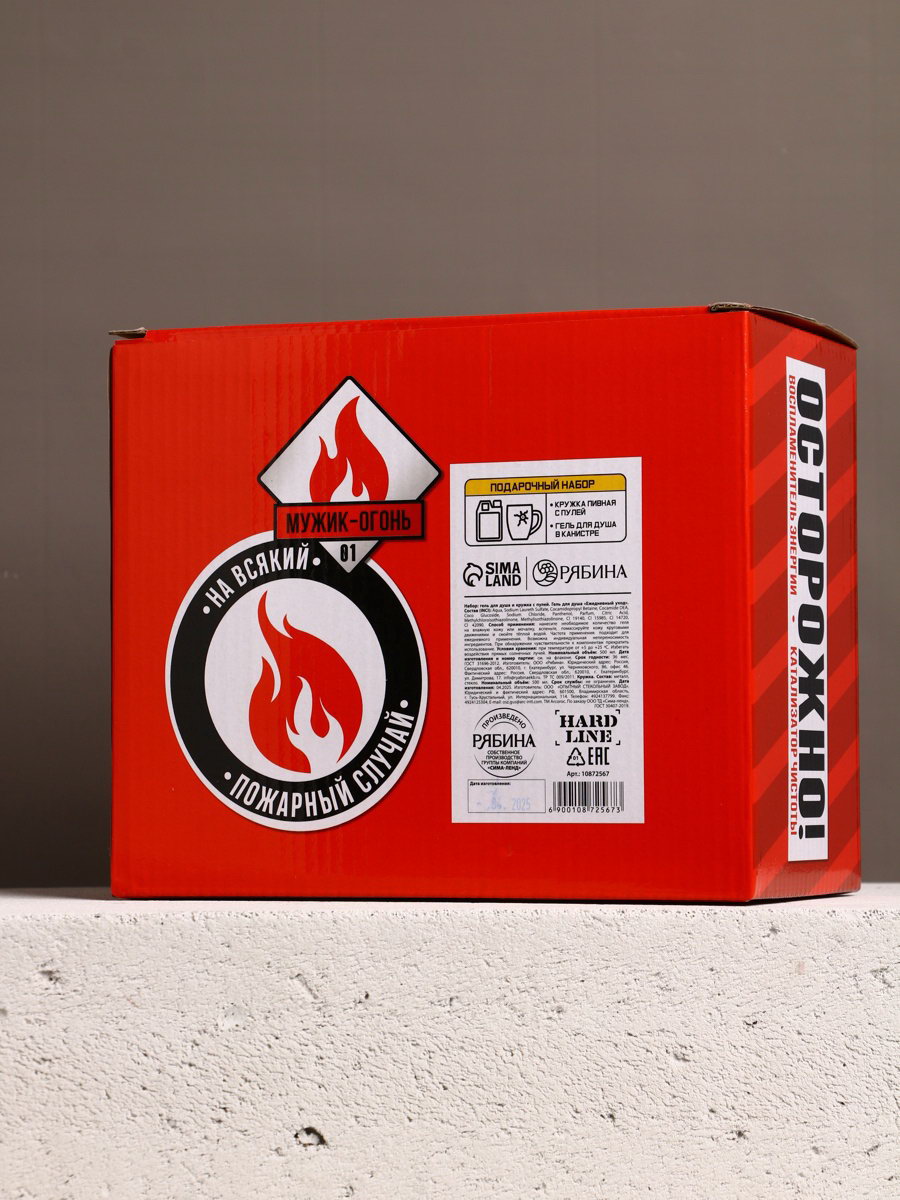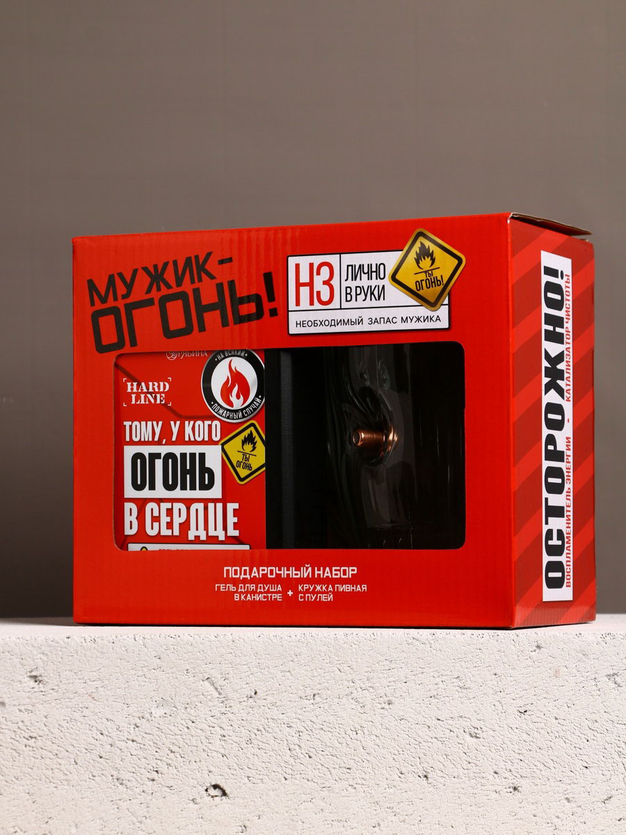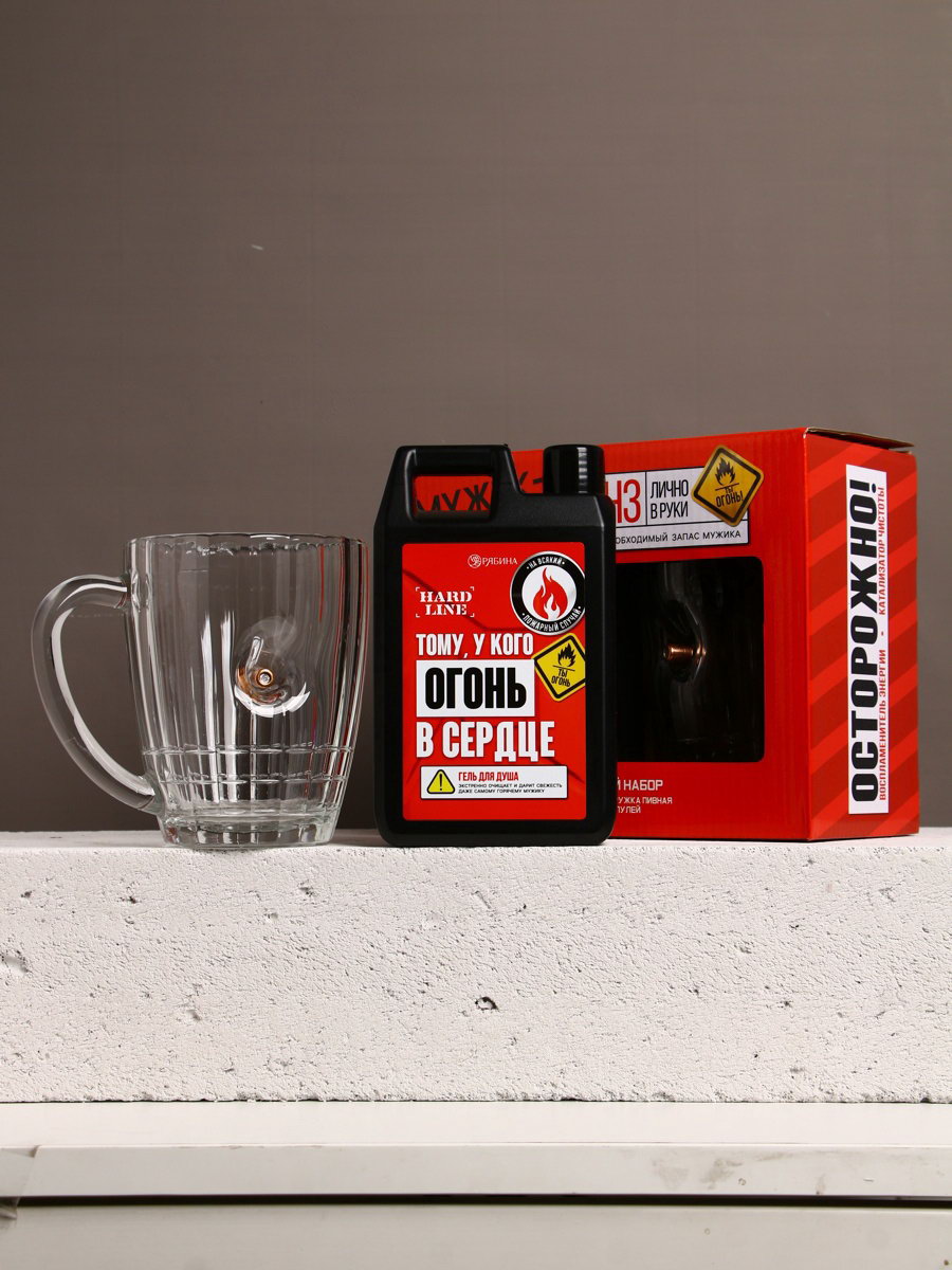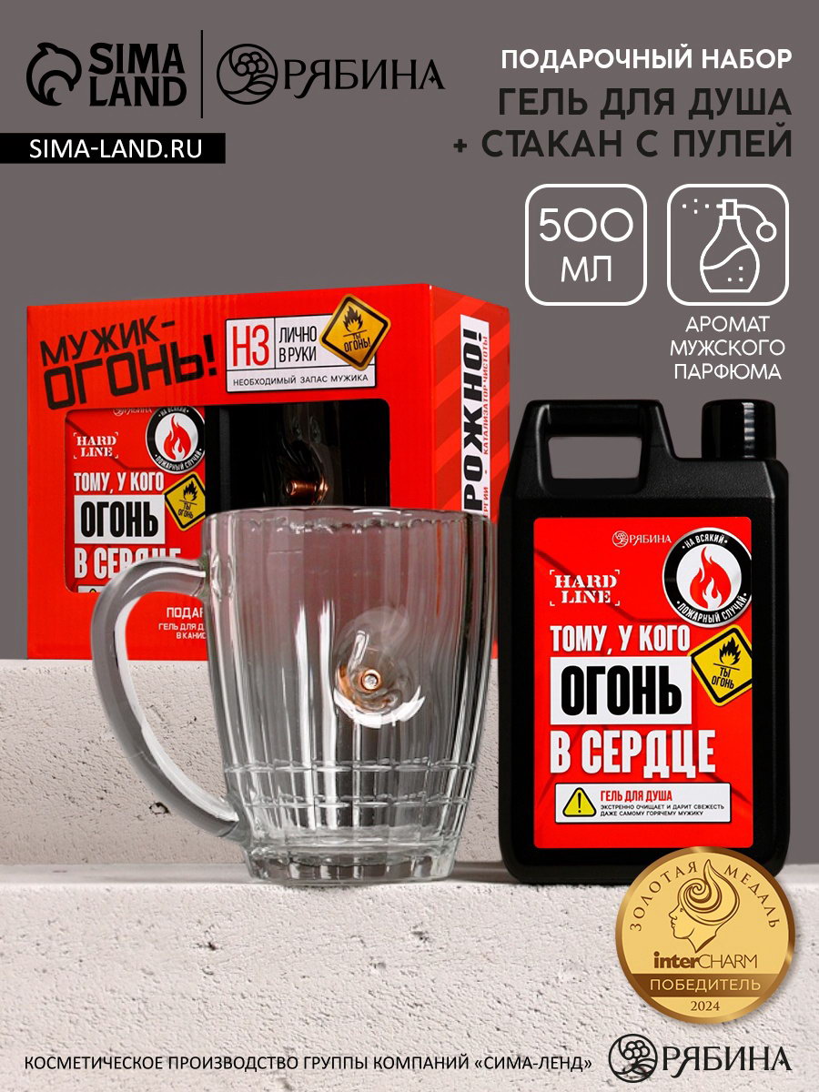 Подарочный набор "Мужику огонь", гель для душа канистра 500 мл и стакан с пулей, HARD LINE, Россия