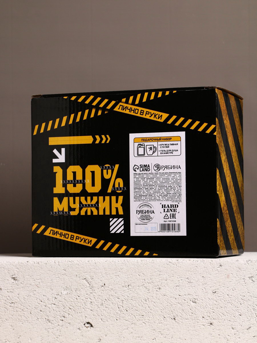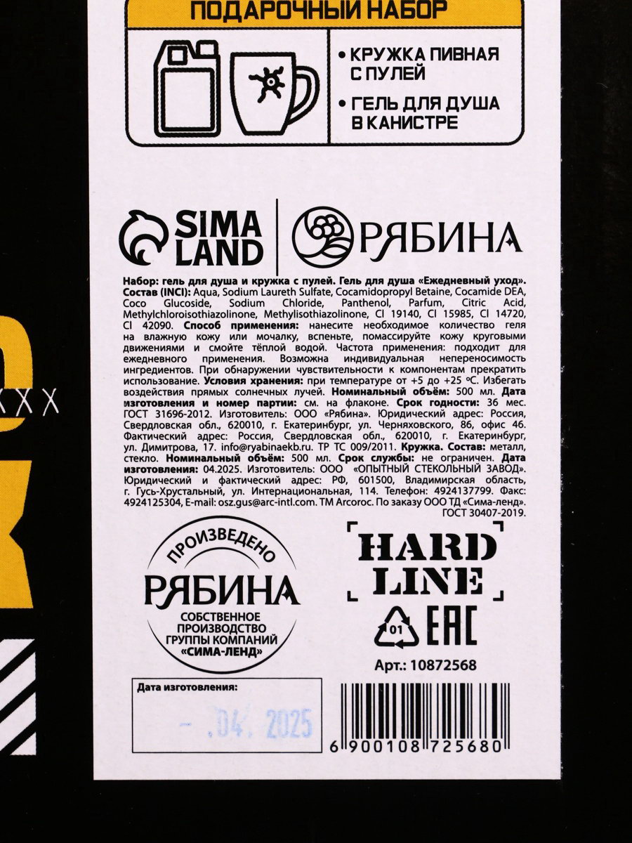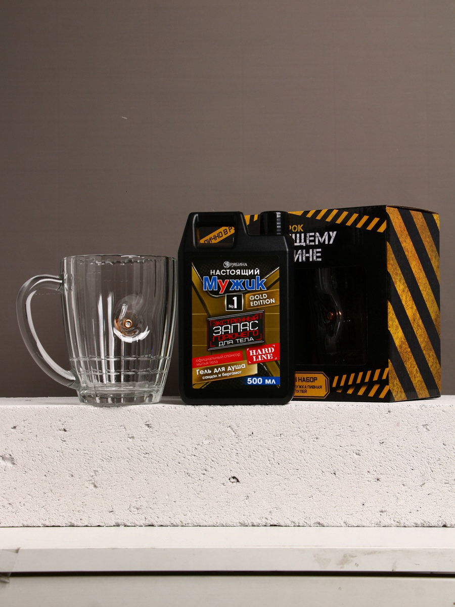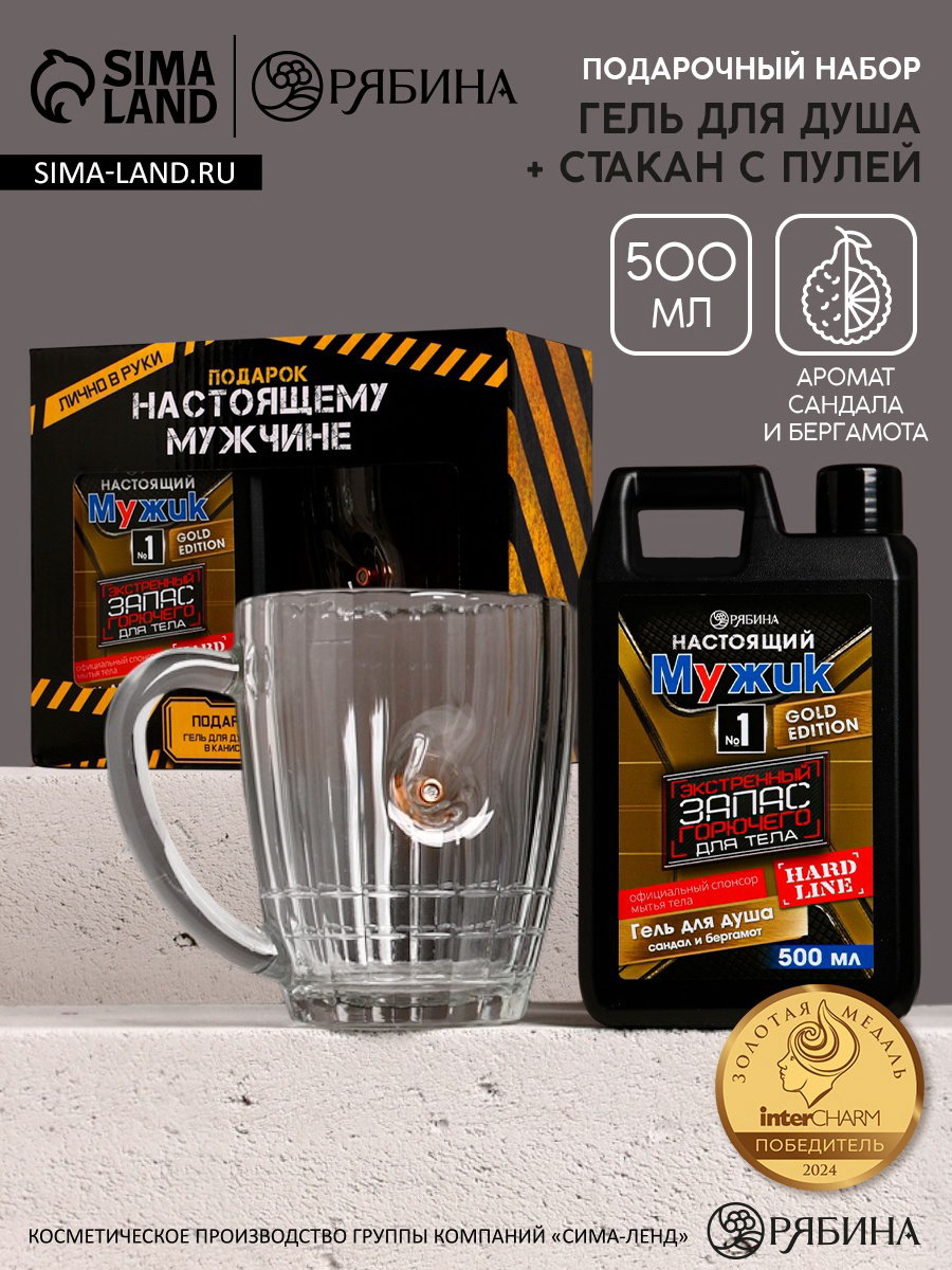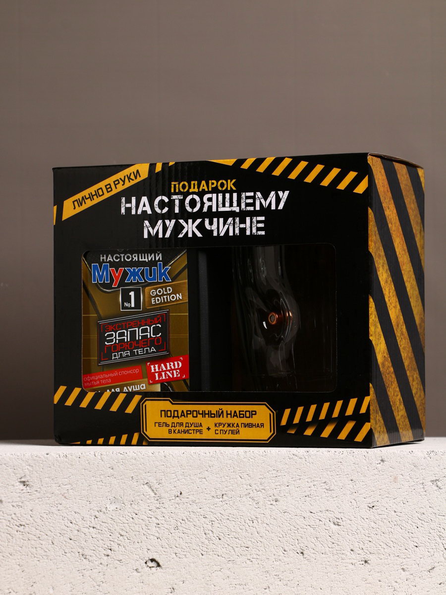 Подарочный набор "Настоящему мужику", гель для душа канистра 500 мл и стакан с пулей, HARD LINE, Россия