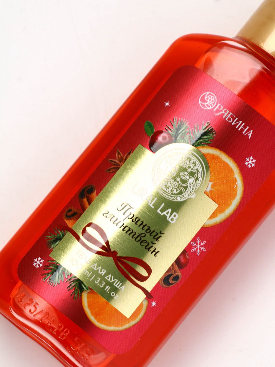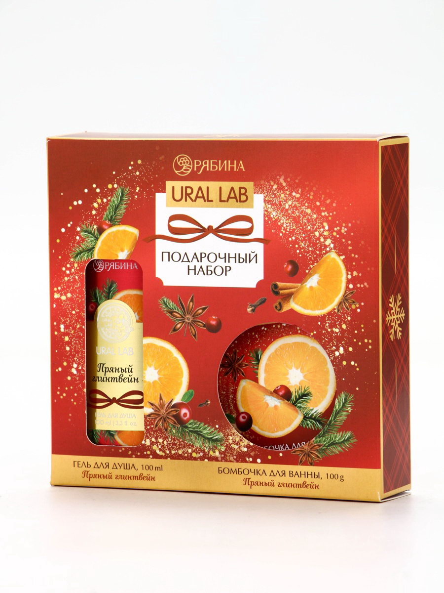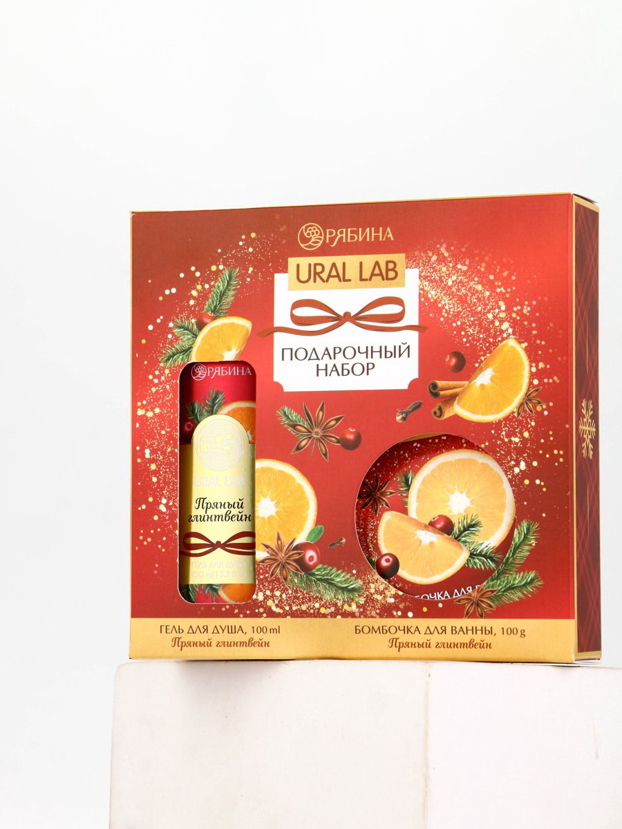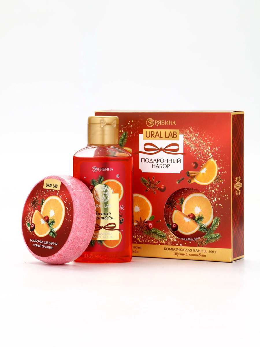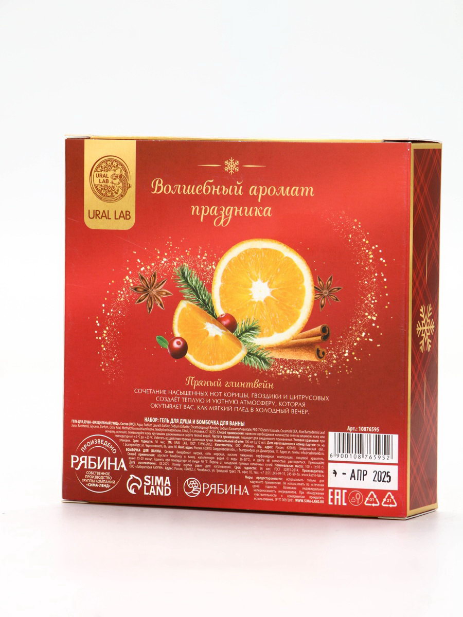 Новогодний подарочный набор косметики: гель для душа 100 мл и бомбочка для ванны 100 г, аромат пряный глинтвейн, URAL LAB, Россия