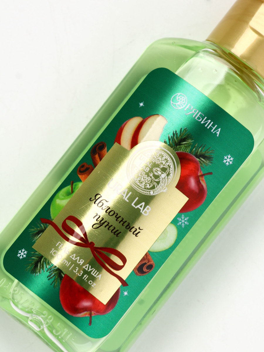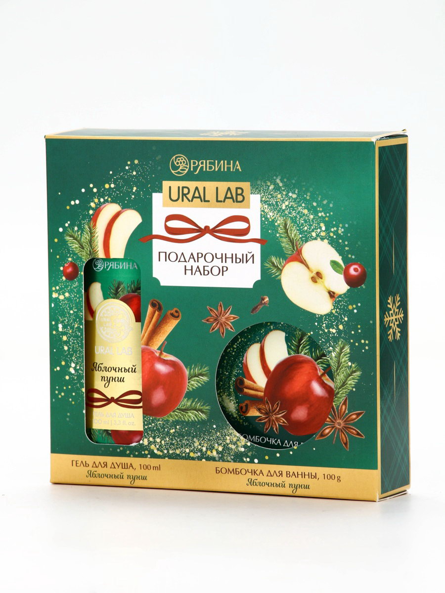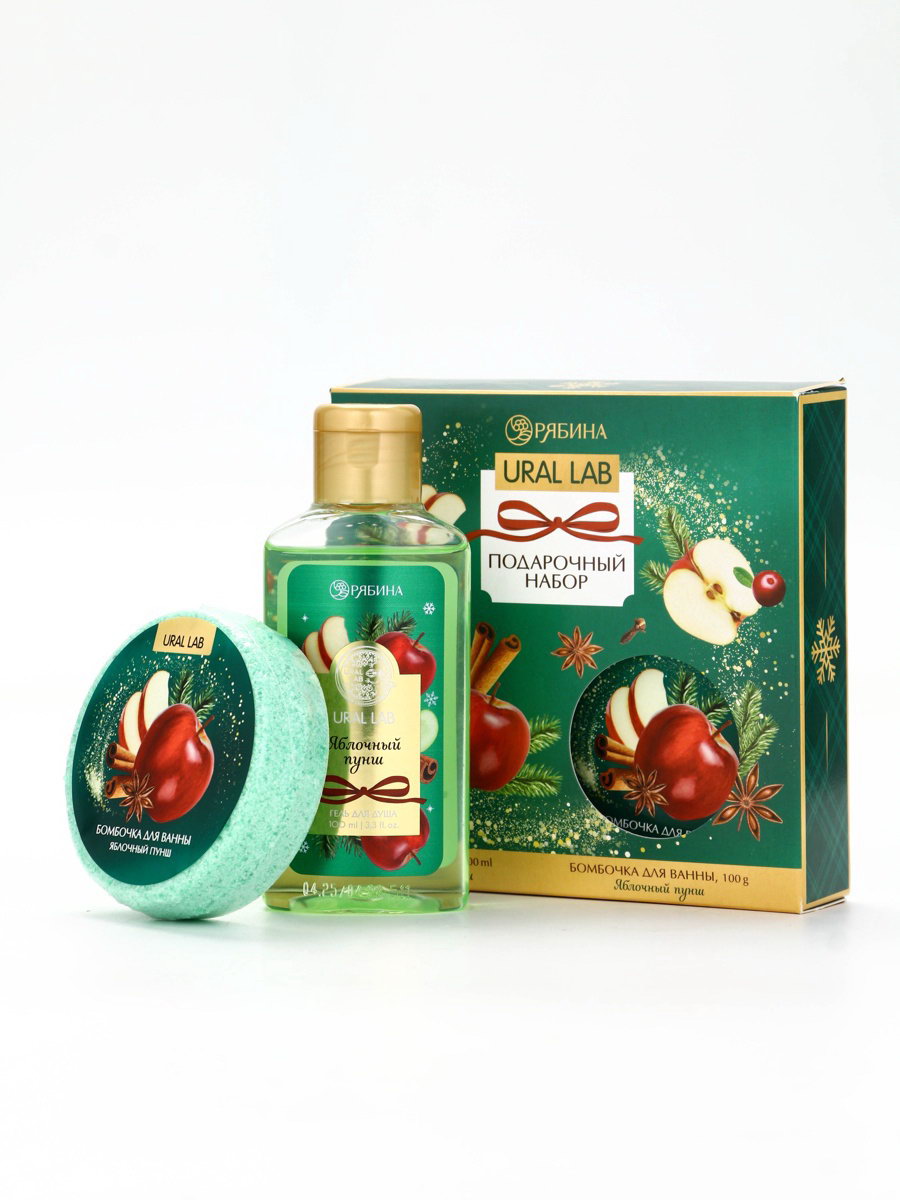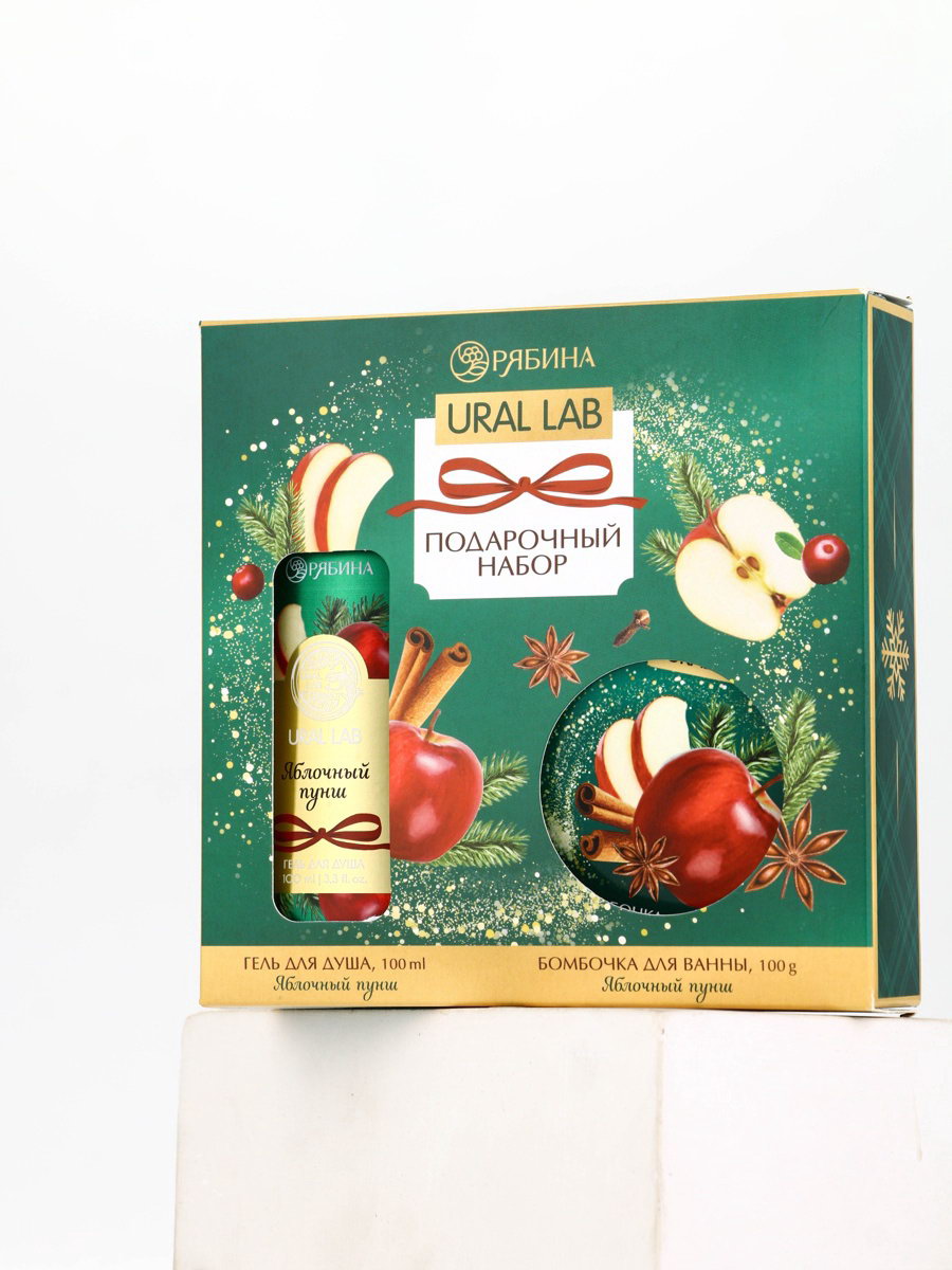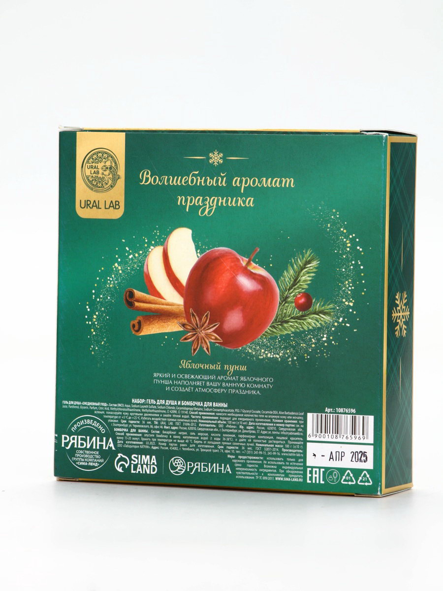Новогодний подарочный набор косметики: гель для душа 100 мл и бомбочка для ванны 100 г, аромат яблочный пунш, URAL LAB, Россия