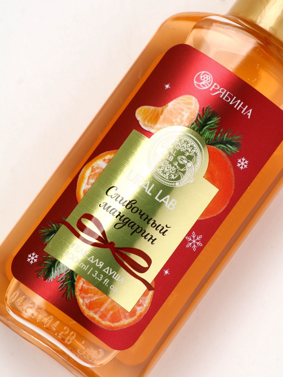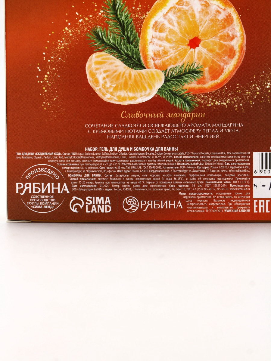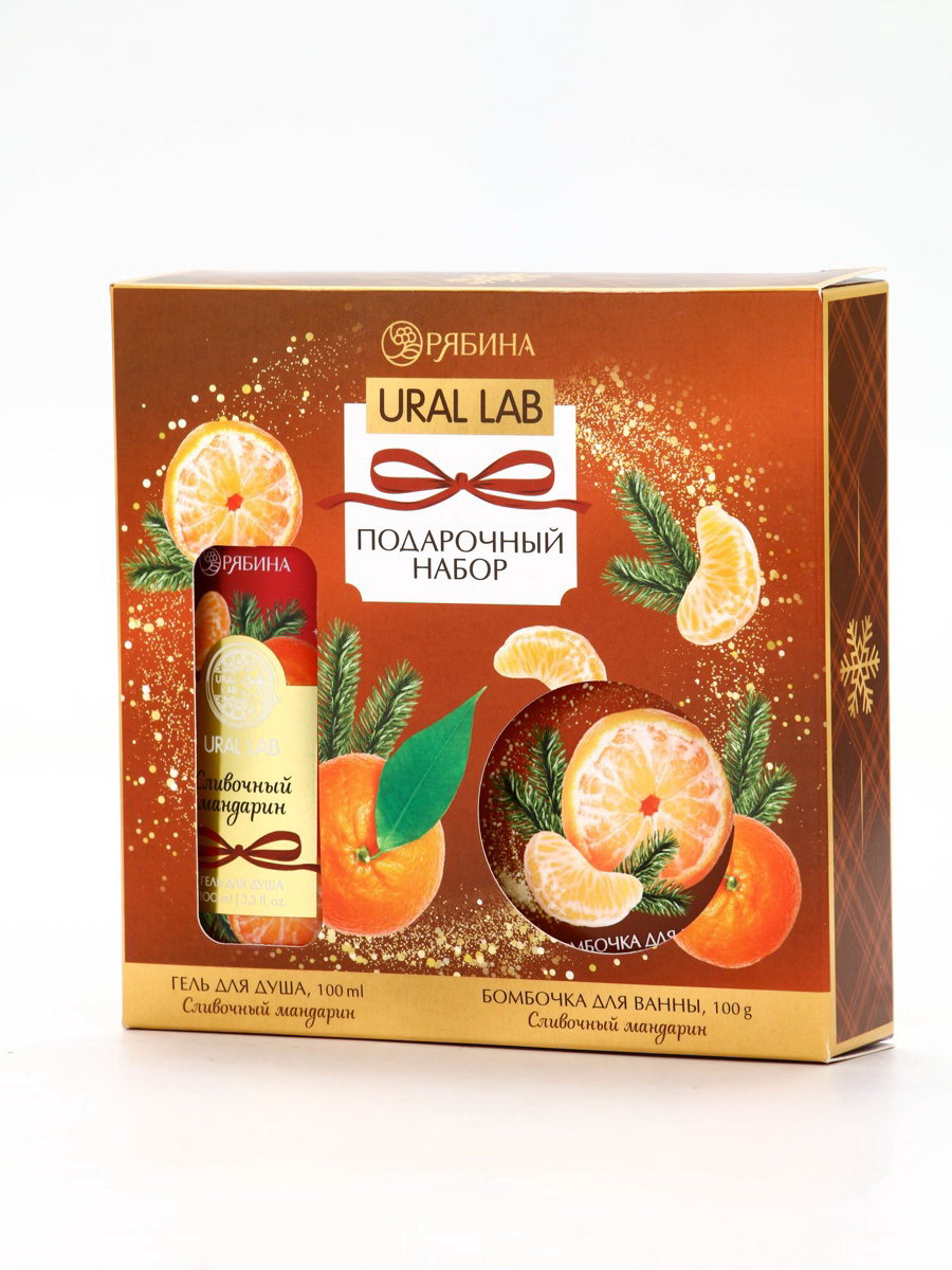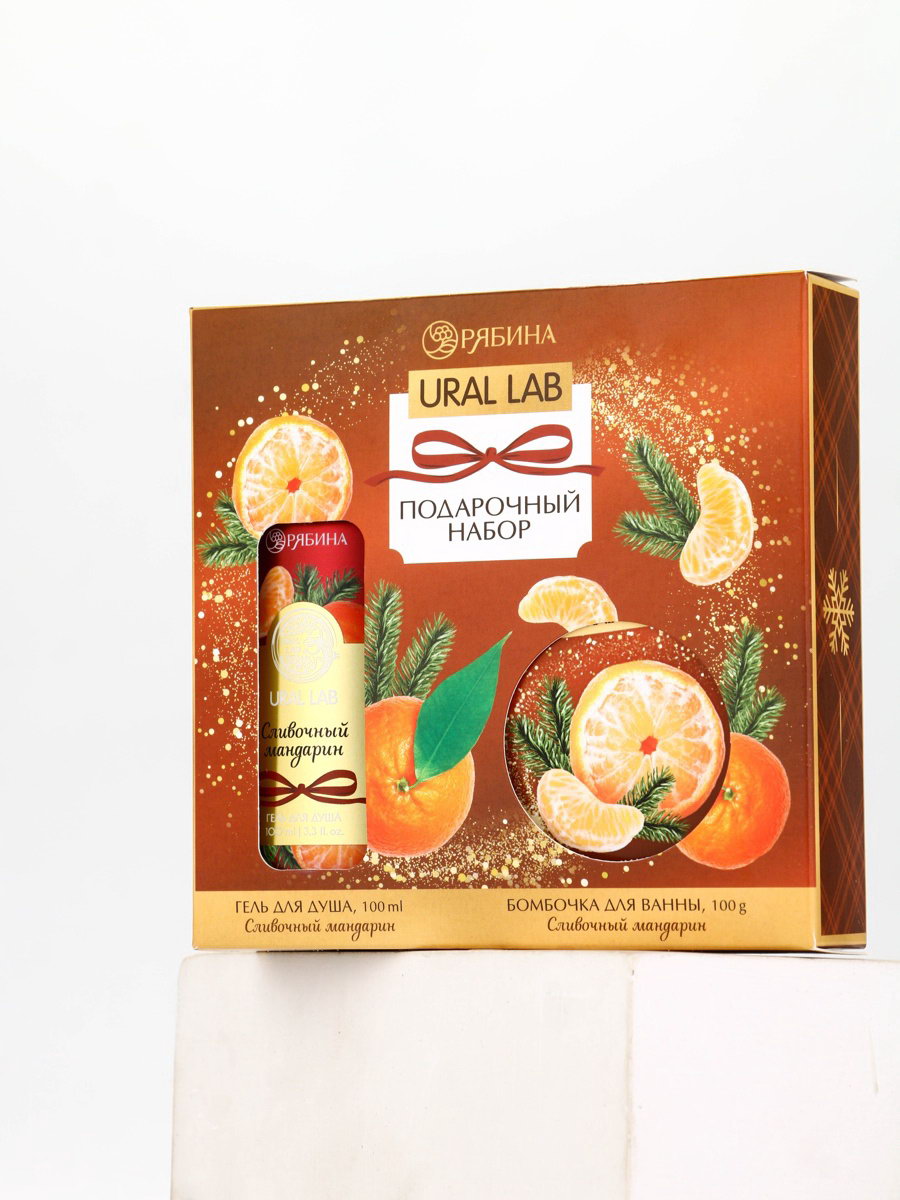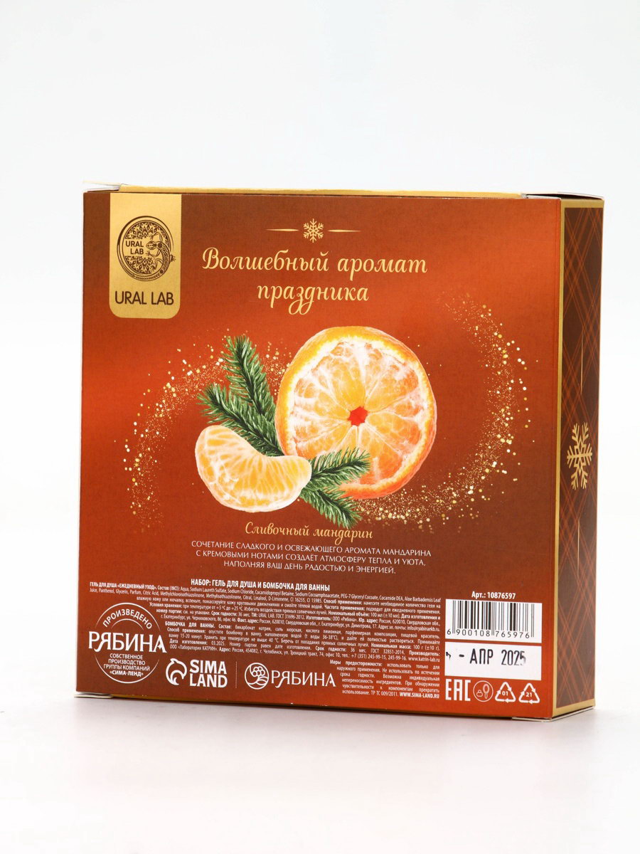 Новогодний подарочный набор косметики: гель для душа 100 мл и бомбочка для ванны 100 г, аромат мандарин, URAL LAB, Россия