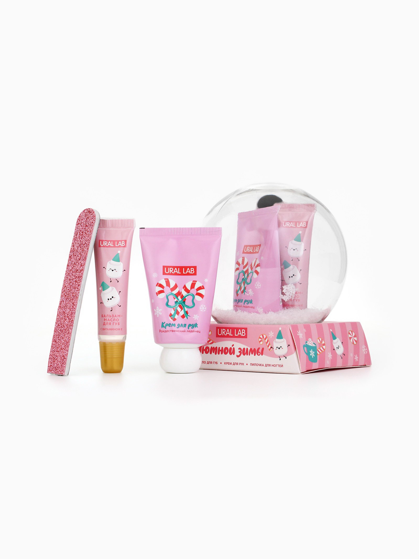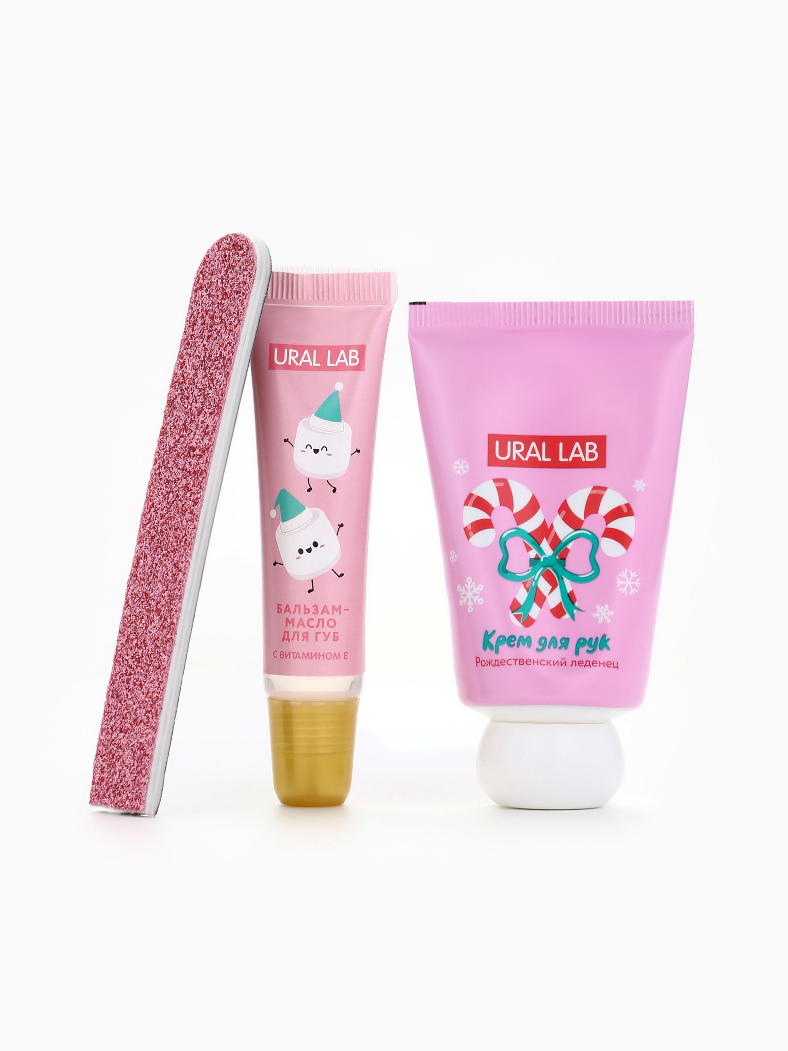 Новогодний подарочный набор косметики: крем для рук, масло для губ и пилочка для ногтей, 10x10x15 см., URAL LAB, Китай