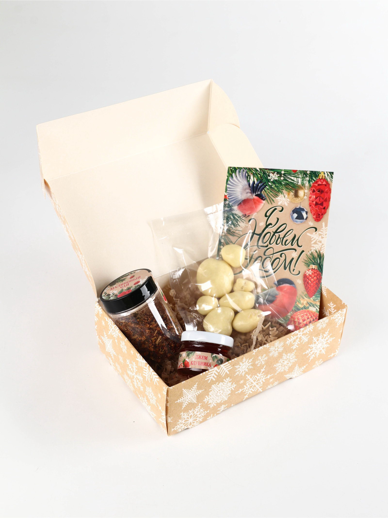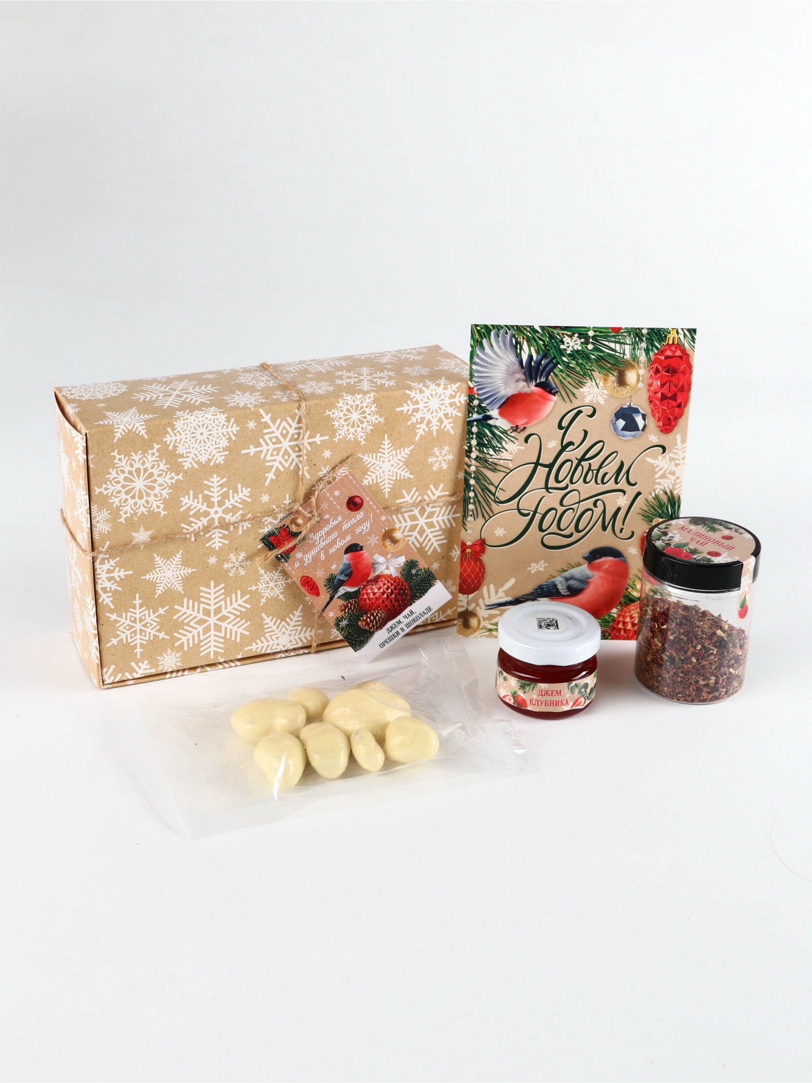 Подарочный набор новогодний "Здоровья и душевного тепла": джем 30 гр, чай 20 гр, орехи 50 гр, Доброе здоровье, Россия
