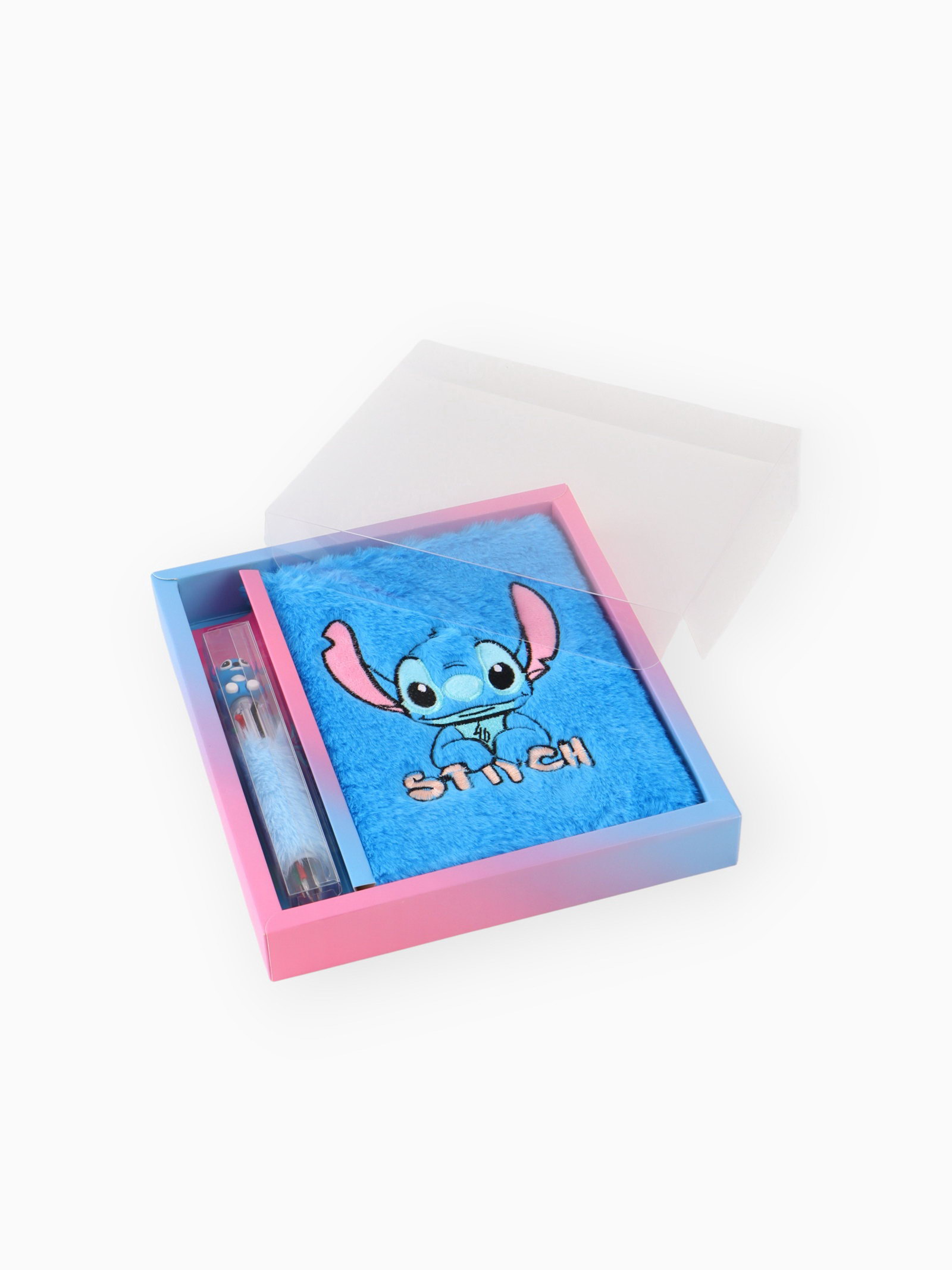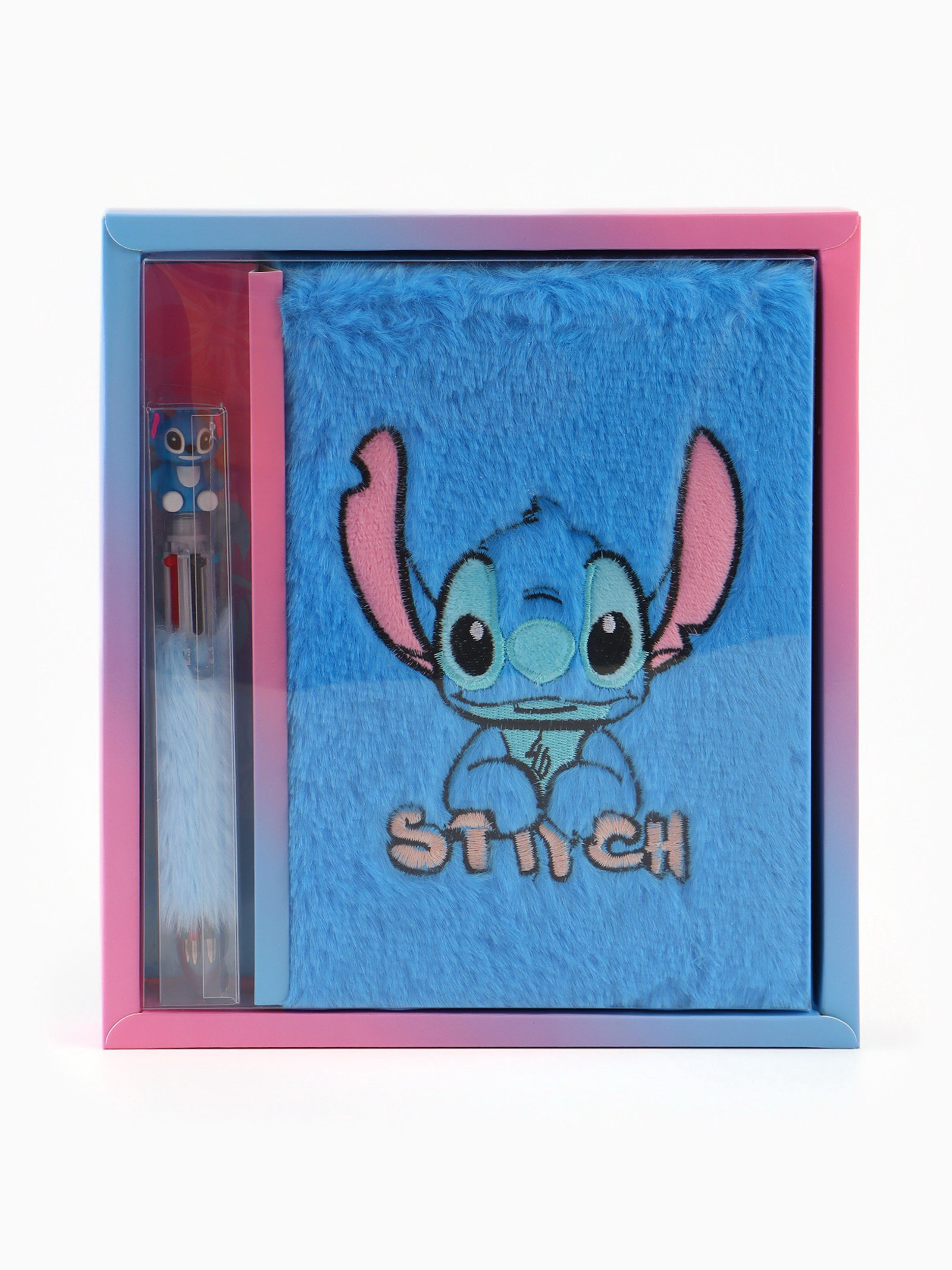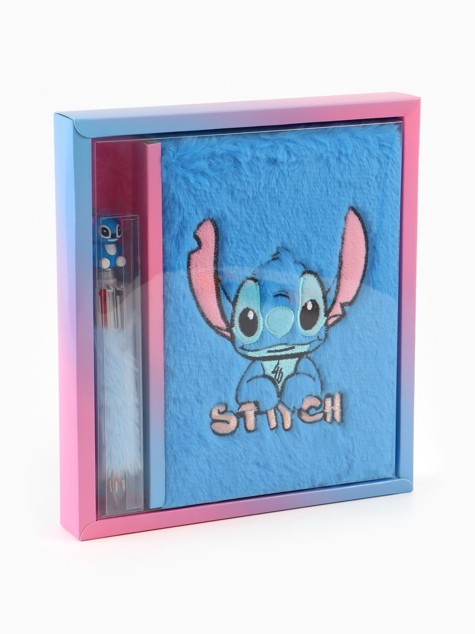 Блокнот пушистый и ручка многоцветная "Стич", голубой, 24x21.5x3 см., Disney, Китай