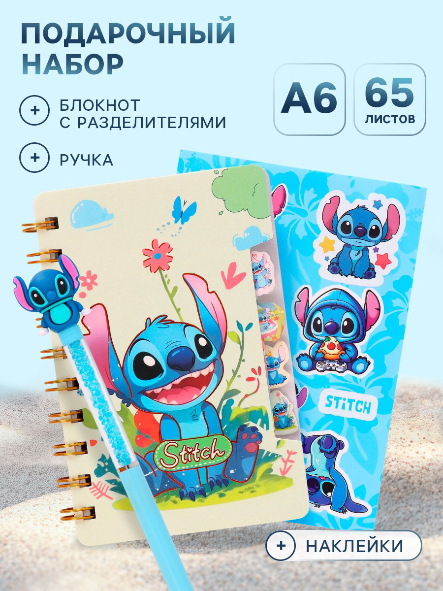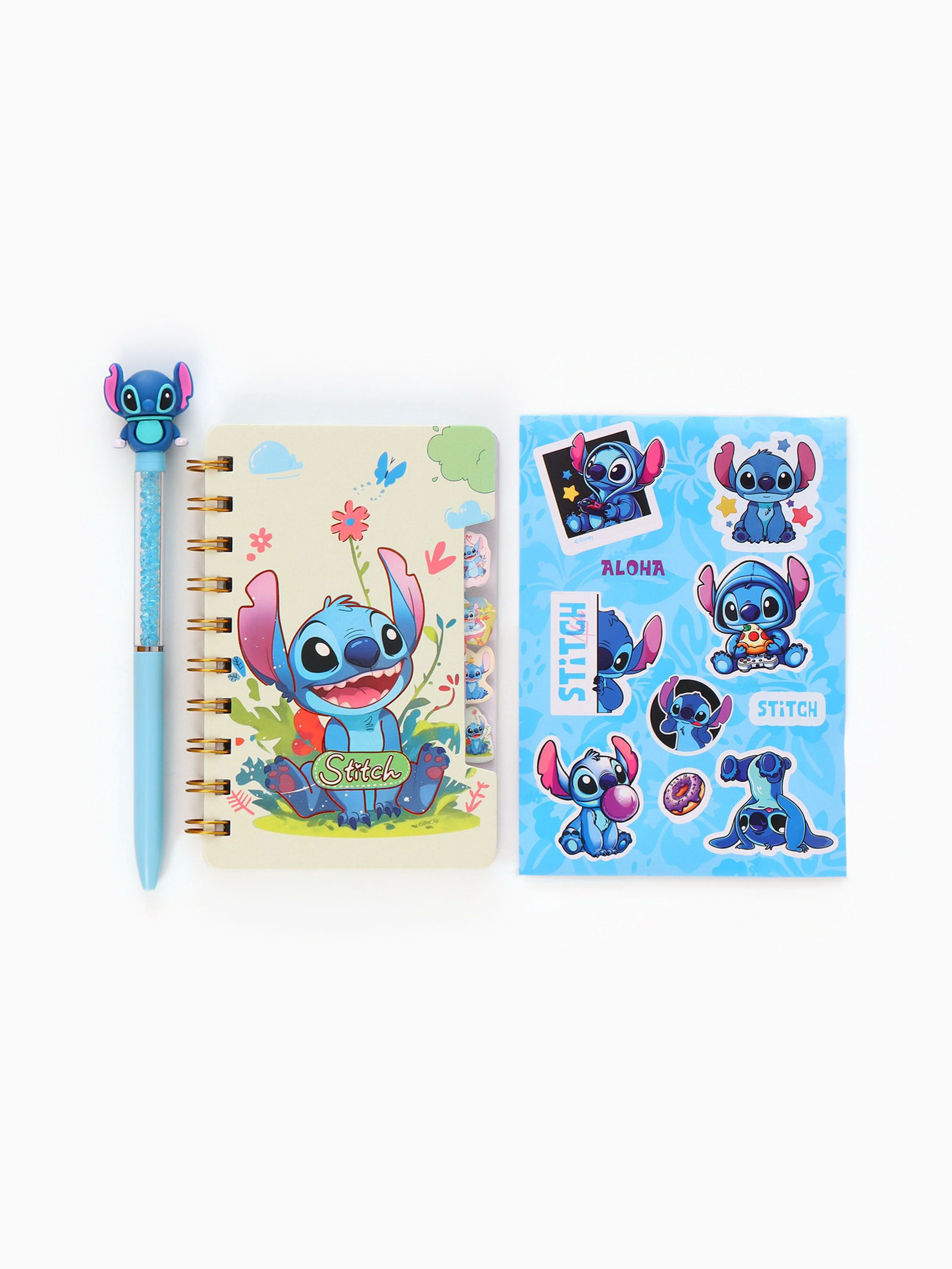 Подарочный набор: блокнот А6, 65 л, ручка и стикеры-наклейки, Стич, 14x9x2 см., Disney, Китай