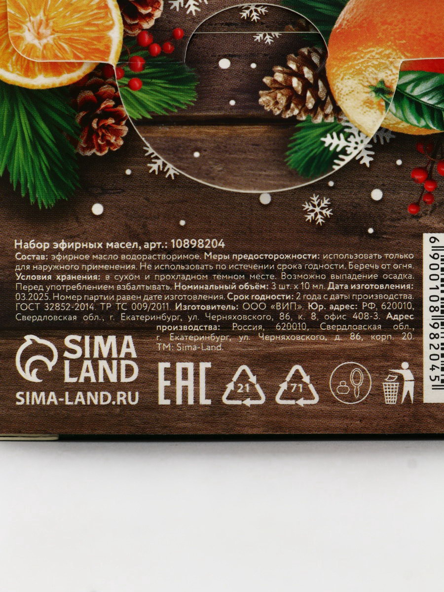 Эфирное масло "С новым годом", 3 шт x 10 мл, Банный Дух, 30 мл., БАННЫЙ ДУХ, Россия