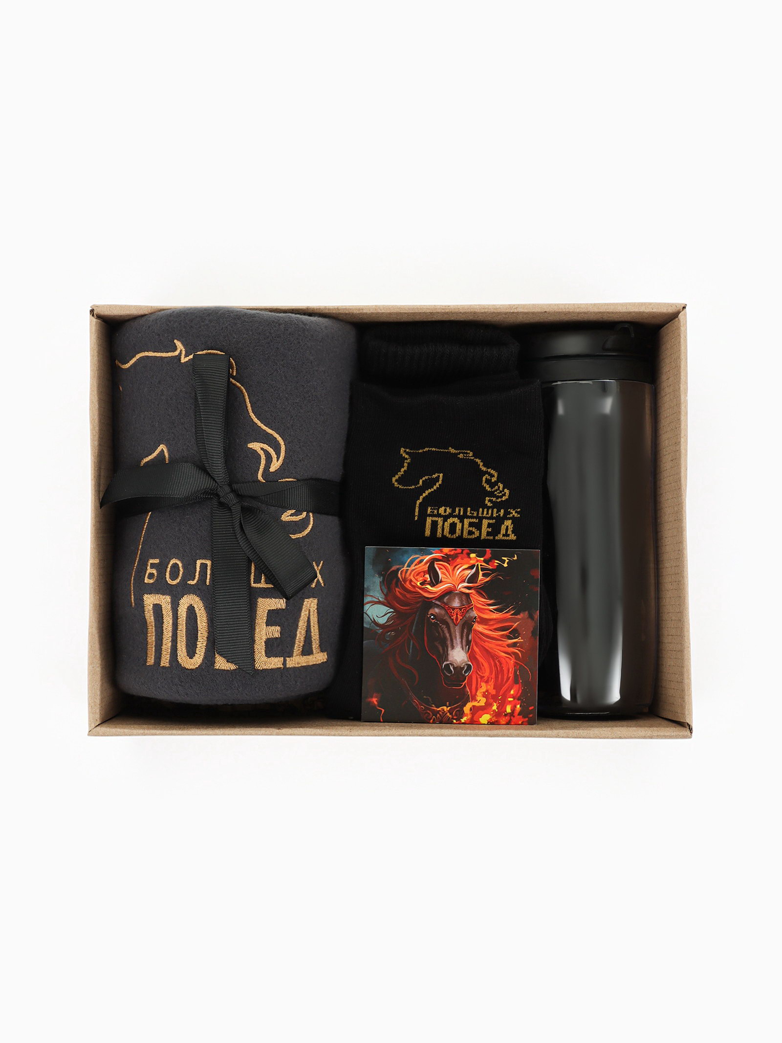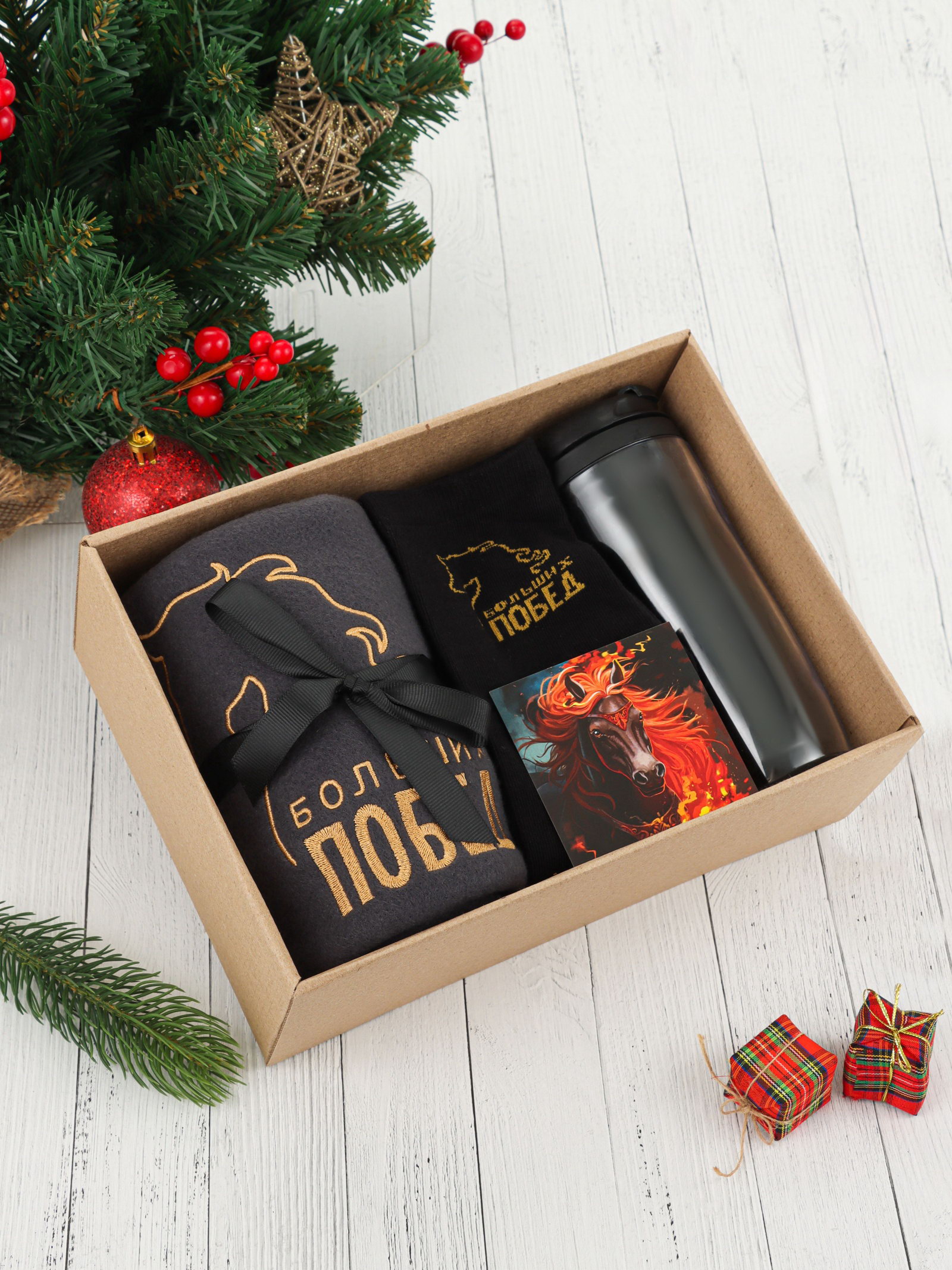 Тепло и забота в каждом элементе Этот набор помогает создать атмосферу уюта и заботы в зимние дни. Плед согревает, перчатки и носки сохраняют тепло, а термостакан поддерживает любимый напиток горячим. Такой подарок становится выражением внимания и желания сделать праздник особенным для близких. Он объединяет практичность с праздничным настроением, наполняя дом теплом и радостью. | ||