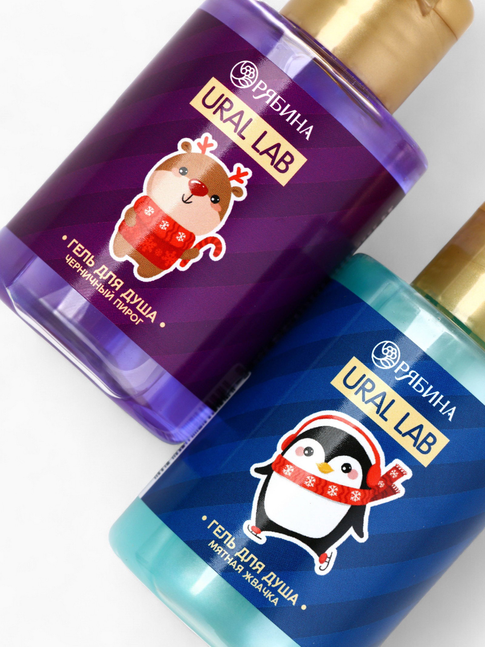 Новогодний подарочный набор косметики Gift for you: гель для душа 2 шт. x 100 мл, мочалка для тела, URAL LAB, Россия