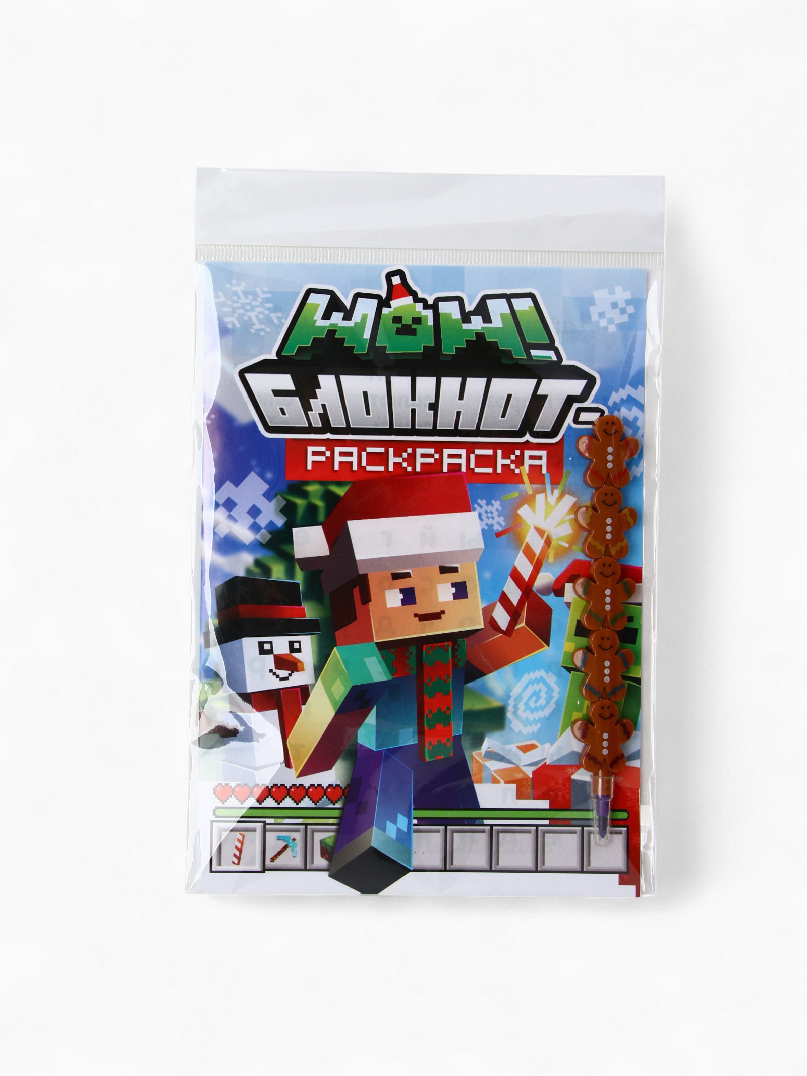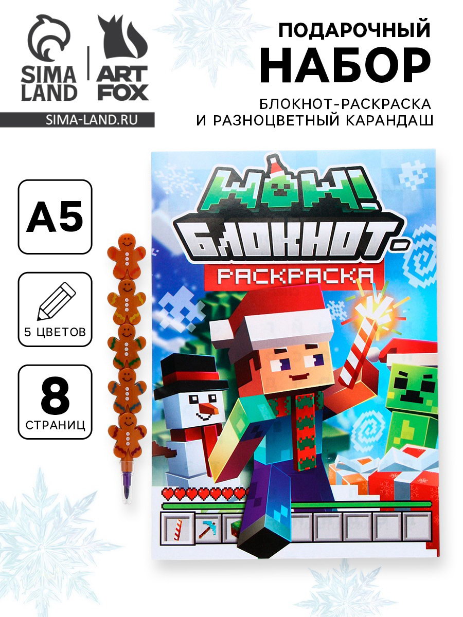 Подарочный набор новогодний, блокнот-раскраска и разноцветный карандаш "Пиксели", ArtFox, Россия