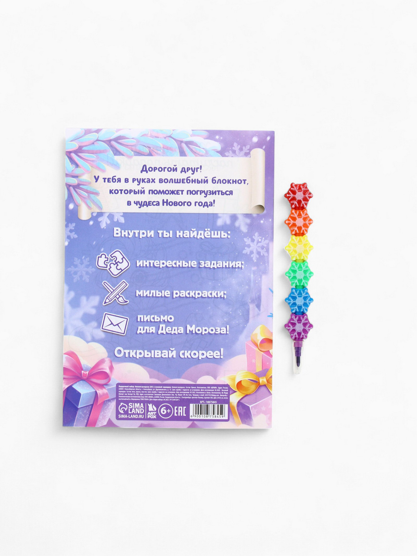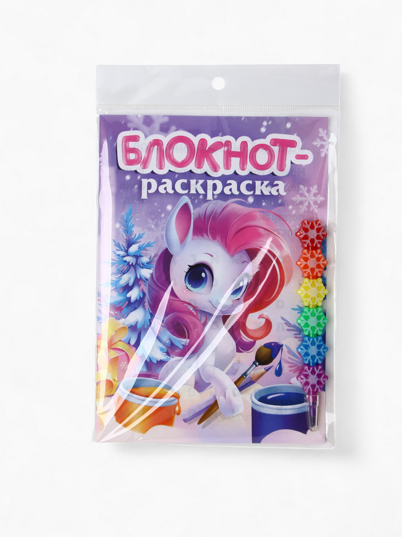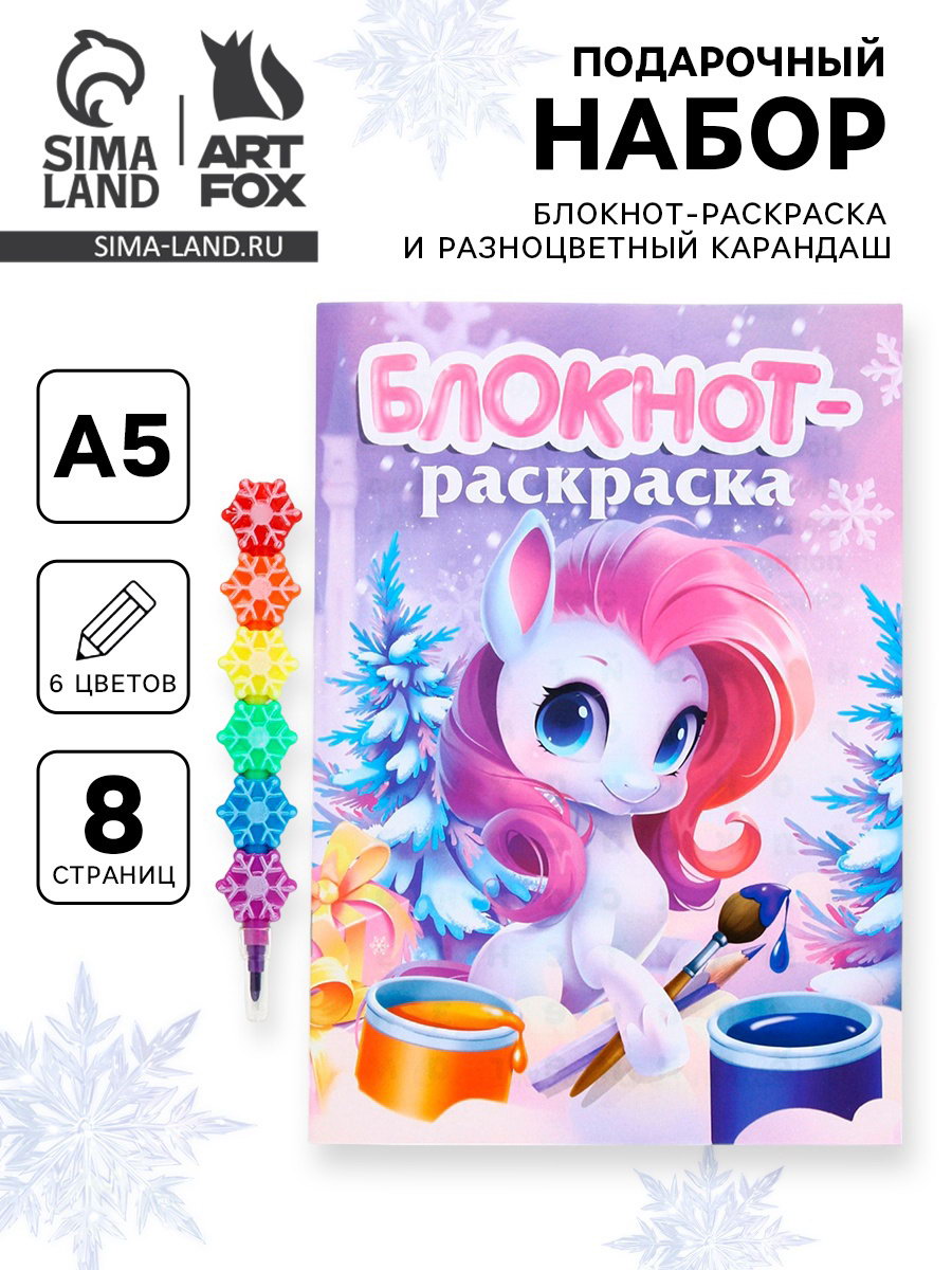 Подарочный набор новогодний, блокнот-раскраска и разноцветный карандаш "Лошадка", ArtFox, Россия