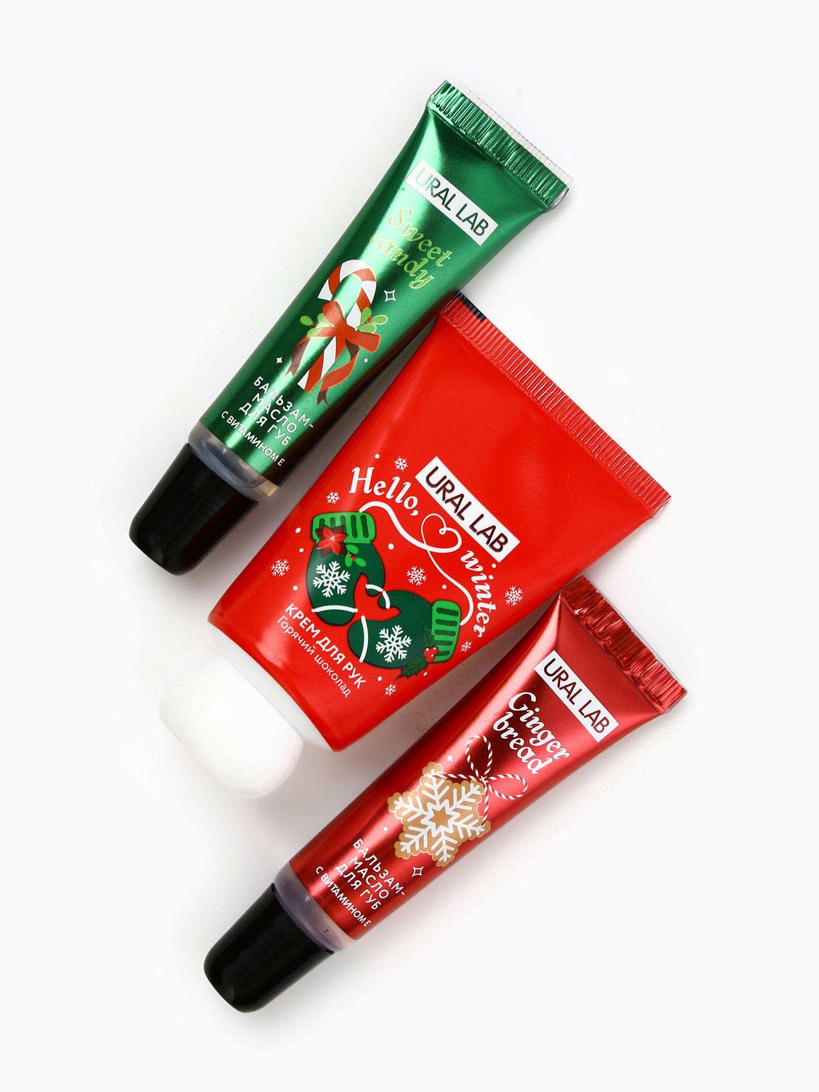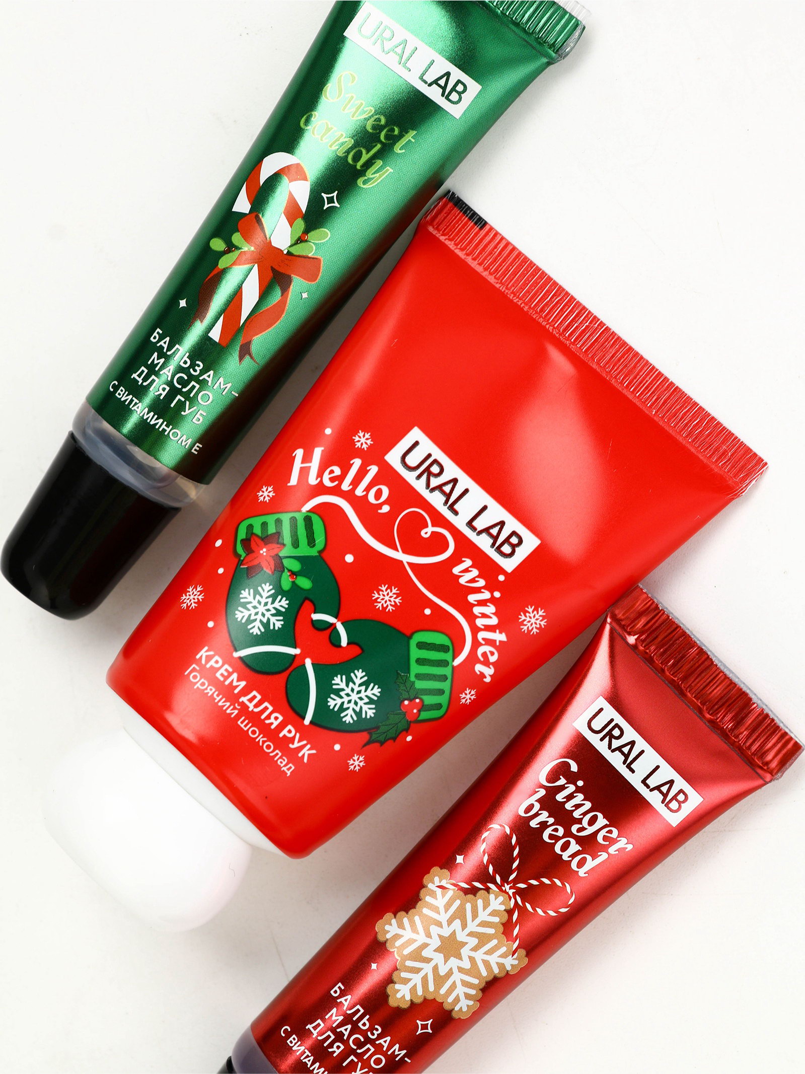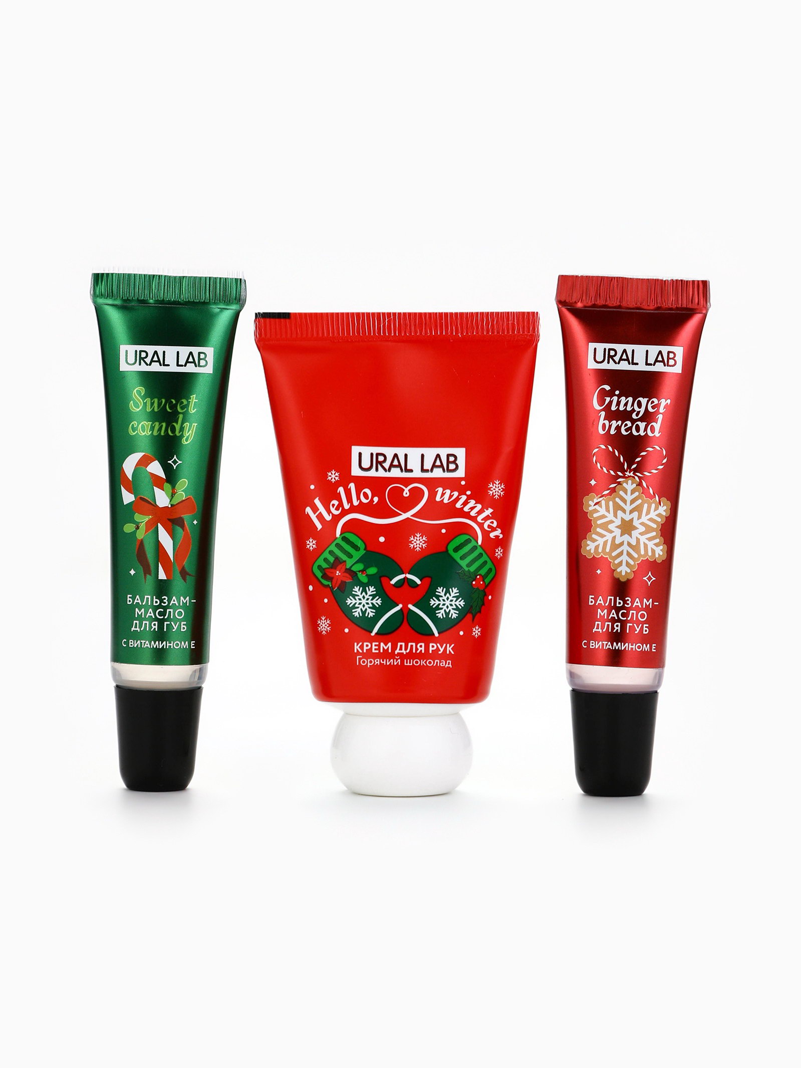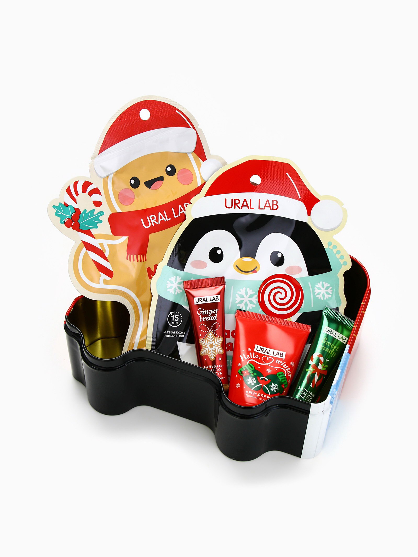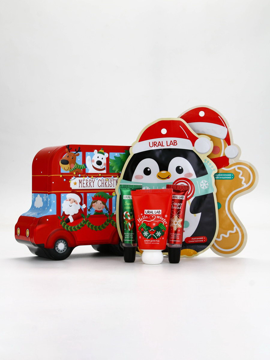 Новогодний подарочный набор косметики: маска для лица 2 шт., крем для рук и бальзам для губ, 4x17x13 см., URAL LAB, Китай