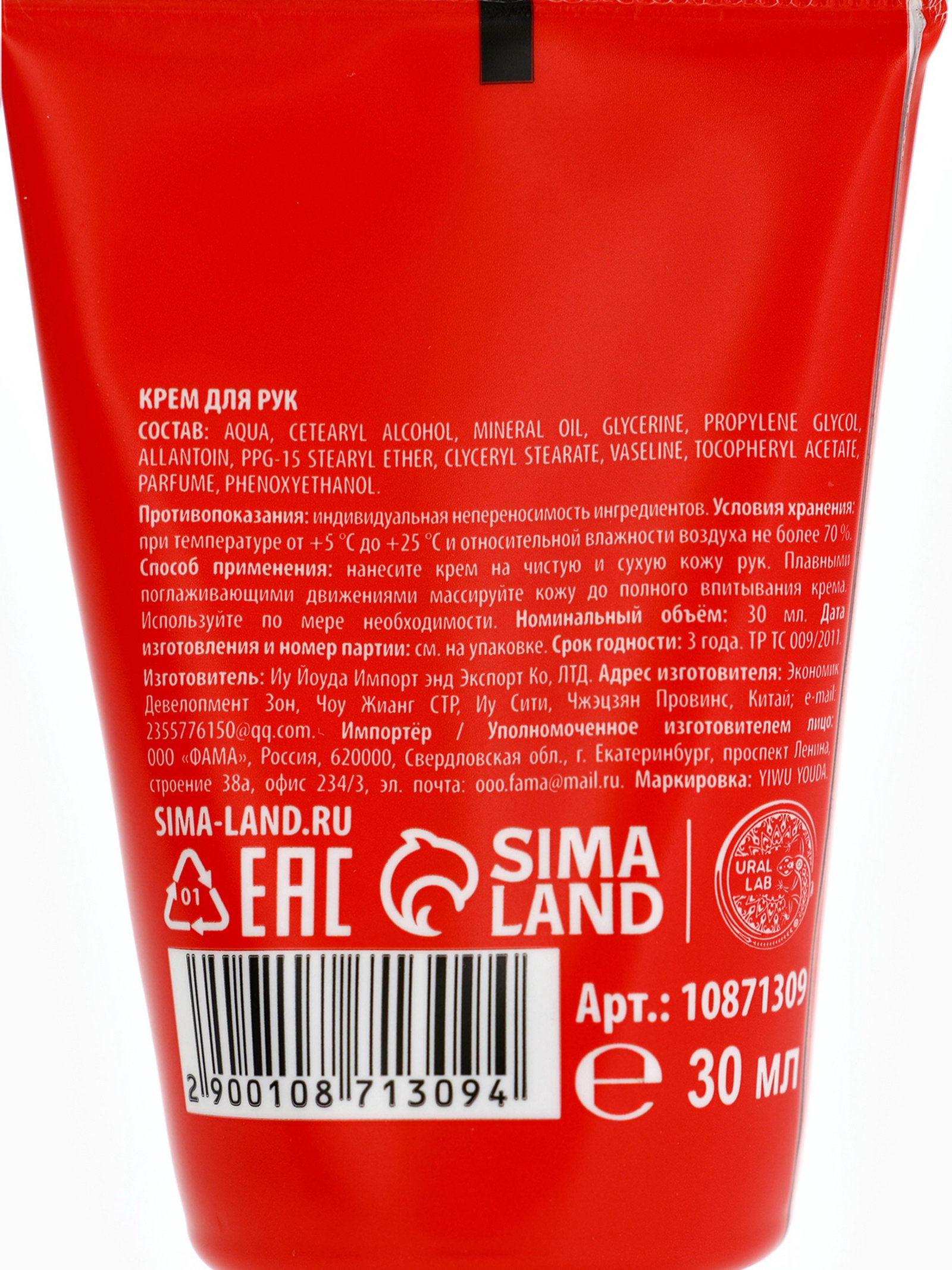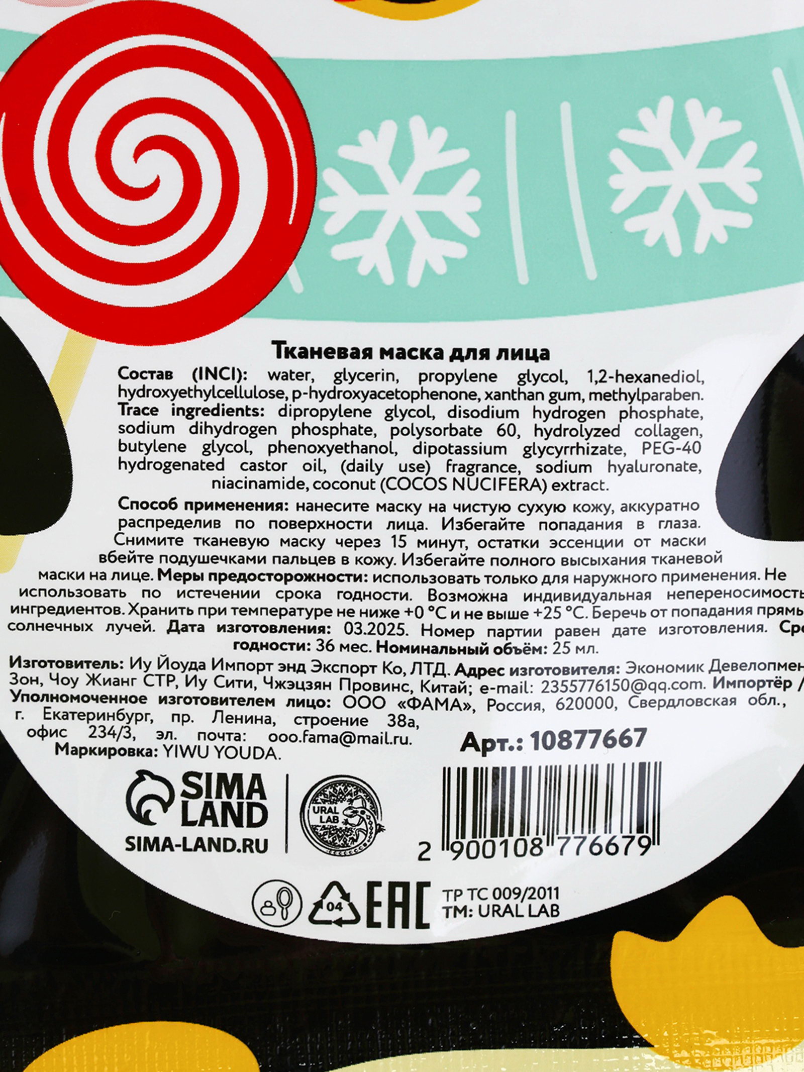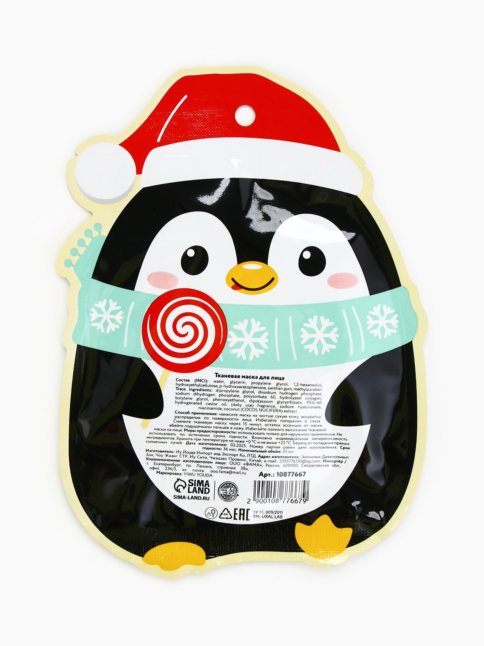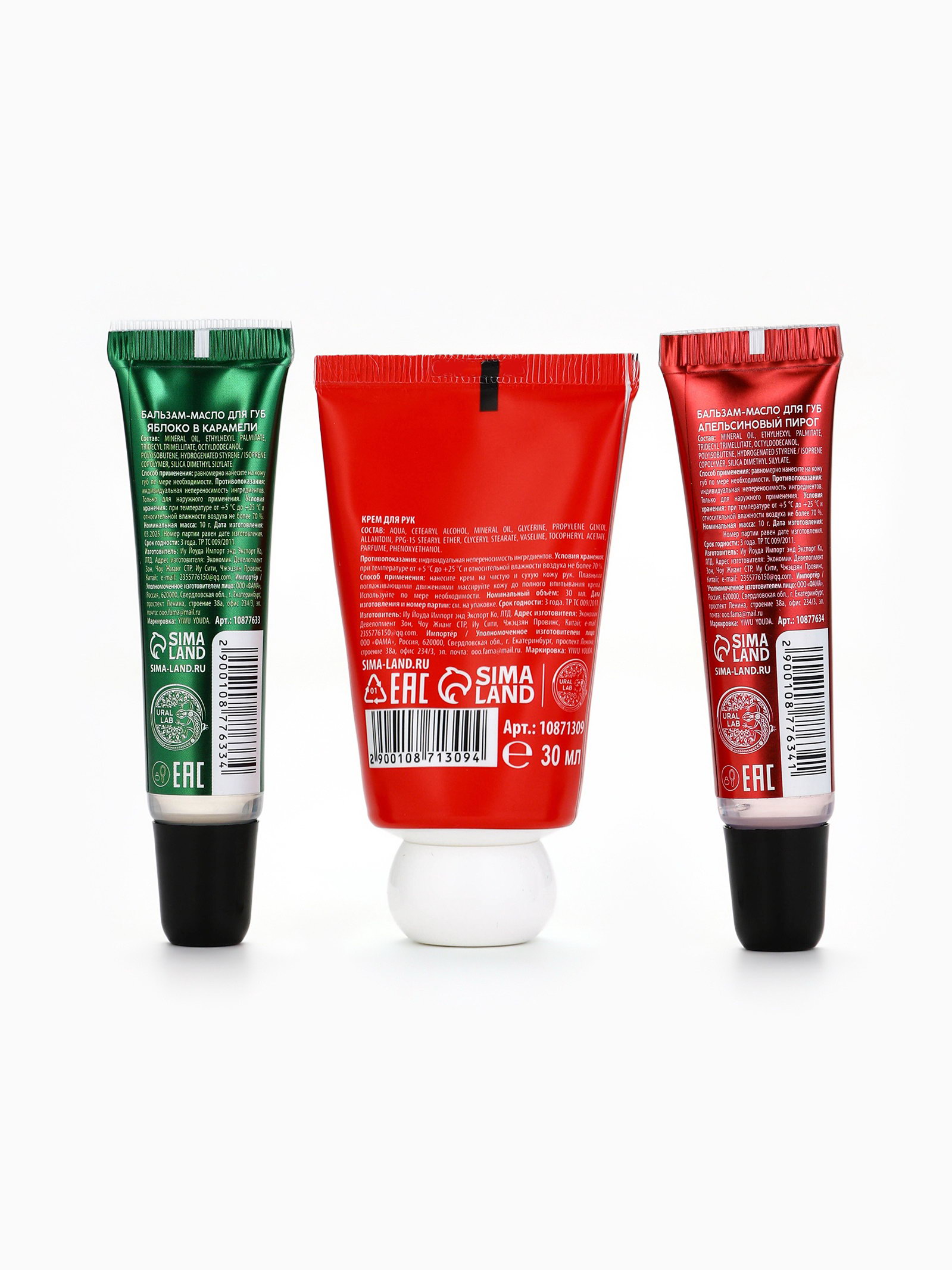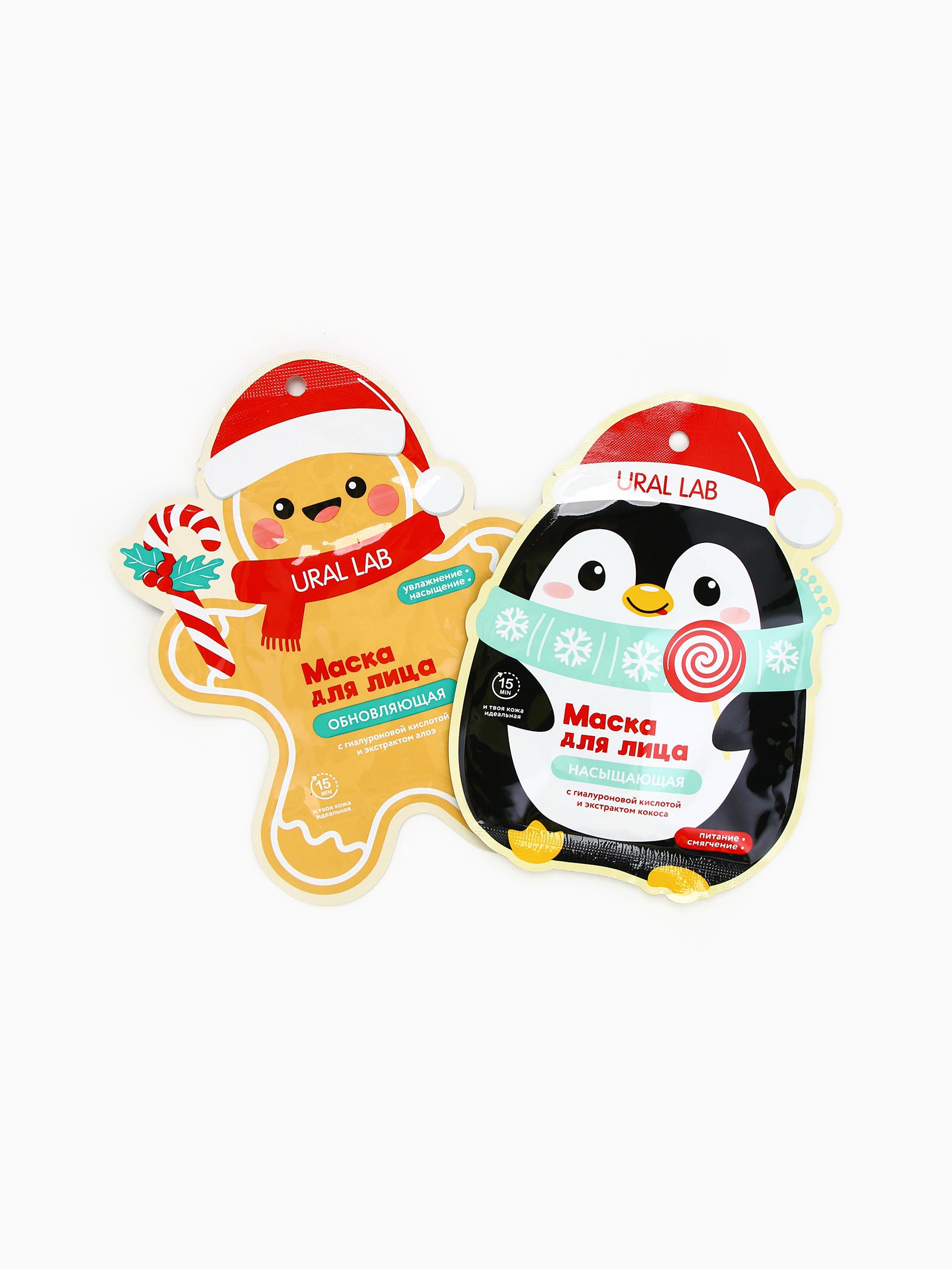 Новогодний подарочный набор косметики: маска для лица 2 шт., крем для рук и бальзам для губ, 4x17x13 см., URAL LAB, Китай