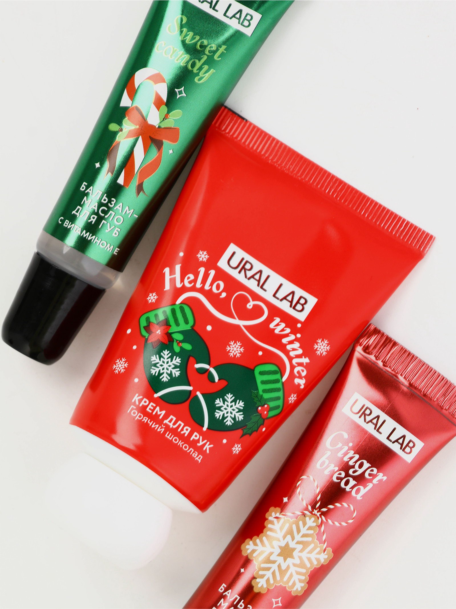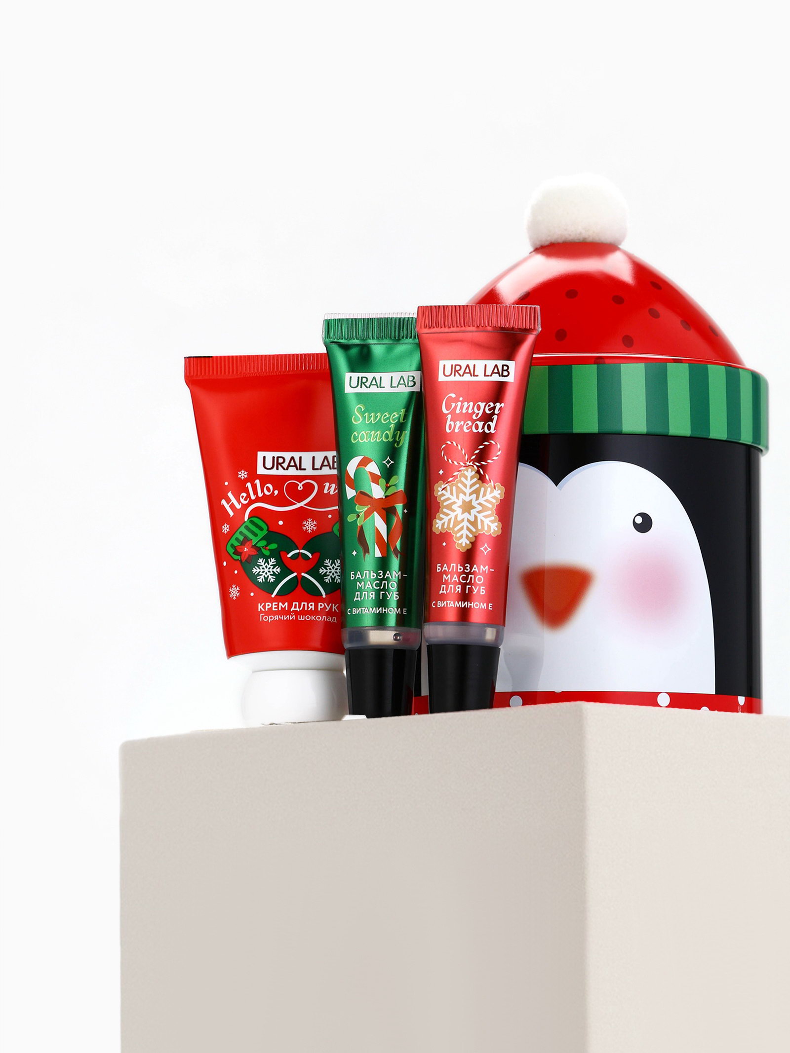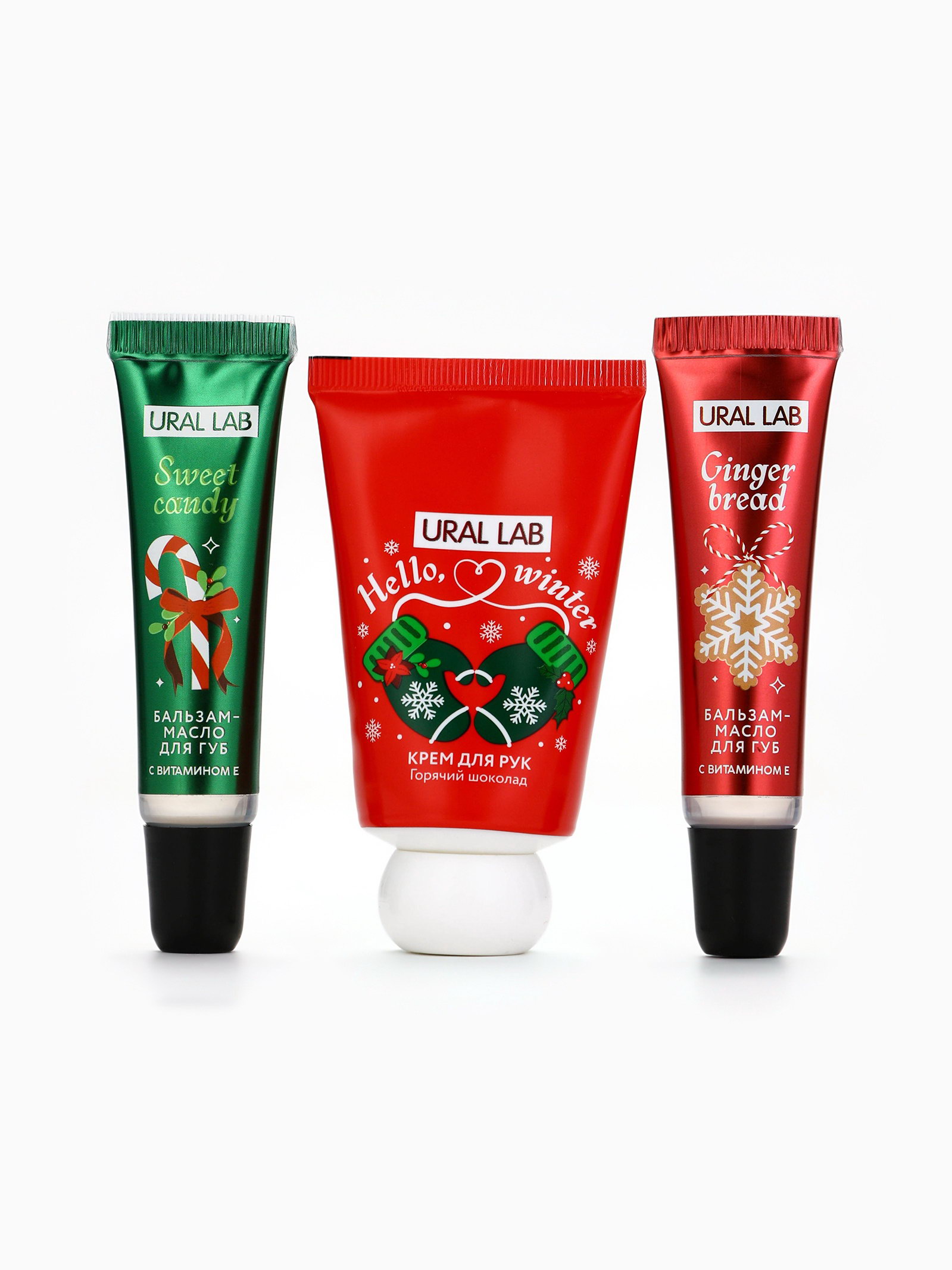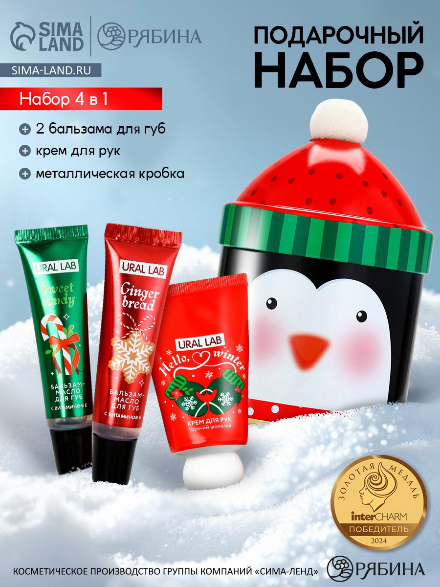 Новогодний подарочный набор косметики: крем для рук, бальзам для губ 2 шт., 6x6x12 см., URAL LAB, Китай