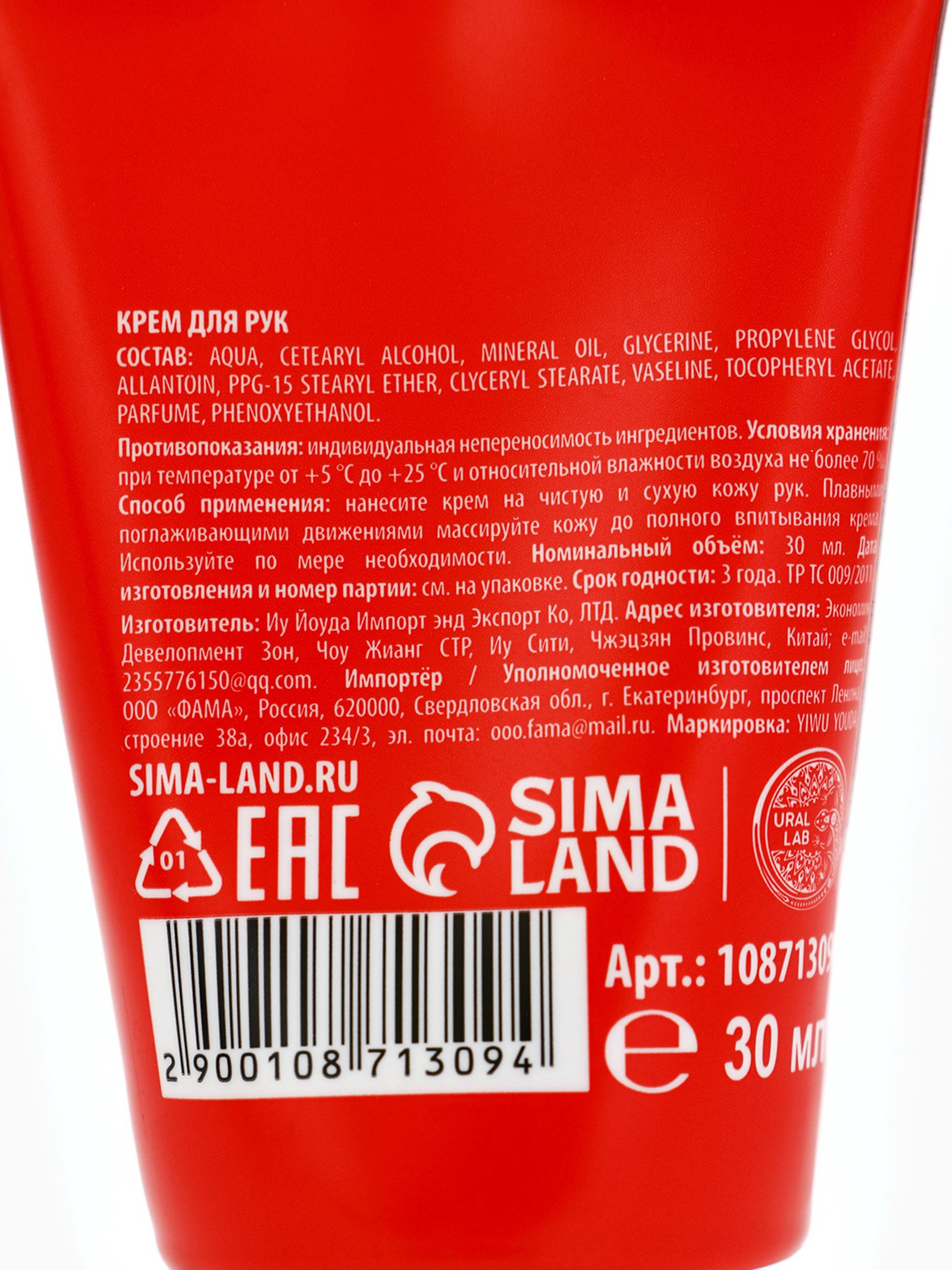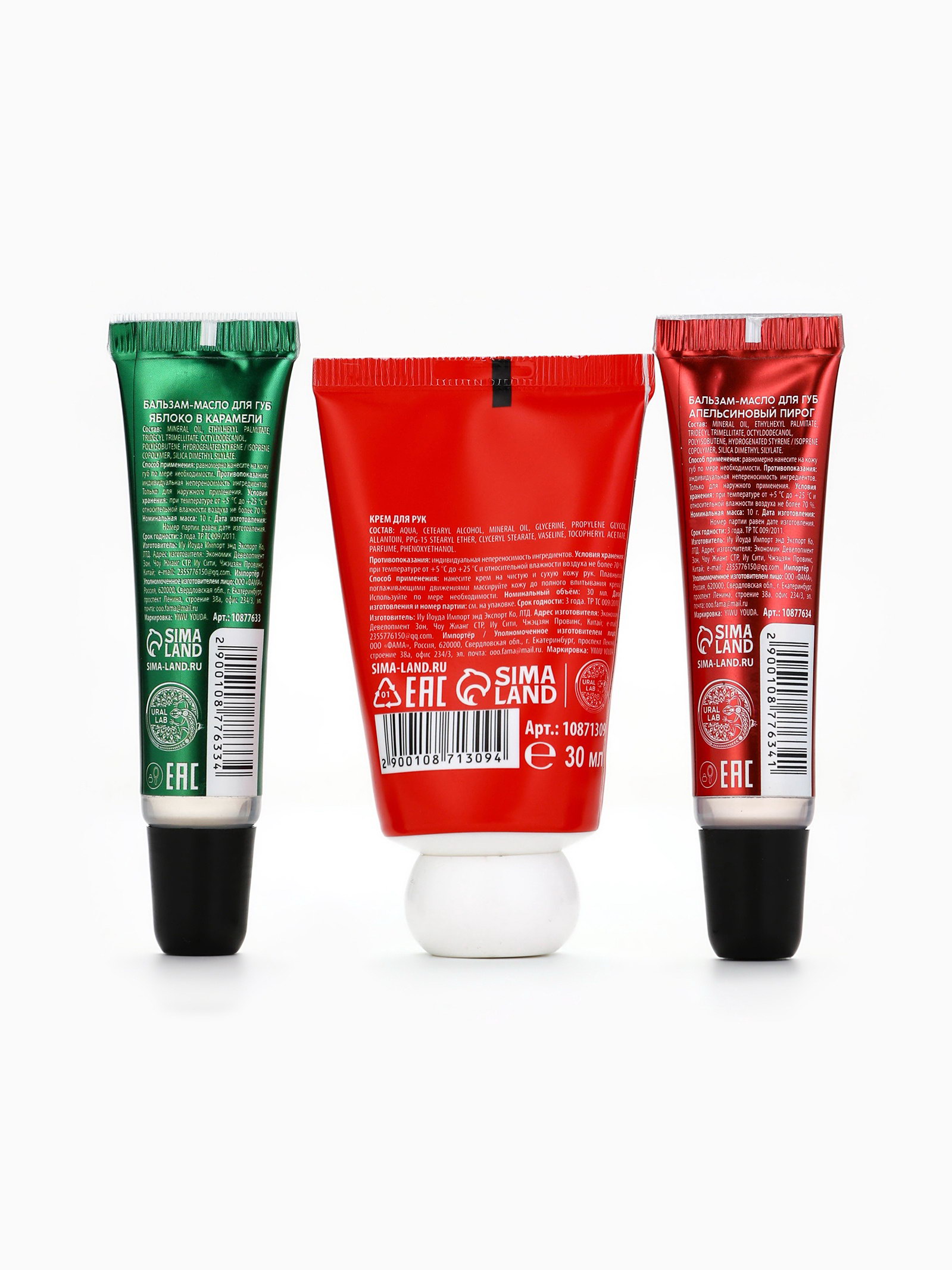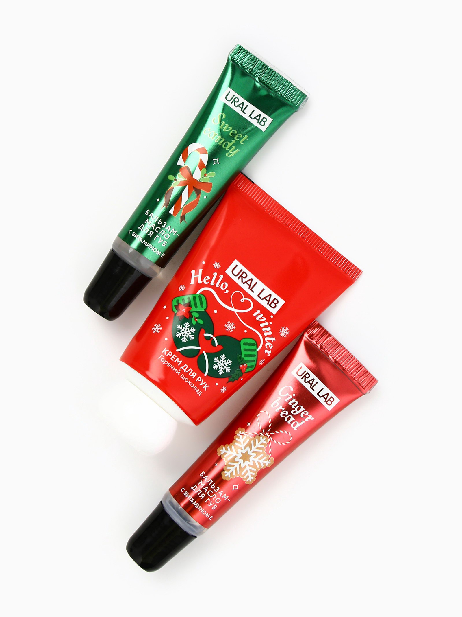 Новогодний подарочный набор косметики: крем для рук, бальзам для губ 2 шт., 6x6x12 см., URAL LAB, Китай