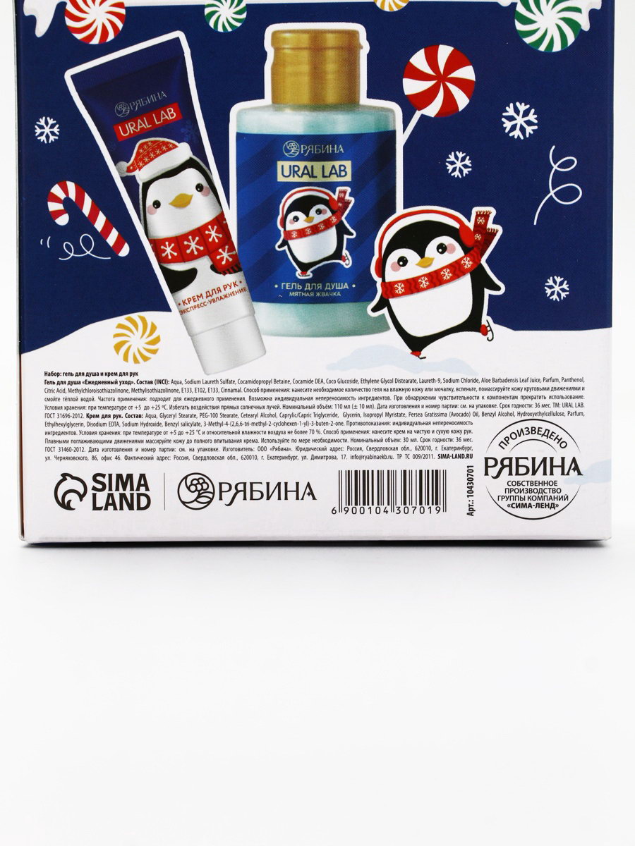 Новогодний подарочный набор косметики "Уютной зимы", гель для душа 110 мл и крем для рук 30 мл, URAL LAB, Россия