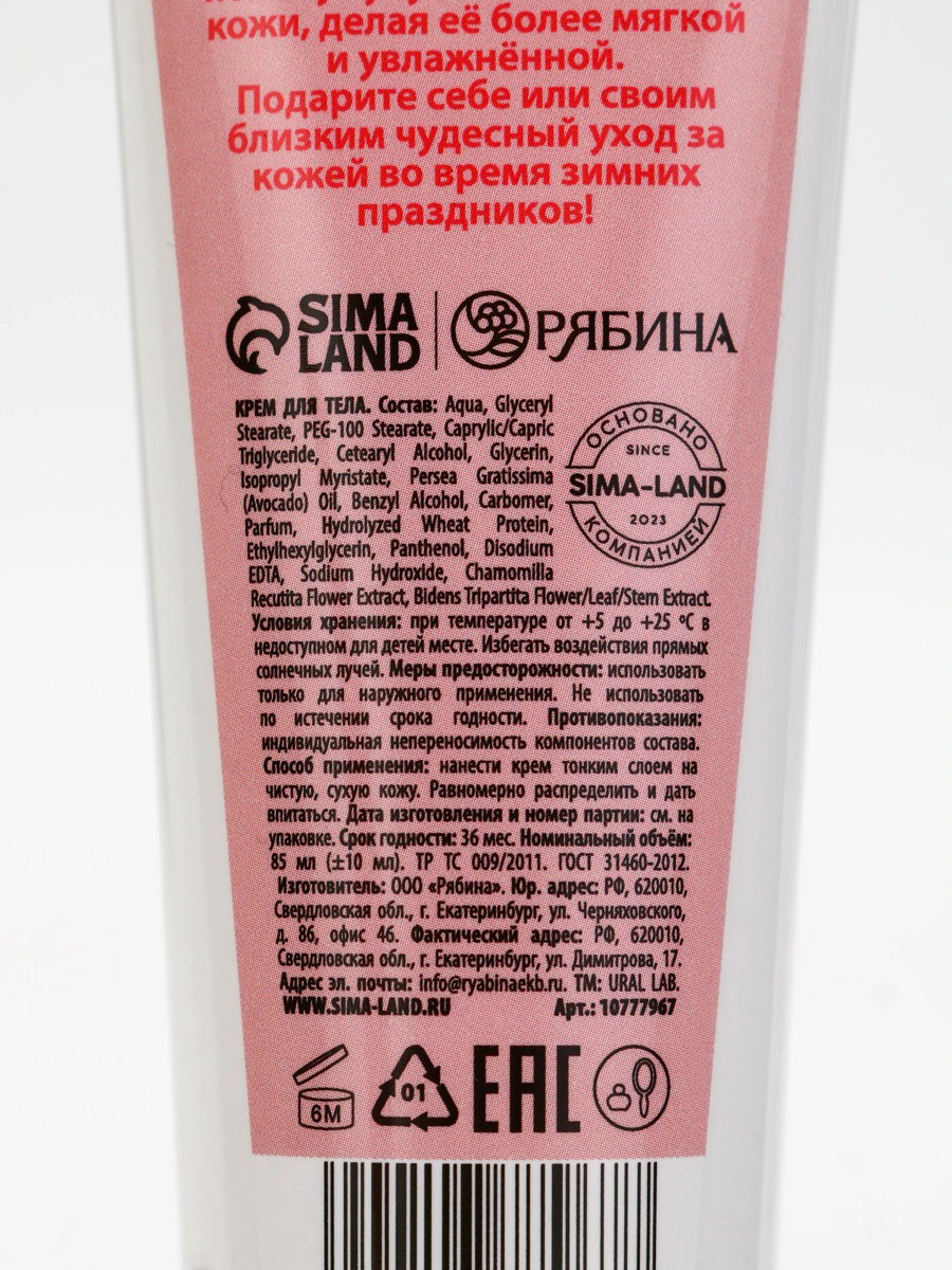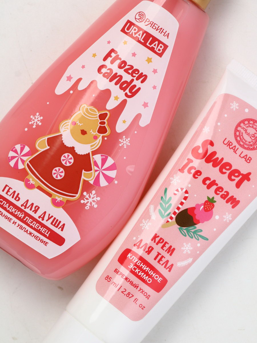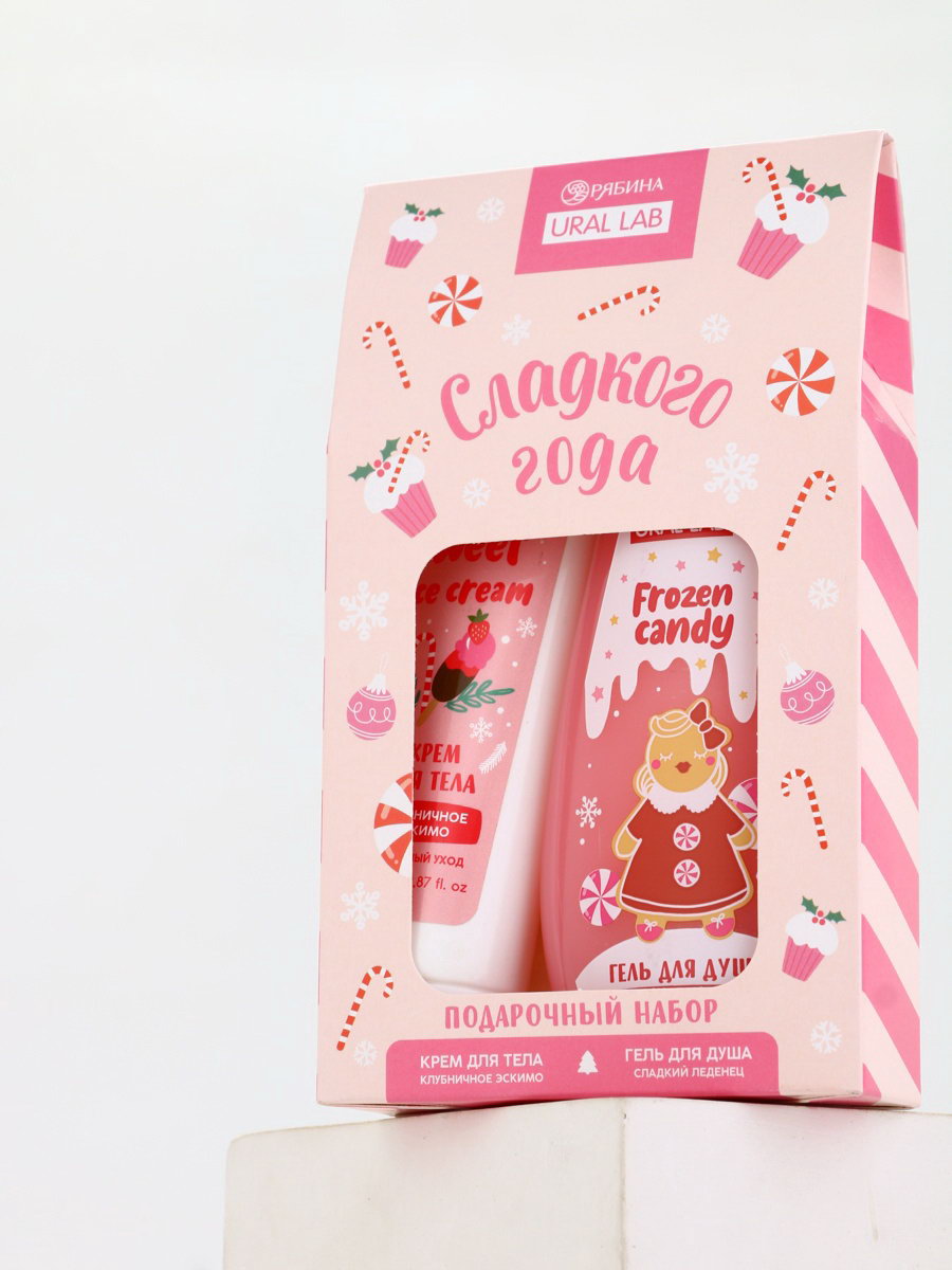 Подарочный набор косметики новогодний "Сладкого года", гель для душа 200 мл и крем для тела, URAL LAB, Россия