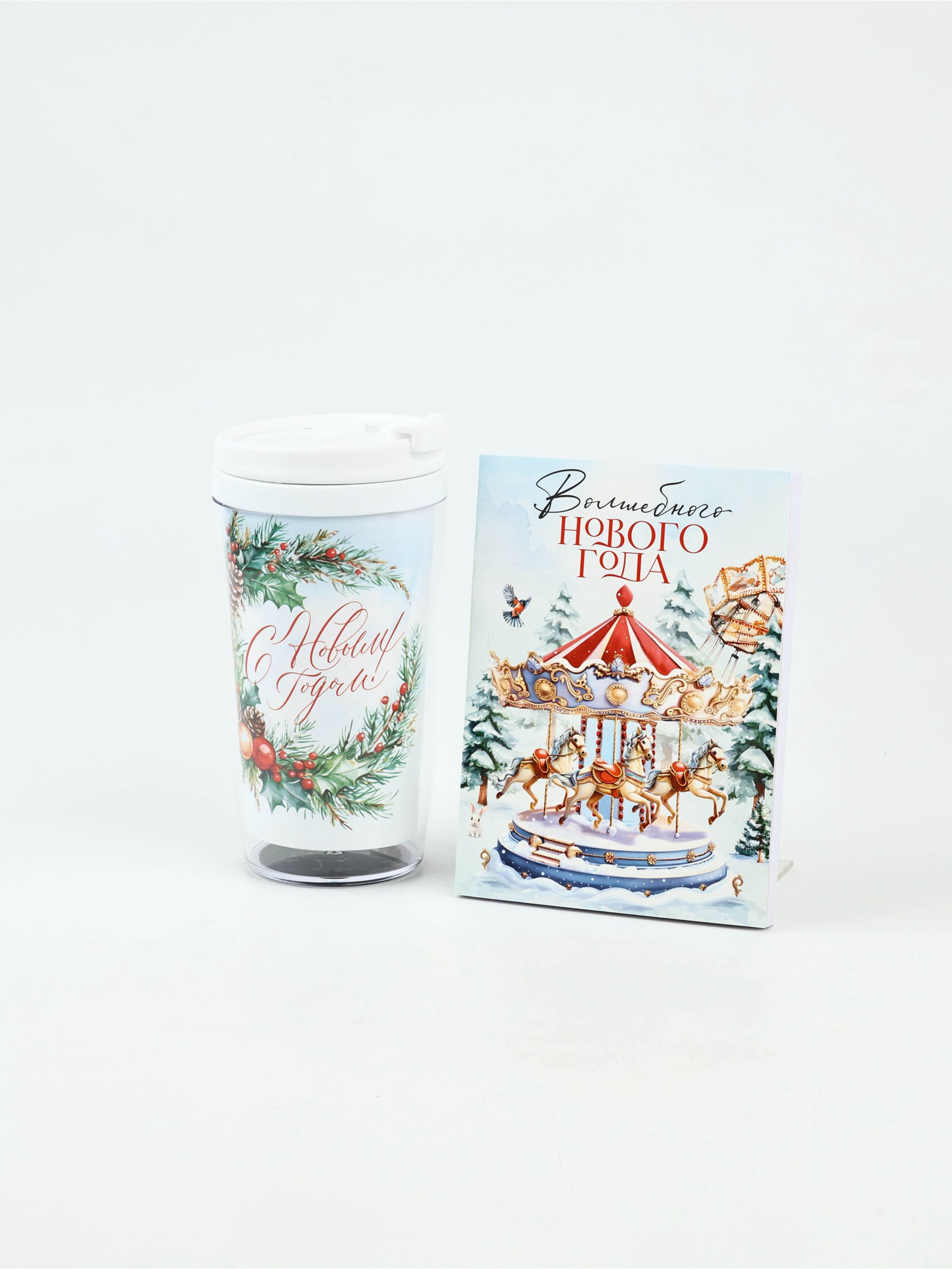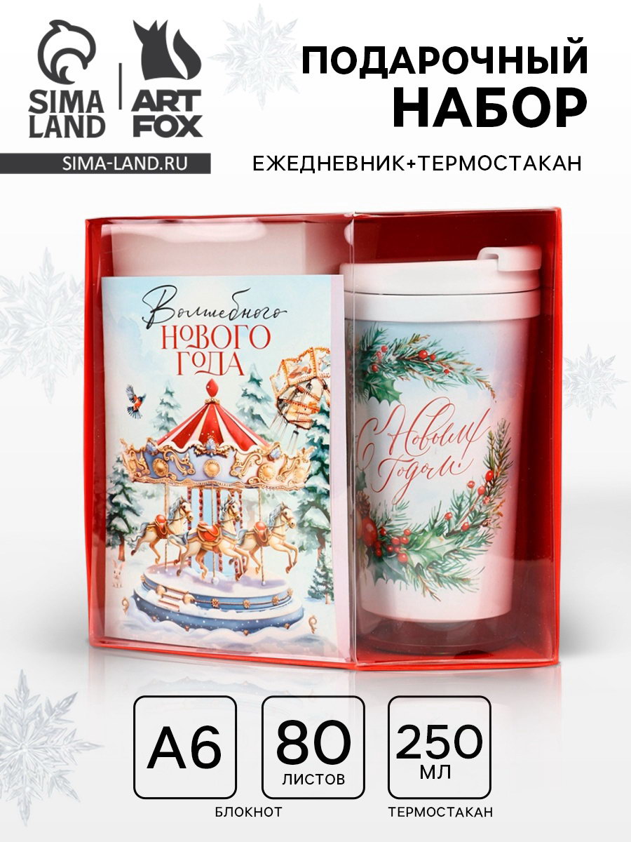 Подарочный набор новогодний, ежедневник А6, 80 листов, термостакан 250 мл "Карусель", ArtFox, Россия