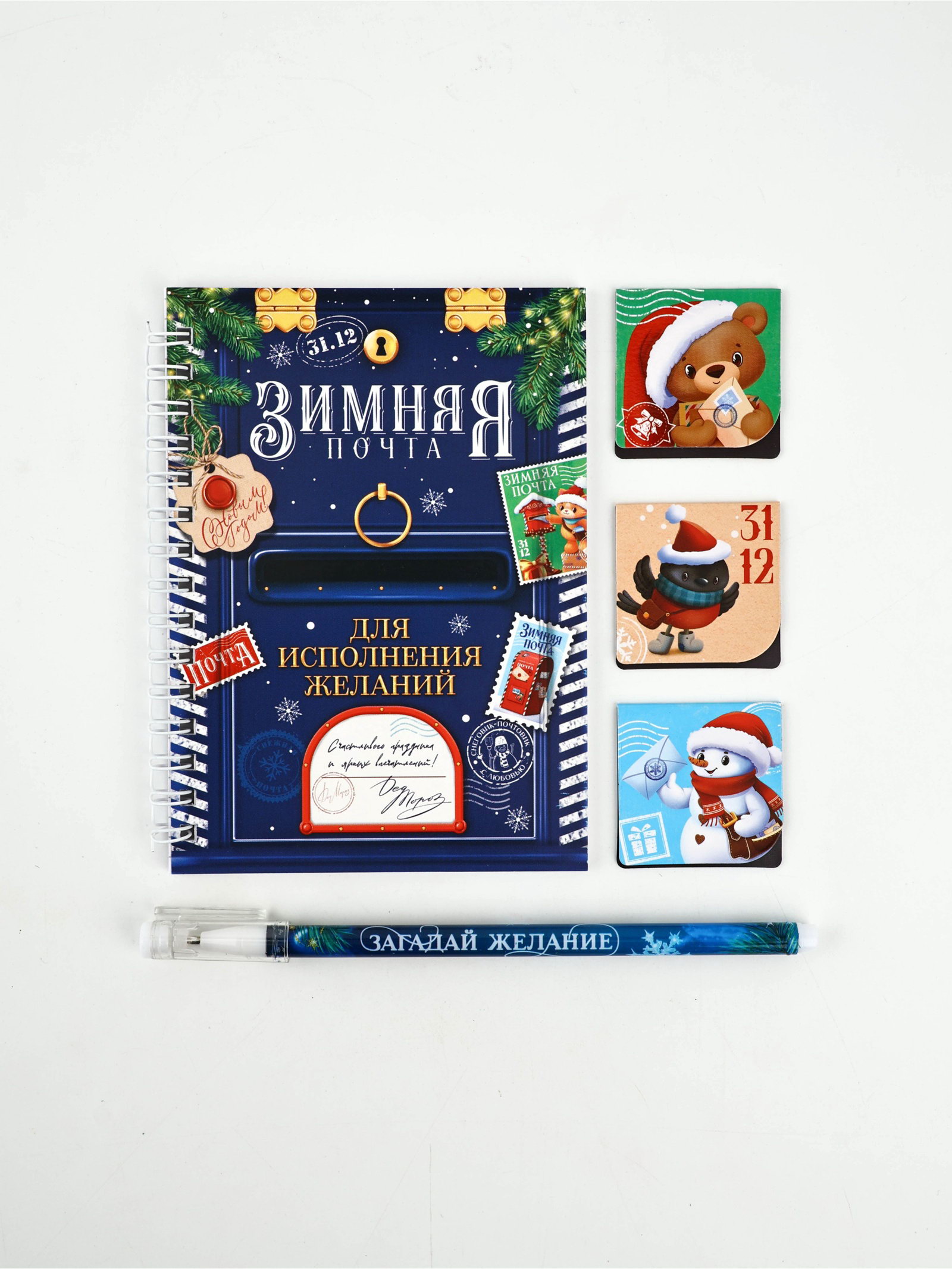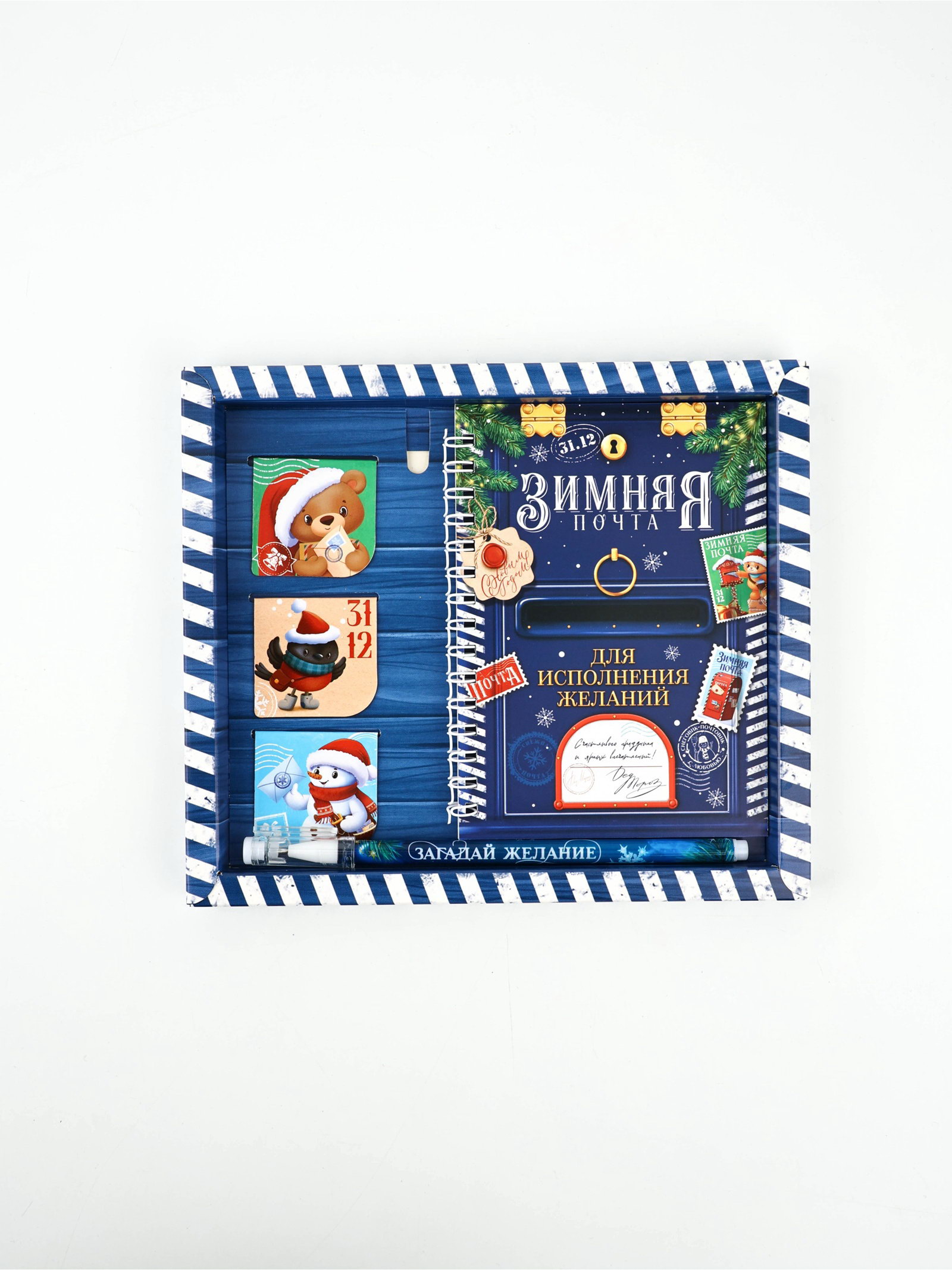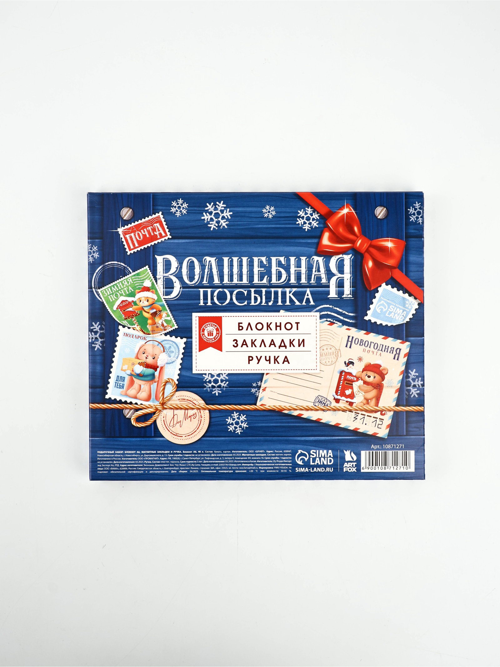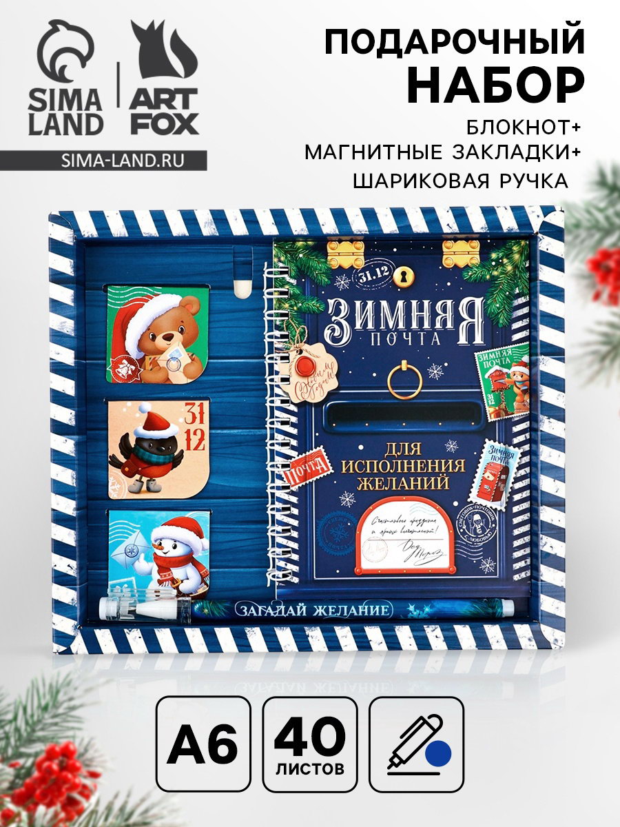 Подарочный набор новогодний, блокнот А6, 40 л, ручка пластик, магнитные закладки 3 шт. "Почта", ArtFox, Россия
