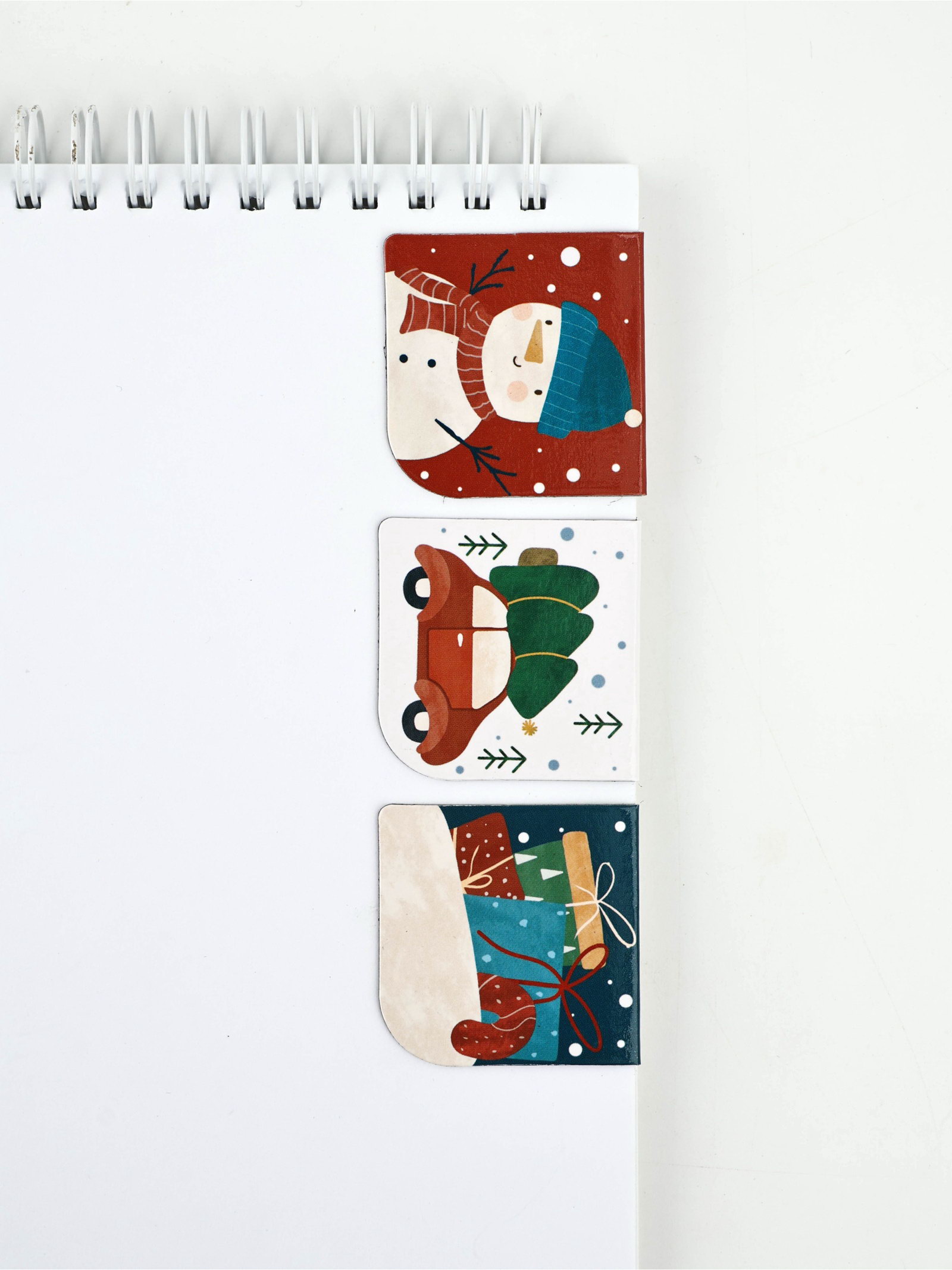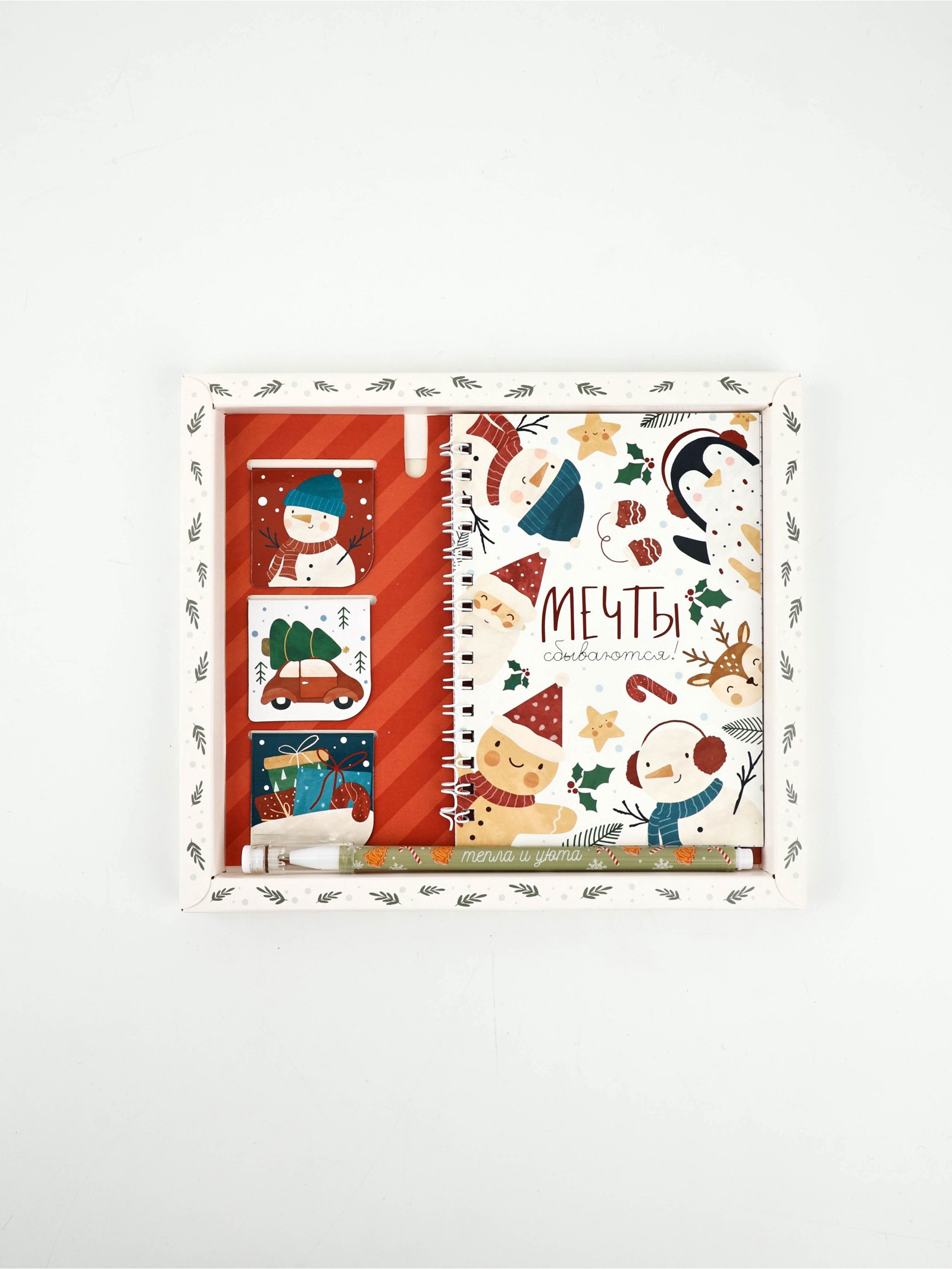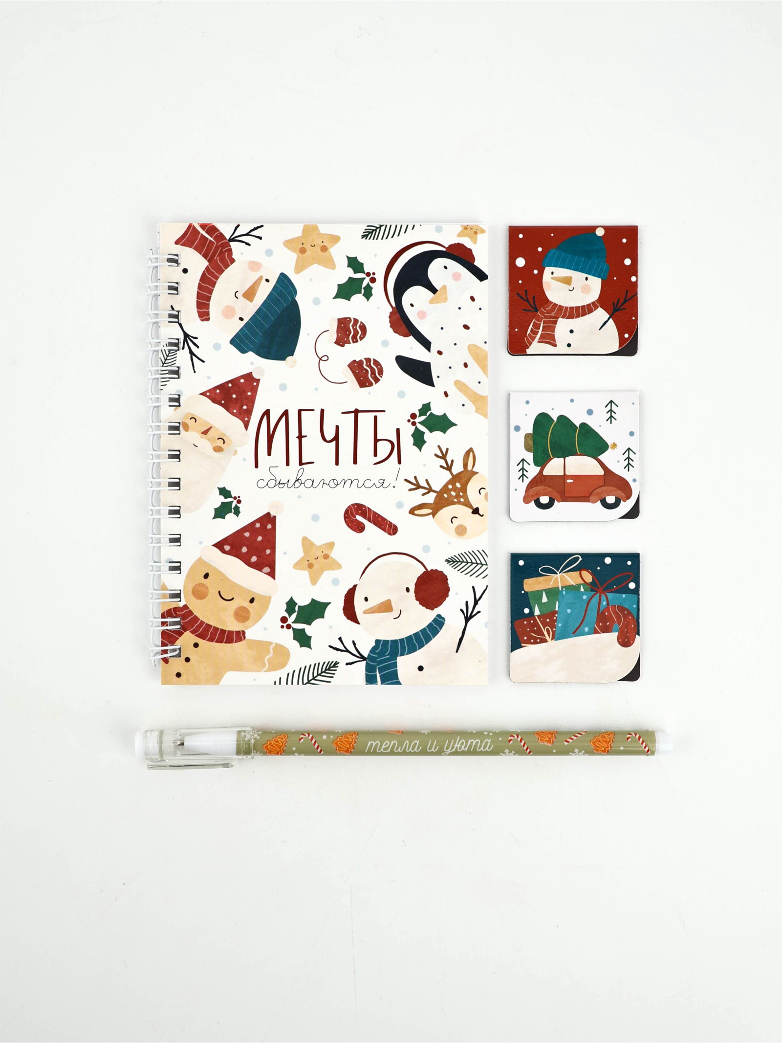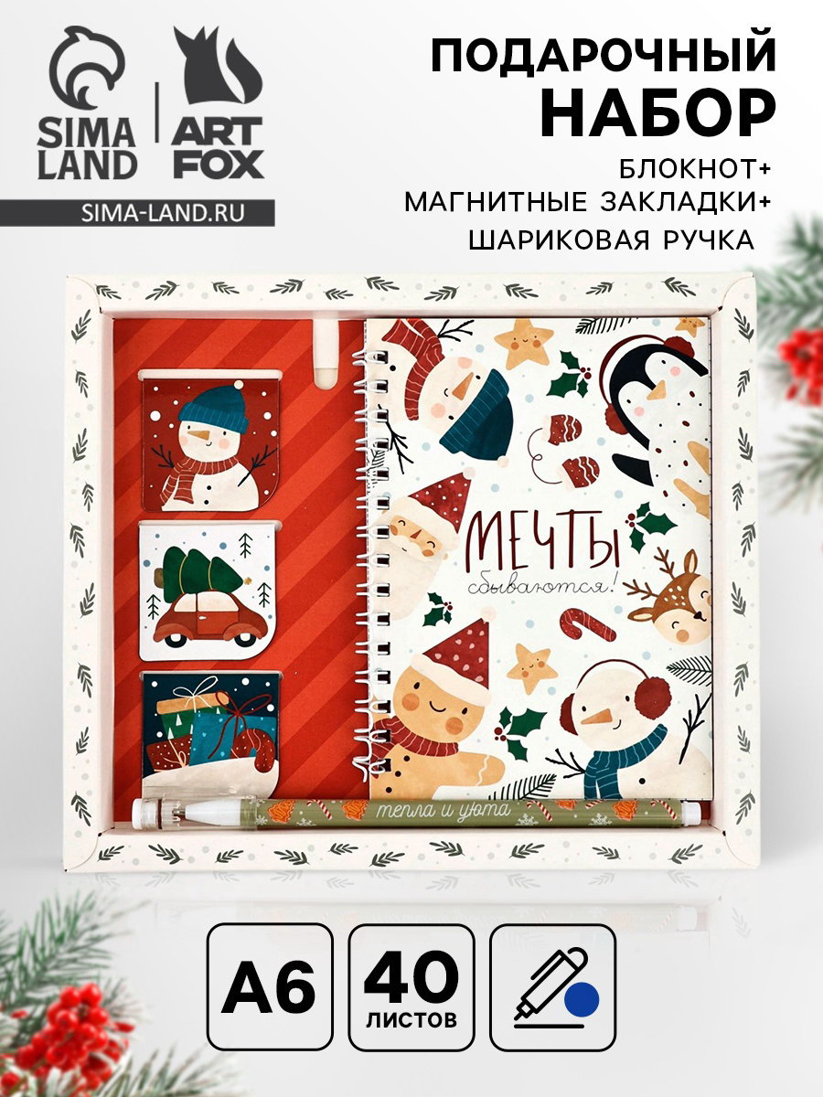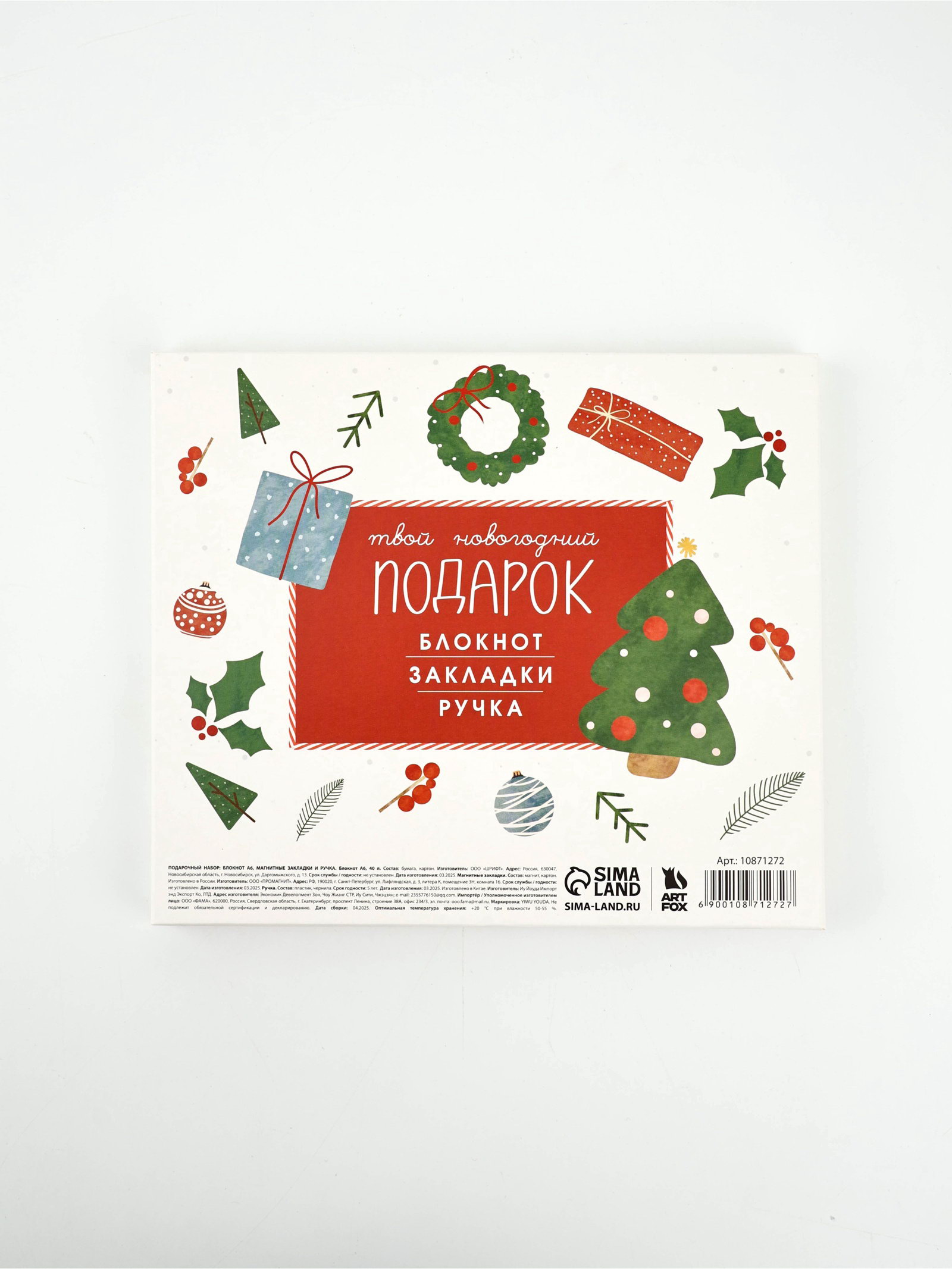 Подарочный набор новогодний, блокнот А6, 40 л, ручка пластик, магнитные закладки 3 шт. "Акварель", ArtFox, Россия