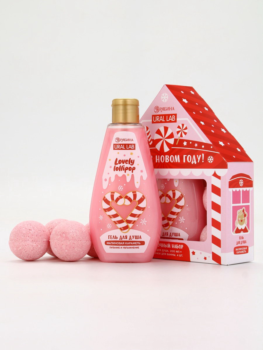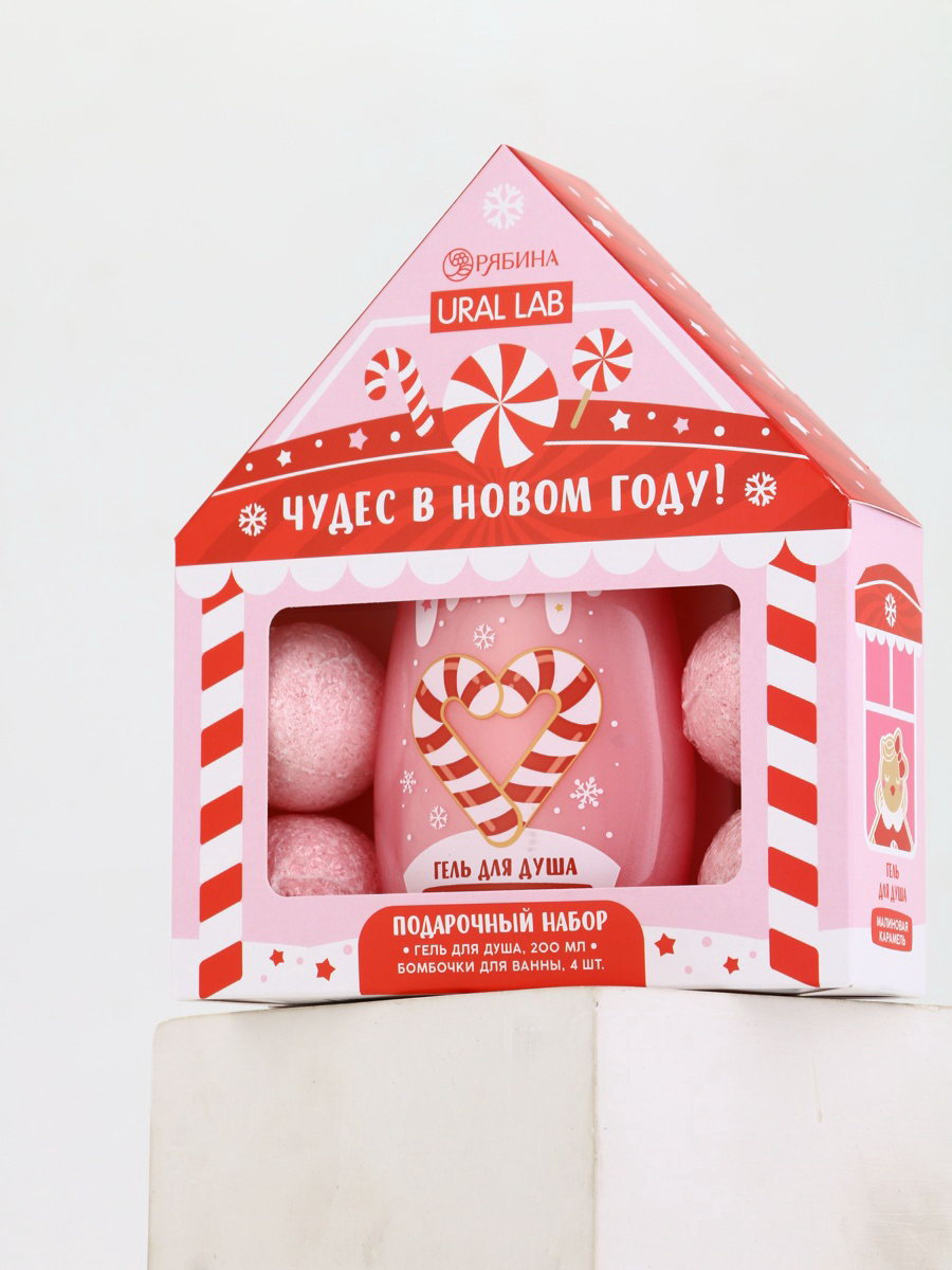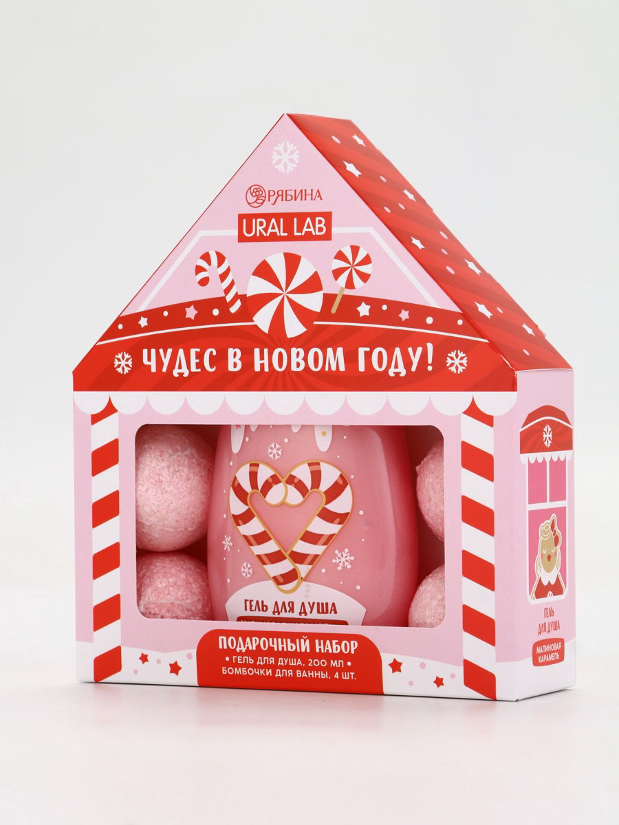 Подарочный набор новогодний "Чудес в Новом году": гель для душа 200 мл и бомбочки для ванны 4 шт.x40 г, URAL LAB, Россия