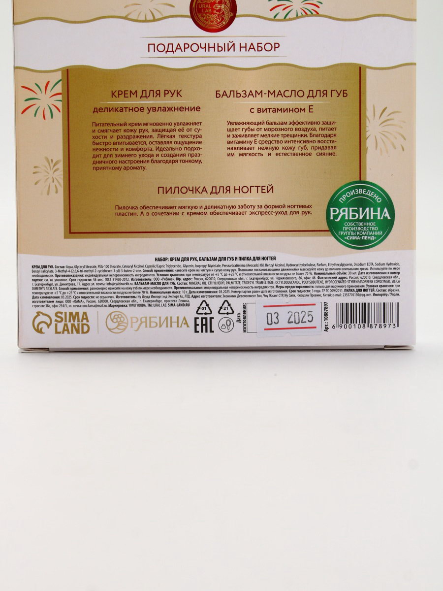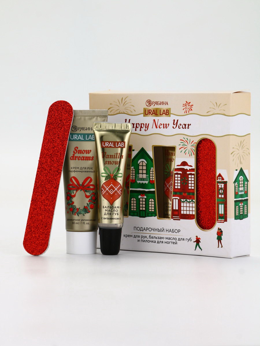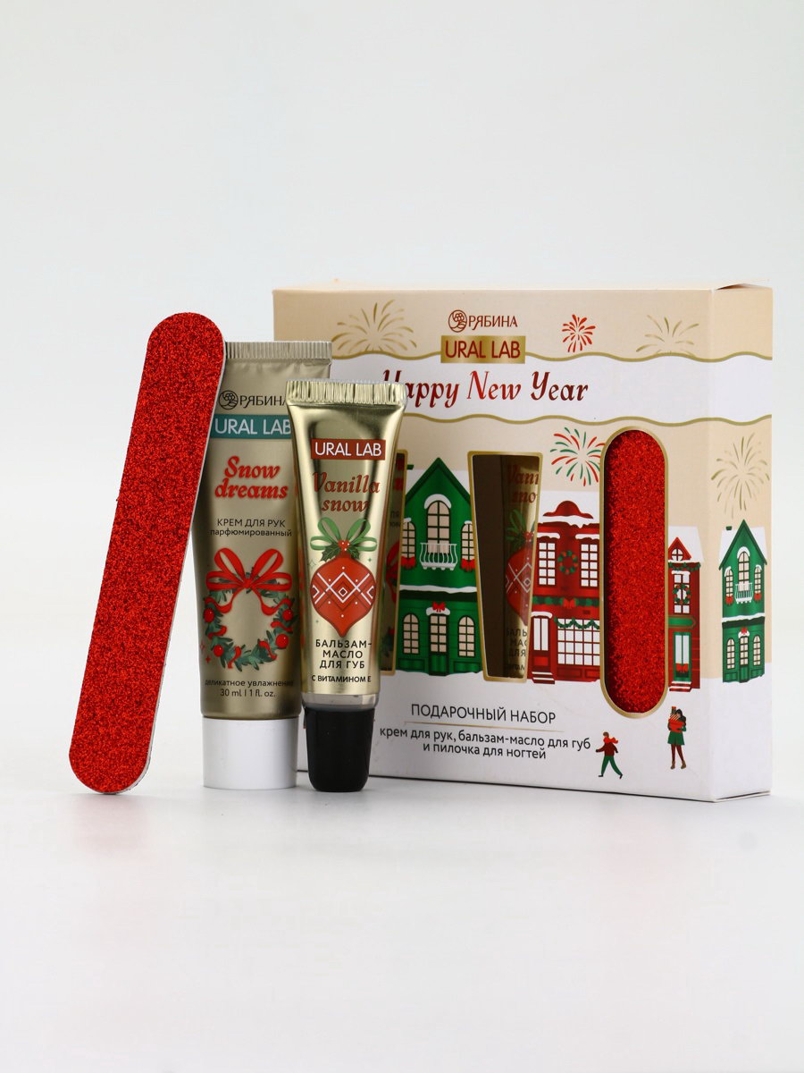 Новогодний подарочный набор косметики: крем для рук, бальзам для губ и пилка, URAL LAB, Россия
