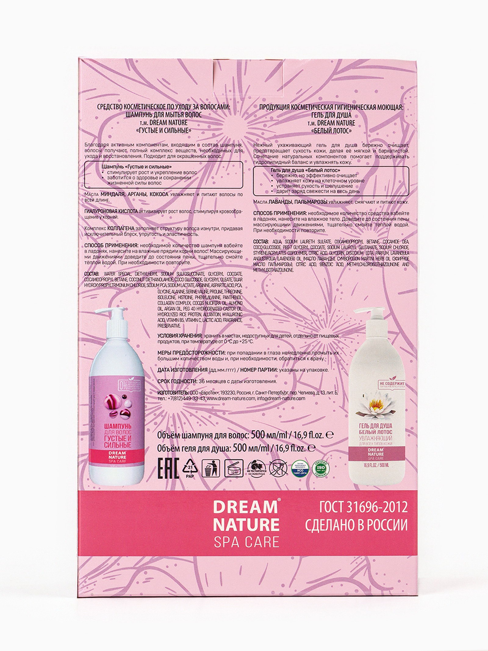 Подарочный набор женский SPA CARE густые и сильные волосы, гель для душа и шампунь по 500 мл, лотос, Dream Nature, Россия