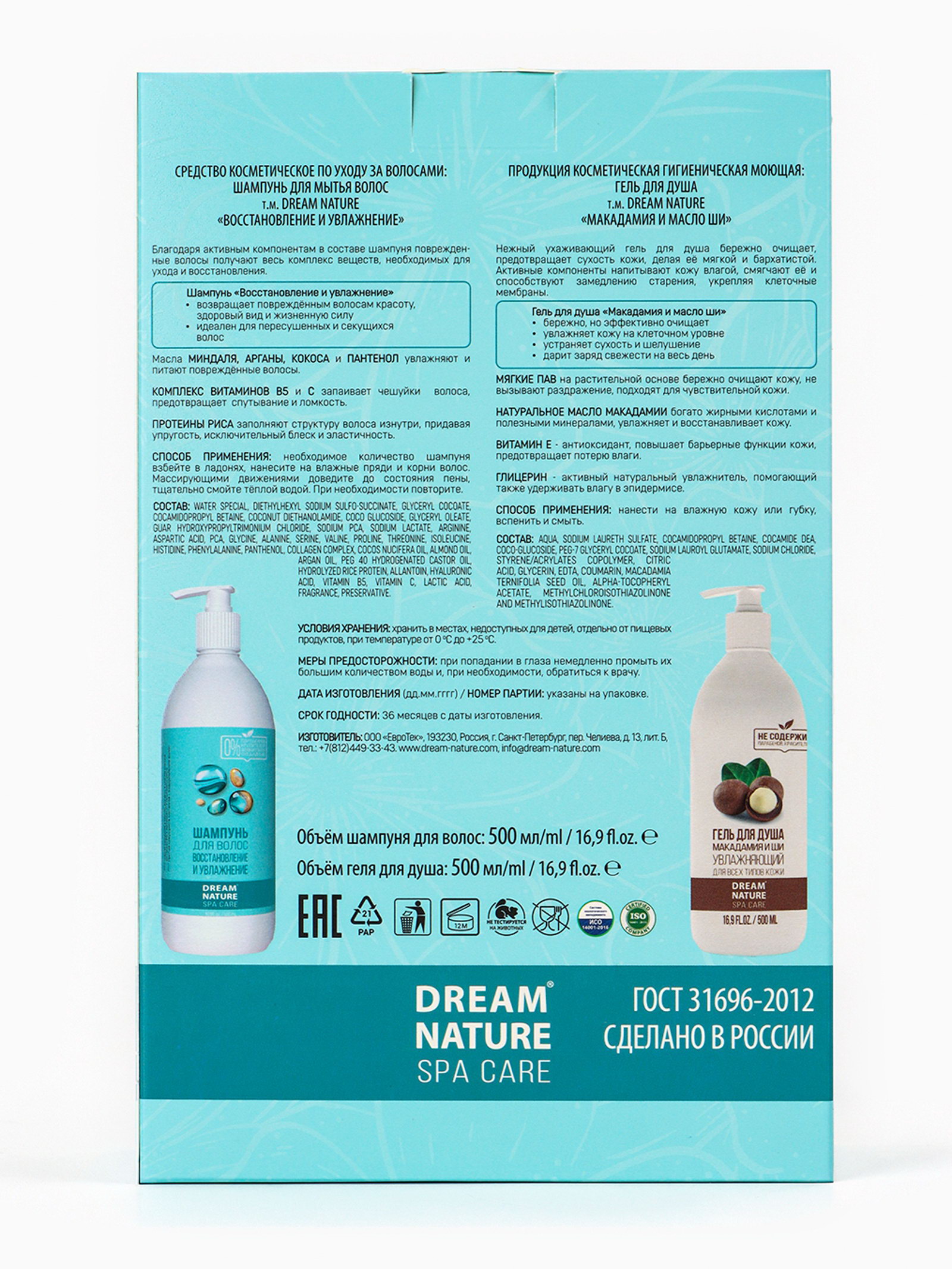 Подарочный набор женский SPA CARE оздоровление, гель для душа и шампунь по 500 мл, макадамия, Dream Nature, Россия