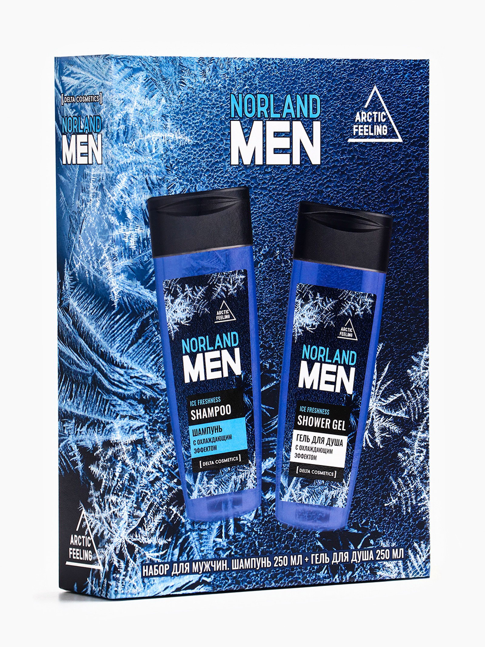 Подарочный набор мужской Norland Men Ice Freshness, гель для душа 250 мл, шампунь 250 мл, Delta Cosmetics, Россия