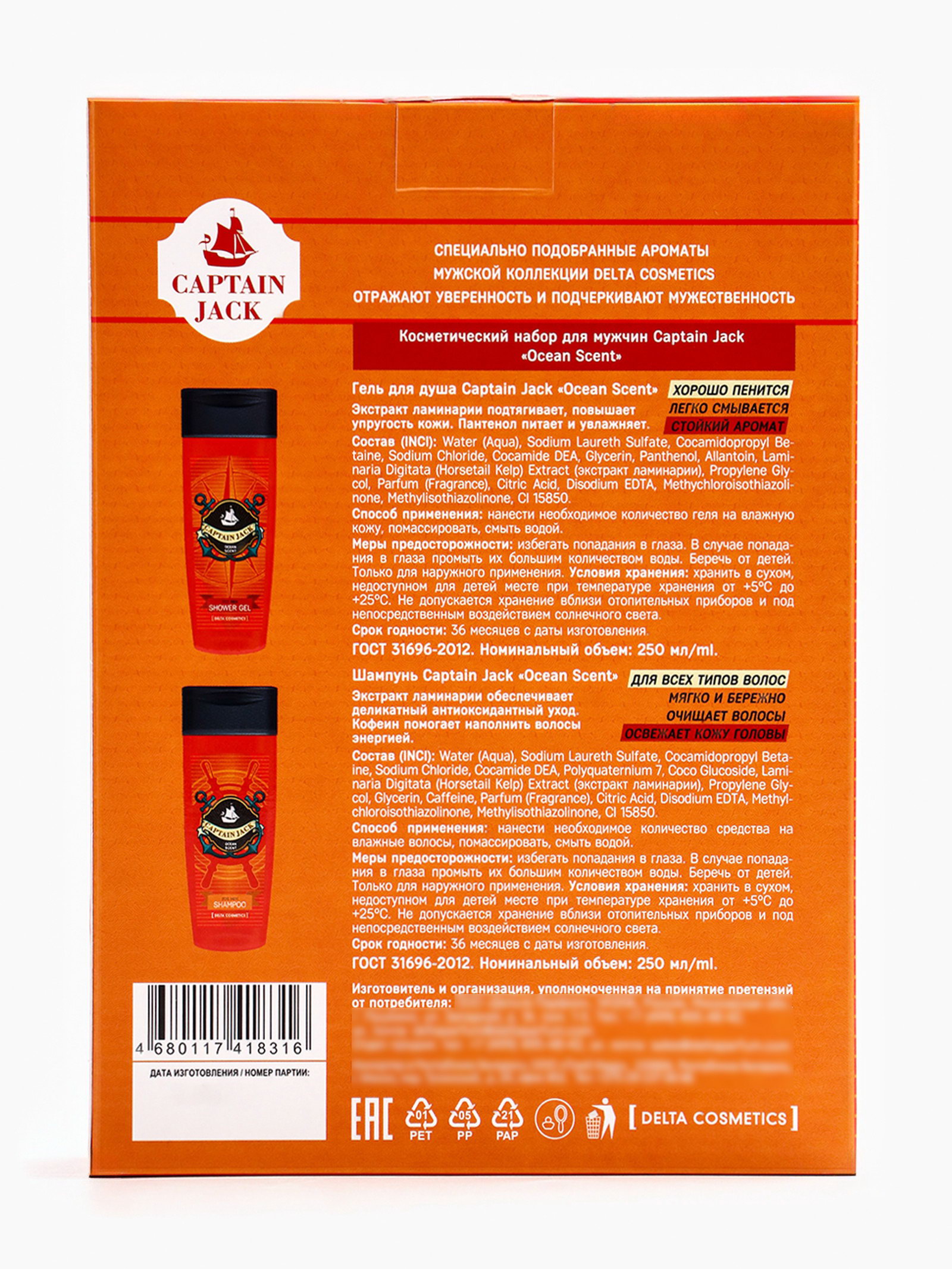 Подарочный набор мужской Captain Jack Ocean Scent, гель для душа 250 мл, шампунь 250 мл, Delta Cosmetics, Россия