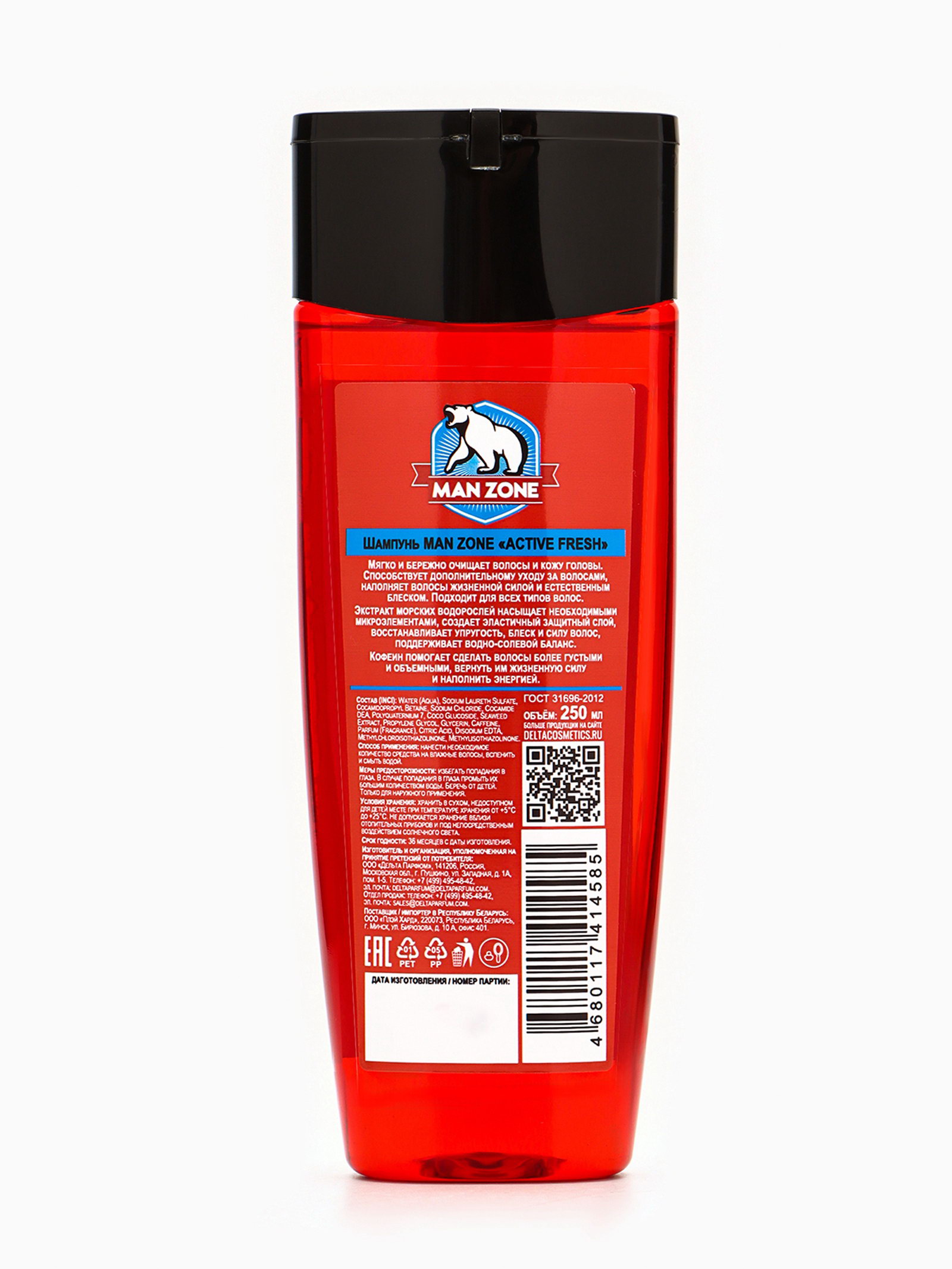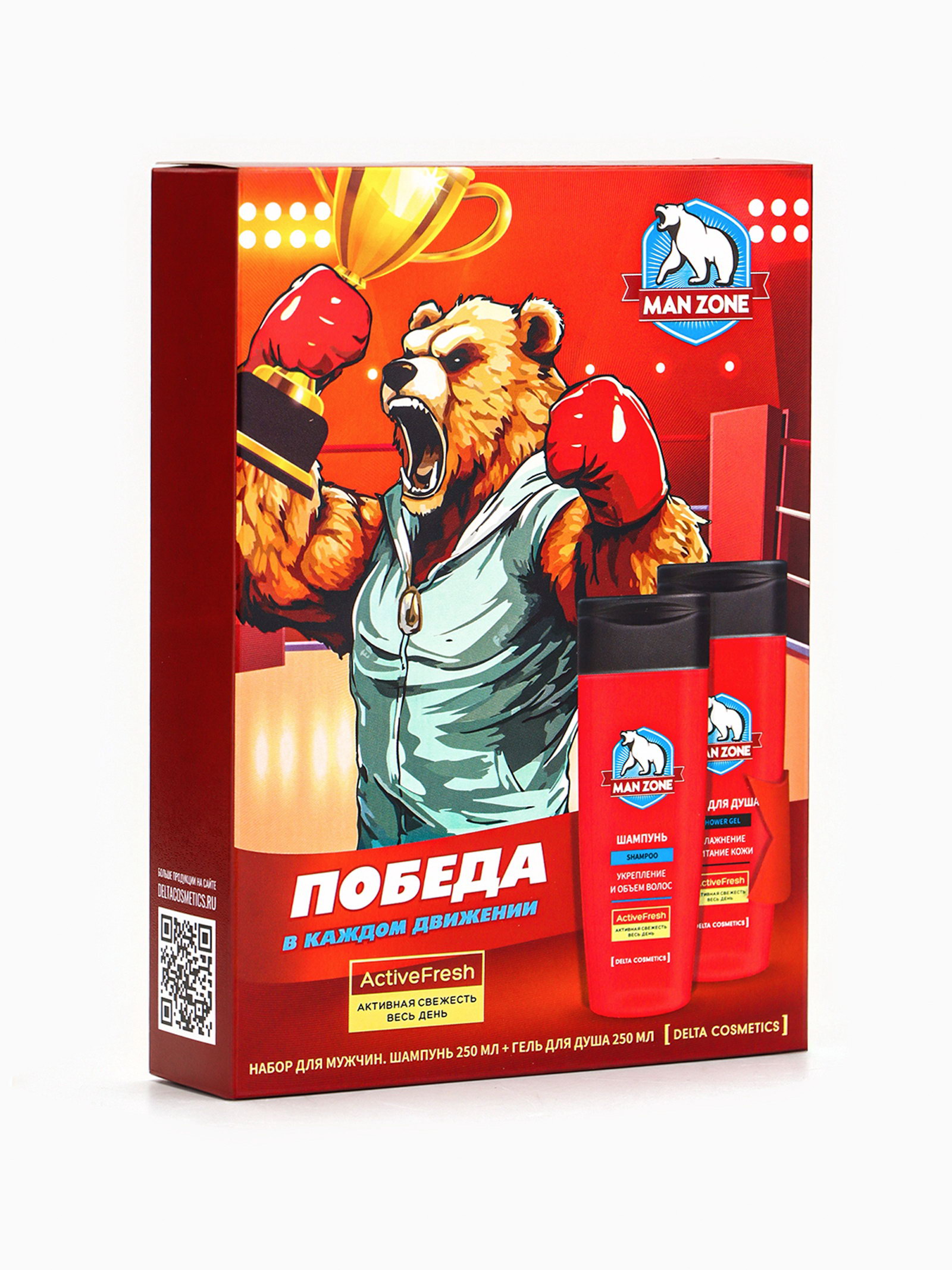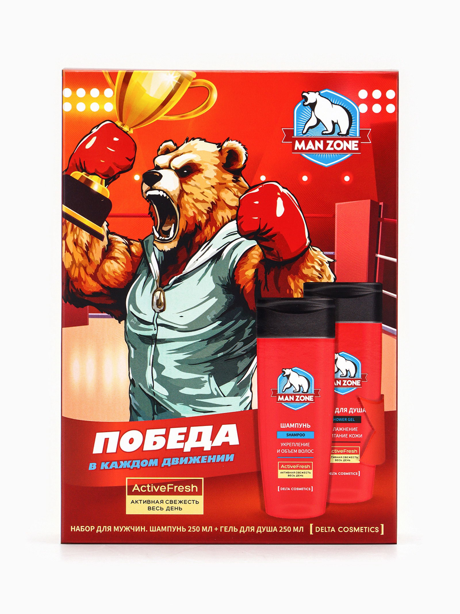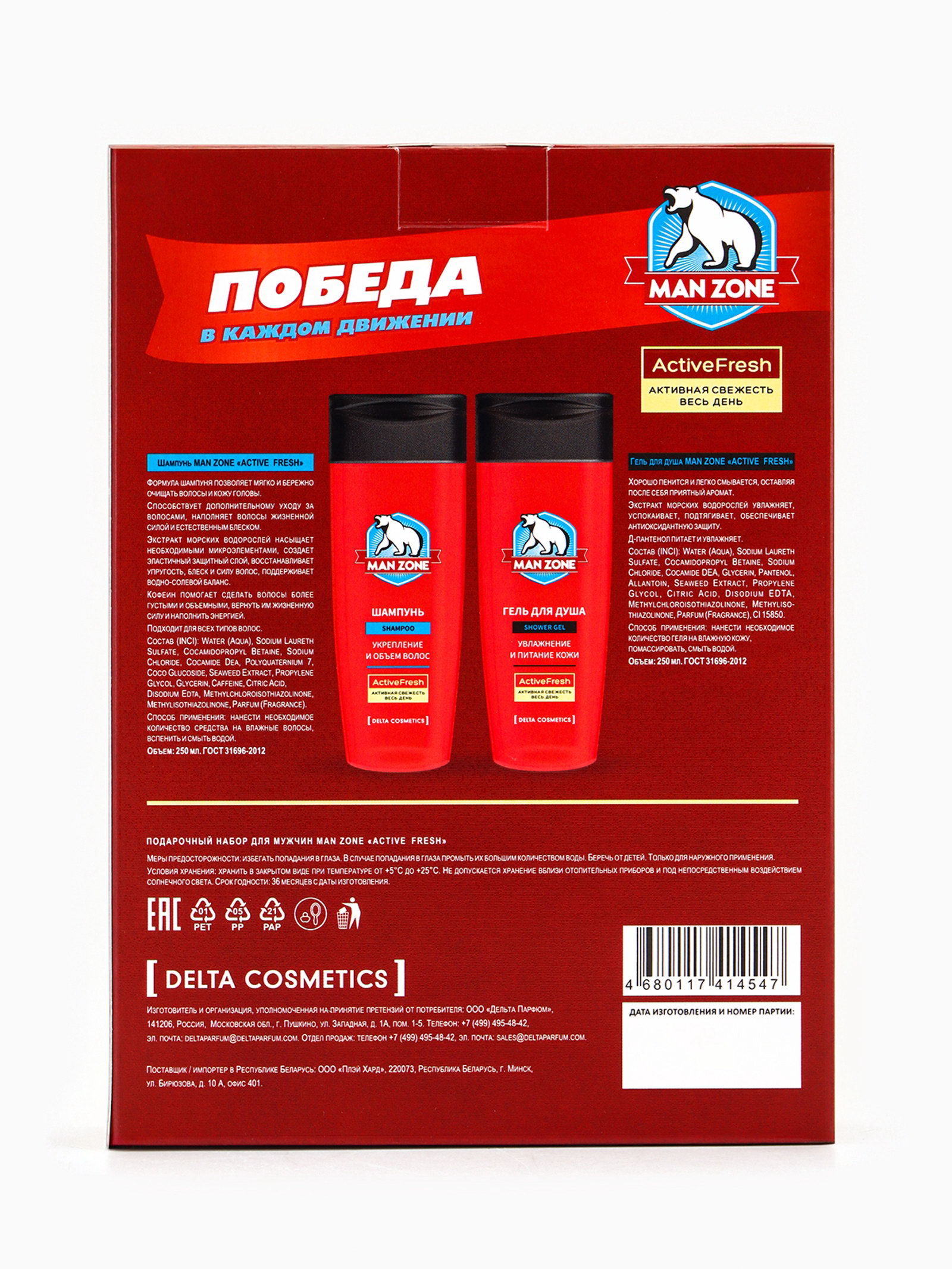 Подарочный набор мужской MAN ZONE ACTIVE FRESH, гель для душа 250 мл, шампунь 250 мл, Delta Cosmetics, Россия