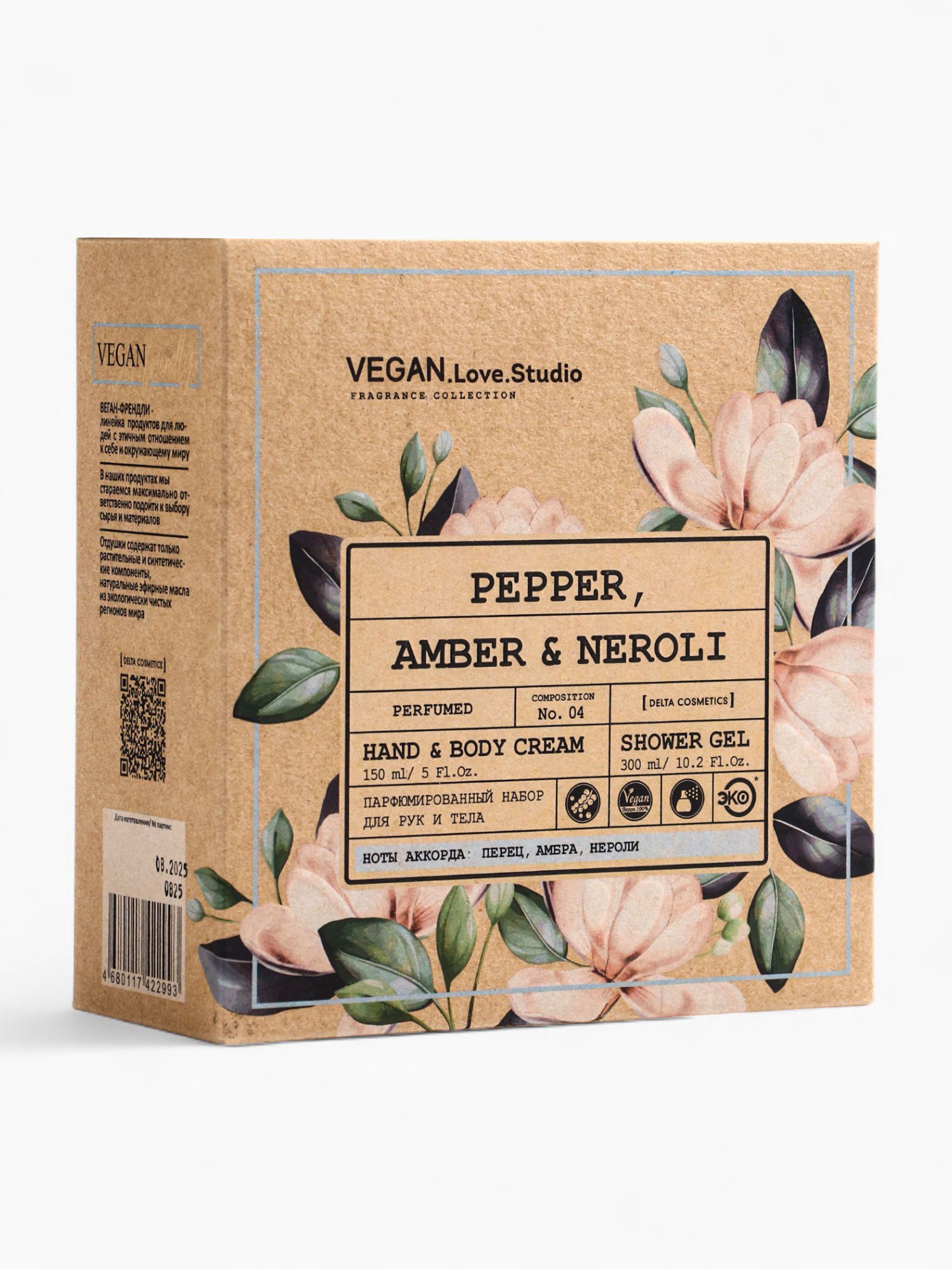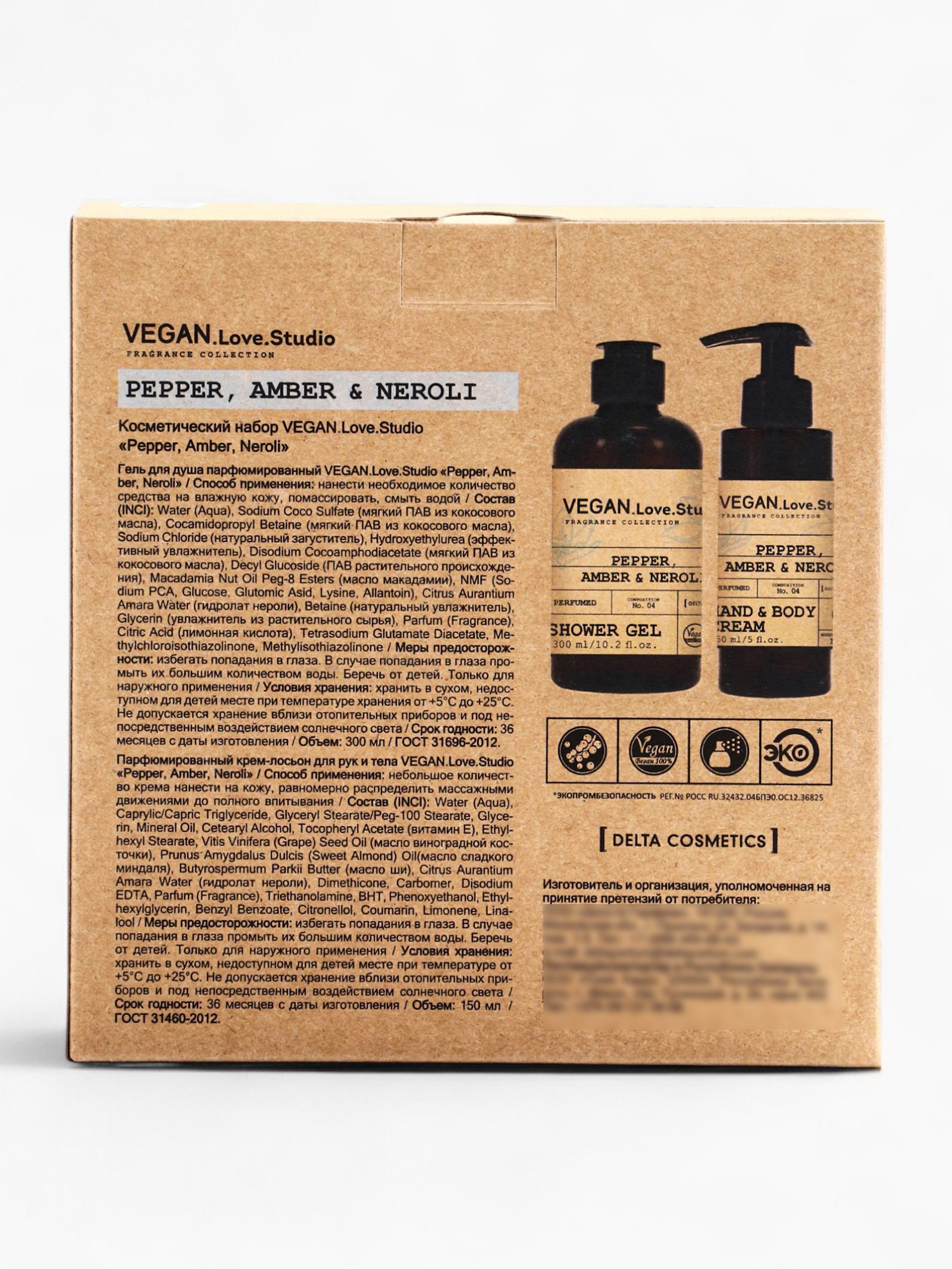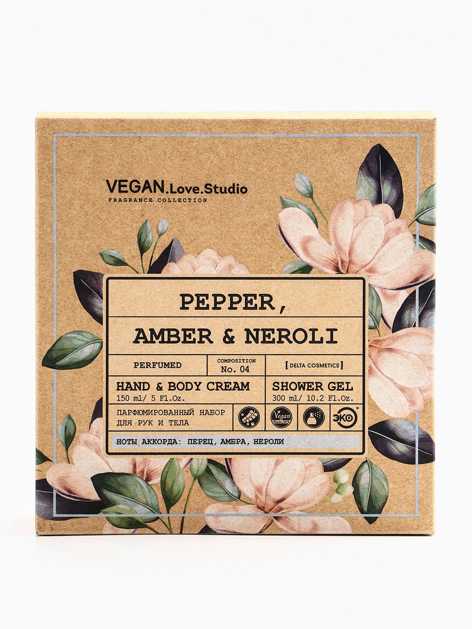 Подарочный набор женский гель для душа, крем-лосьон, парфюмированный, перец, амбра, нероли, VEGAN.Love.Studio, Россия