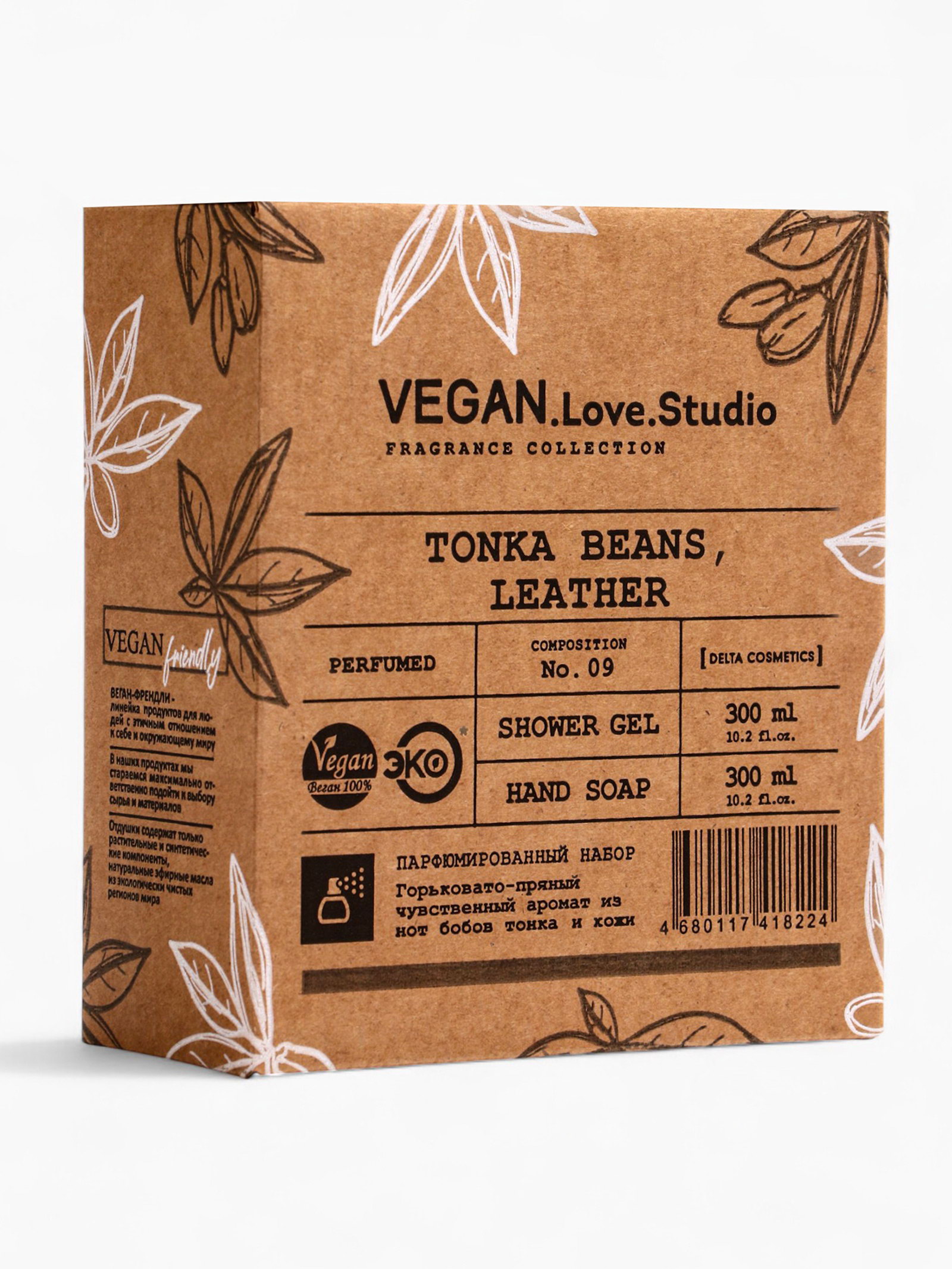 Подарочный набор женский гель для душа, мыло для рук, парфюмированный, бобы тонка, кожа, VEGAN.Love.Studio, Россия