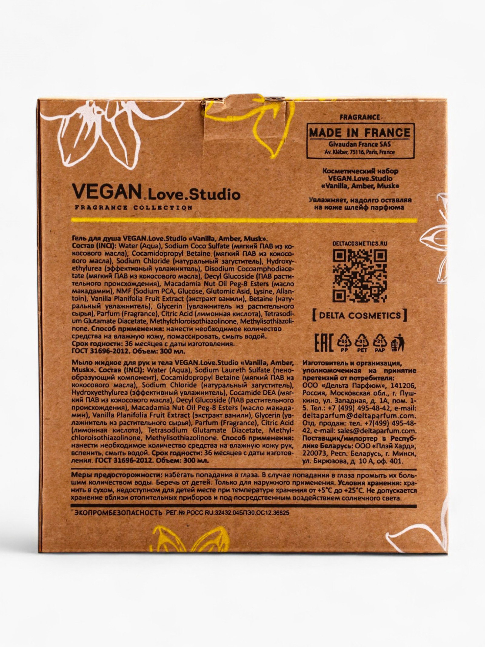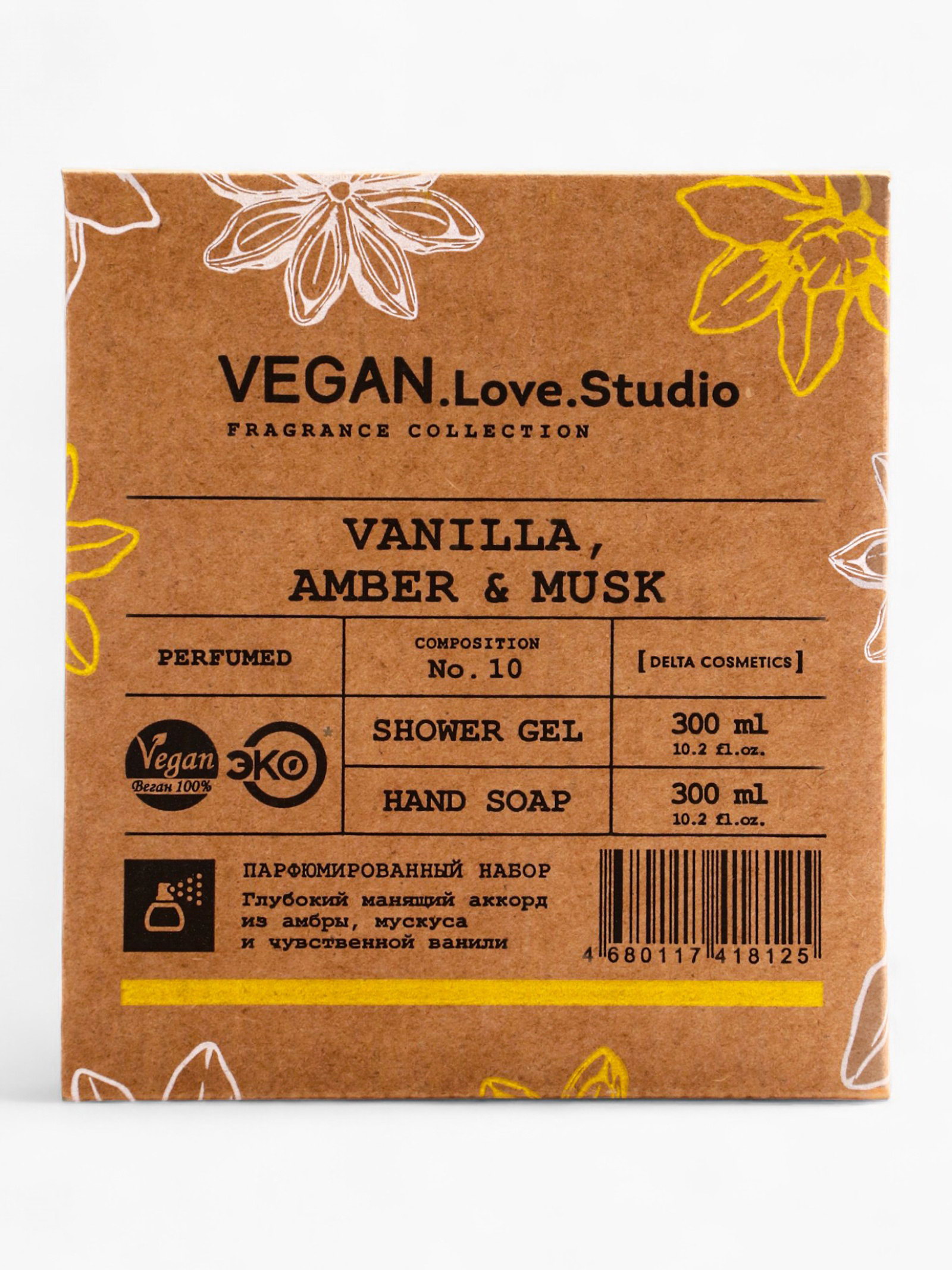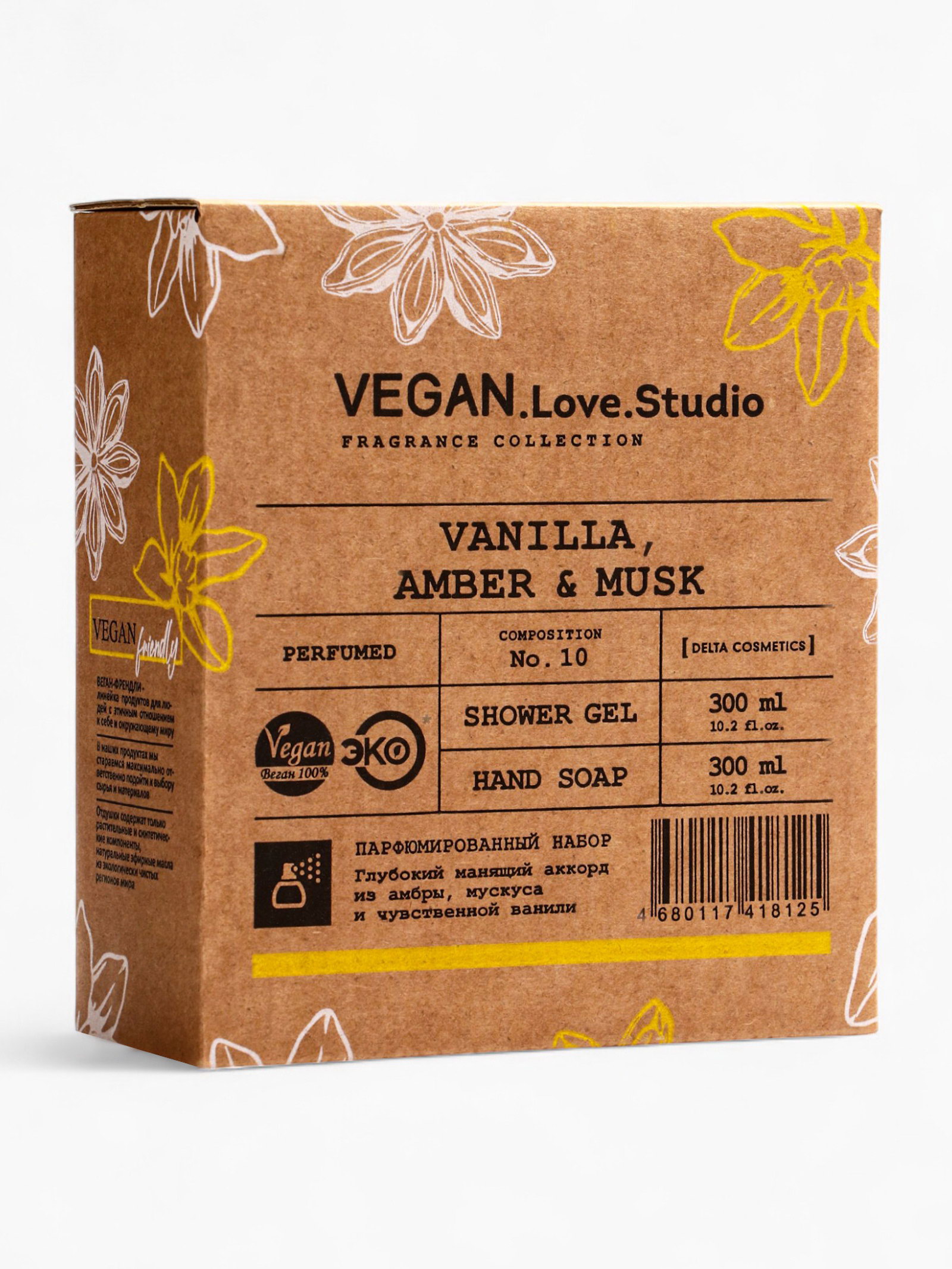 Подарочный набор женский гель для душа, мыло для рук, парфюмированный, ваниль, амбра, мускус, VEGAN.Love.Studio, Россия