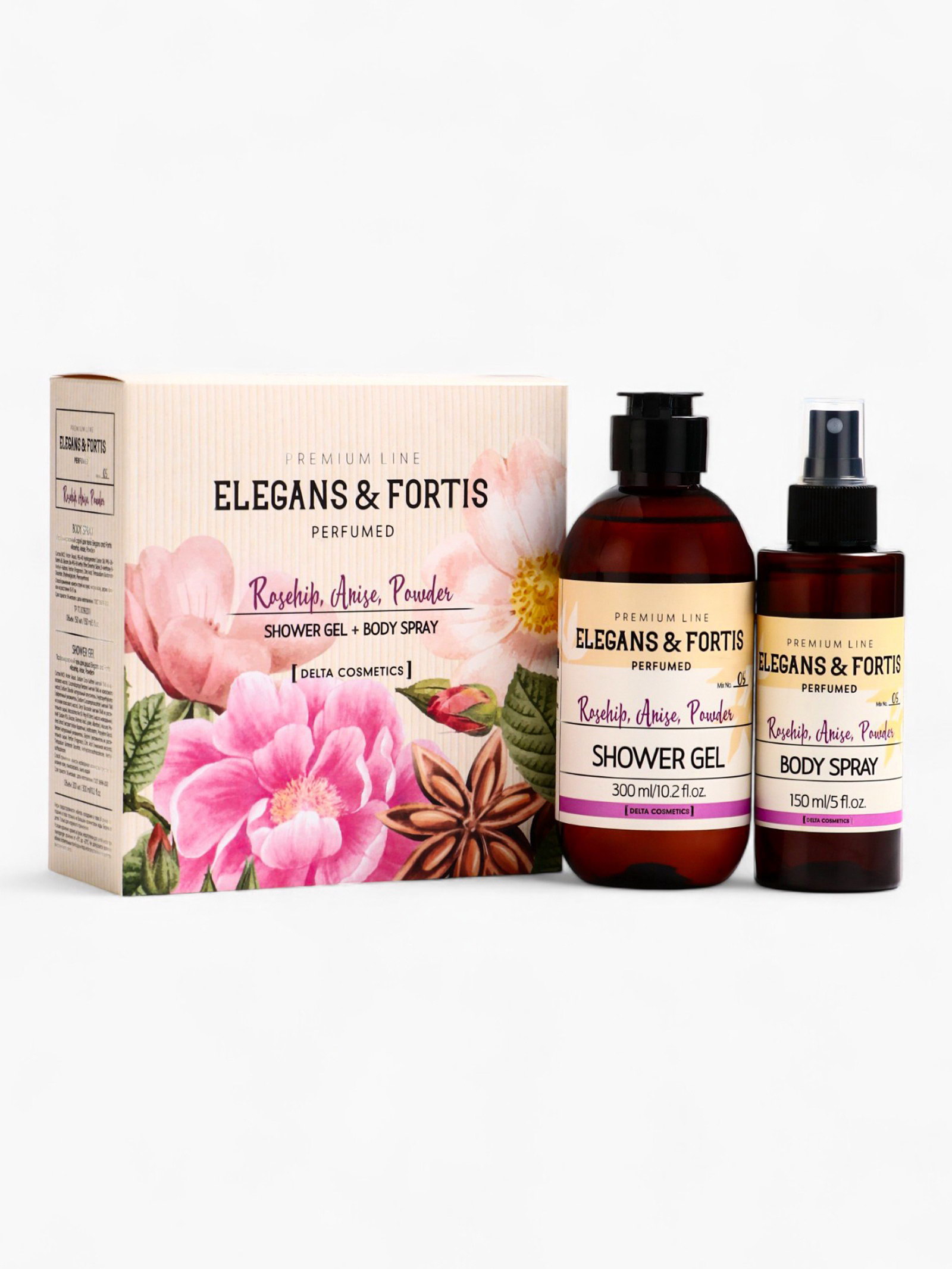 Подарочный набор женский гель для душа, спрей для тела, парфюмированный, шиповник, анис, пудровые ноты, VEGAN.Love.Studio, Россия