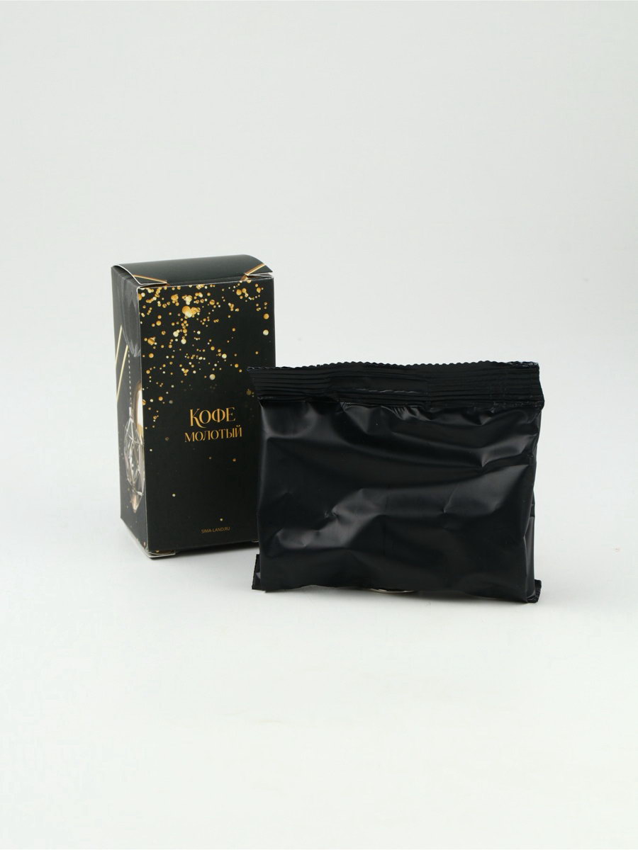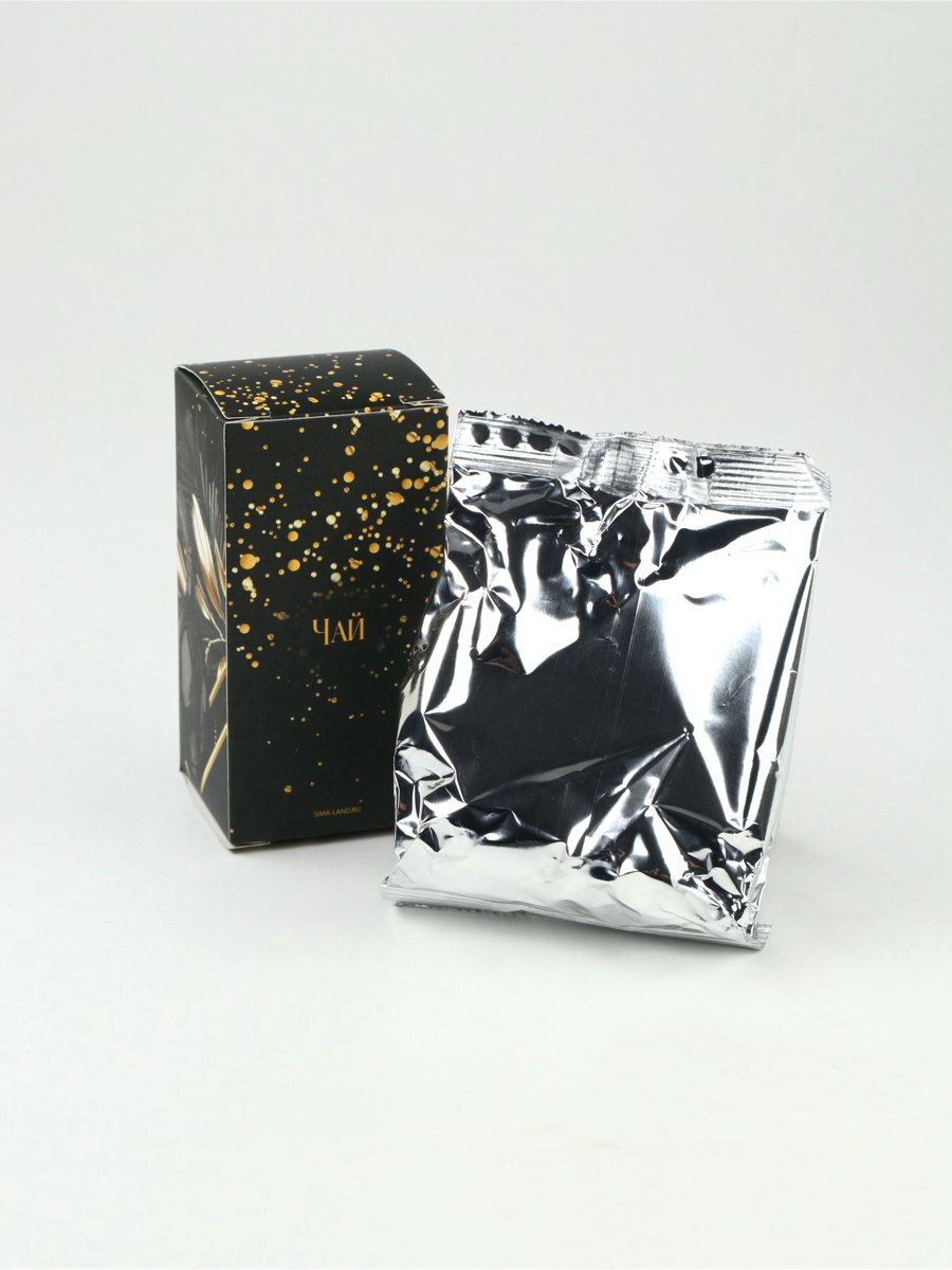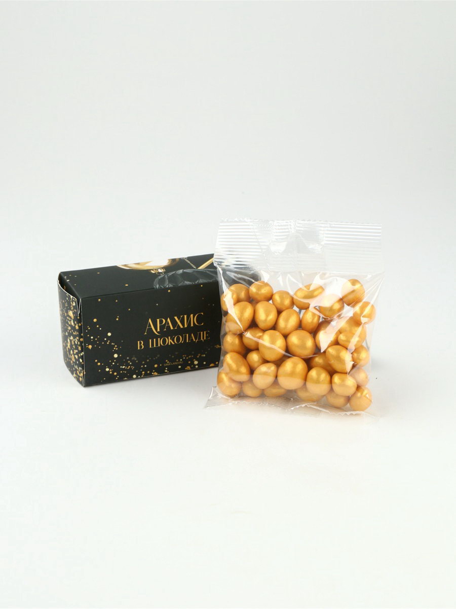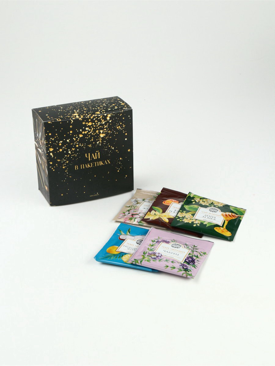 Подарочный новогодний набор "С новым годом, черно-золотой": чай чёрный/зелёный, кофе натуральный жареный молотый, печенье с предсказанием, драже, арахис в шоколадной глазури, Фабрика счастья, Россия