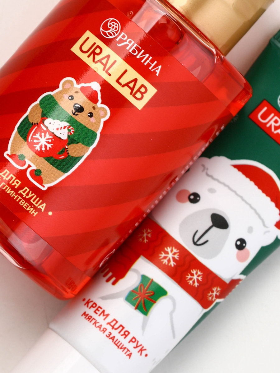 Новогодний подарочный набор косметики "Тепла и уюта": гель для душа 110 мл и крем для рук 30 мл, URAL LAB, Россия