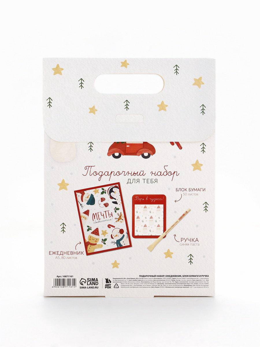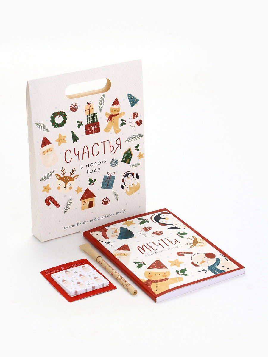 Подарочный набор новогодний, ежедневник, блок бумаги и ручка "Тепла", ArtFox, Россия