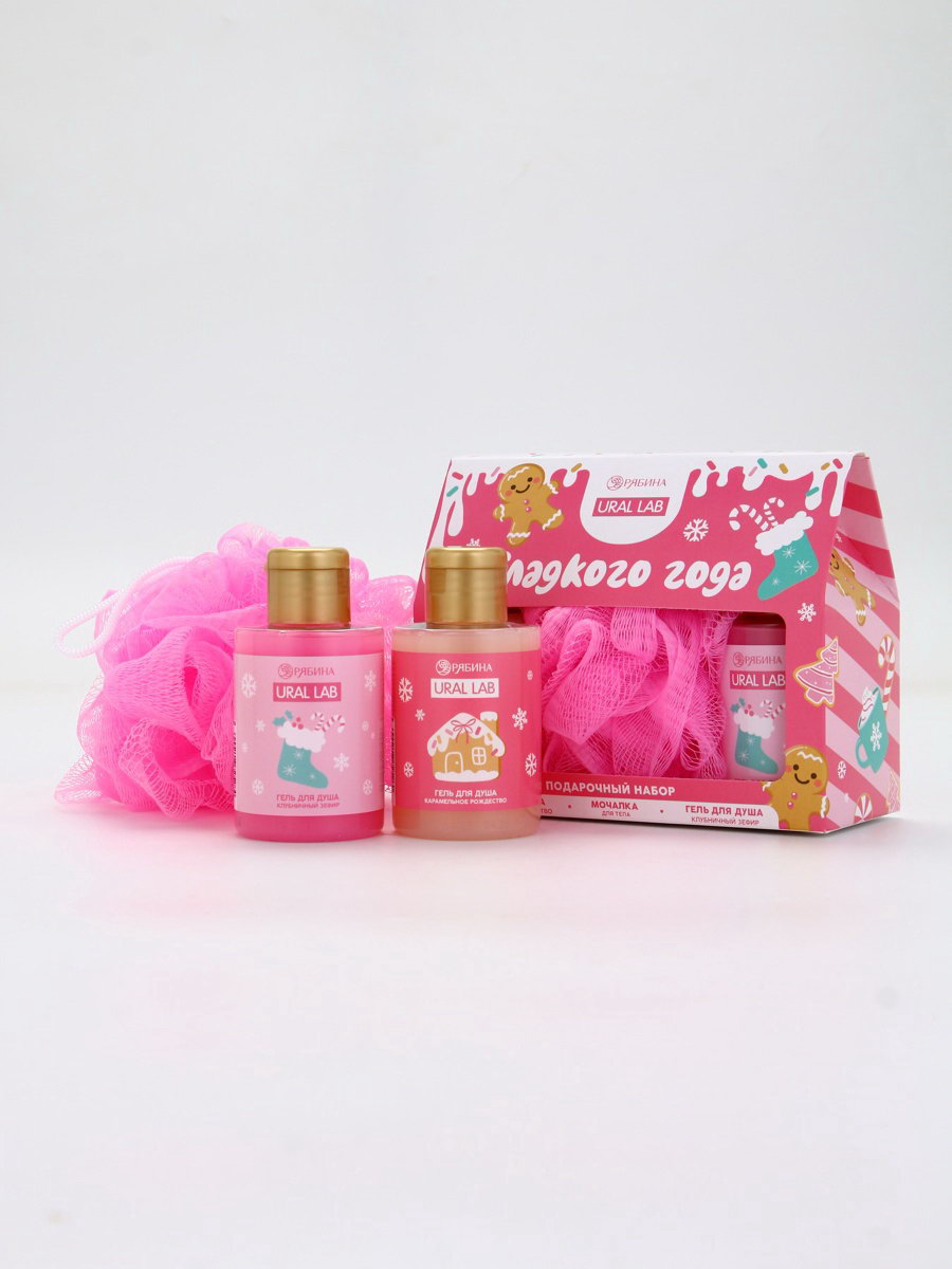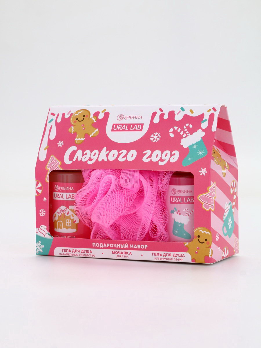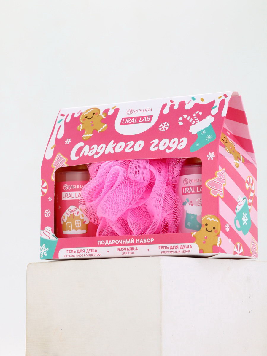 Подарочный набор новогодний "Сладкого года", гель для душа 2 шт. и мочалка для тела, URAL LAB, Россия