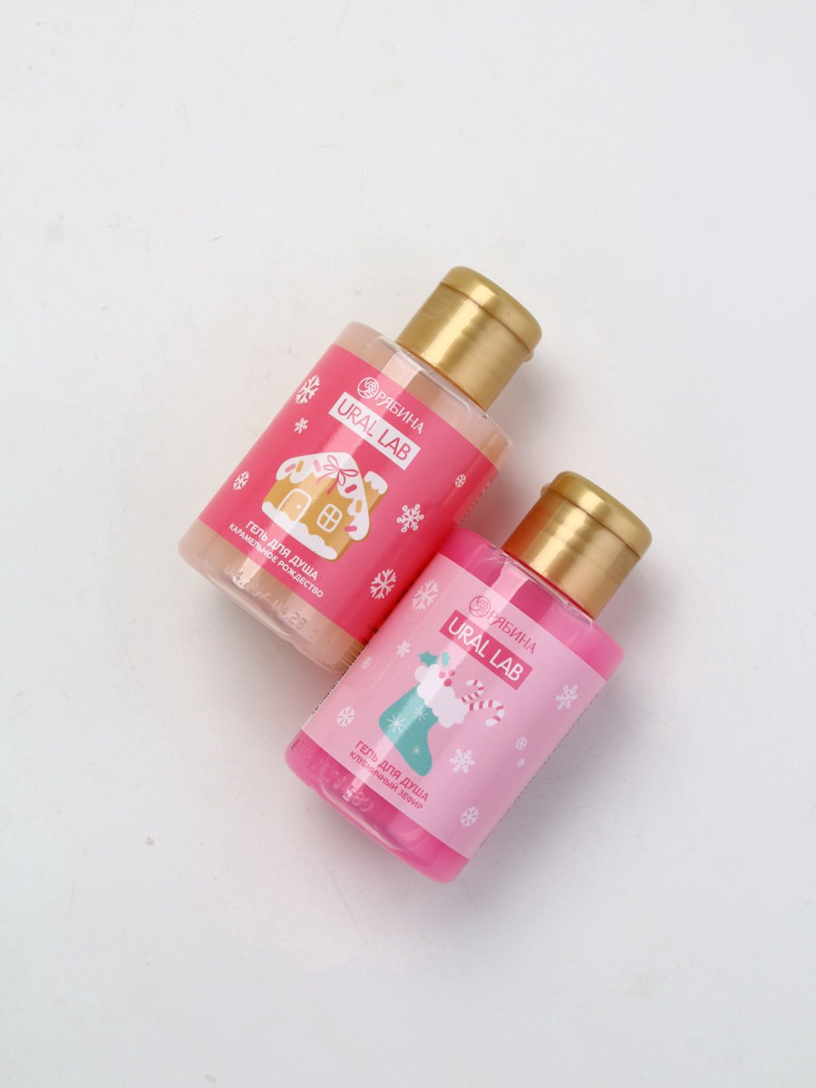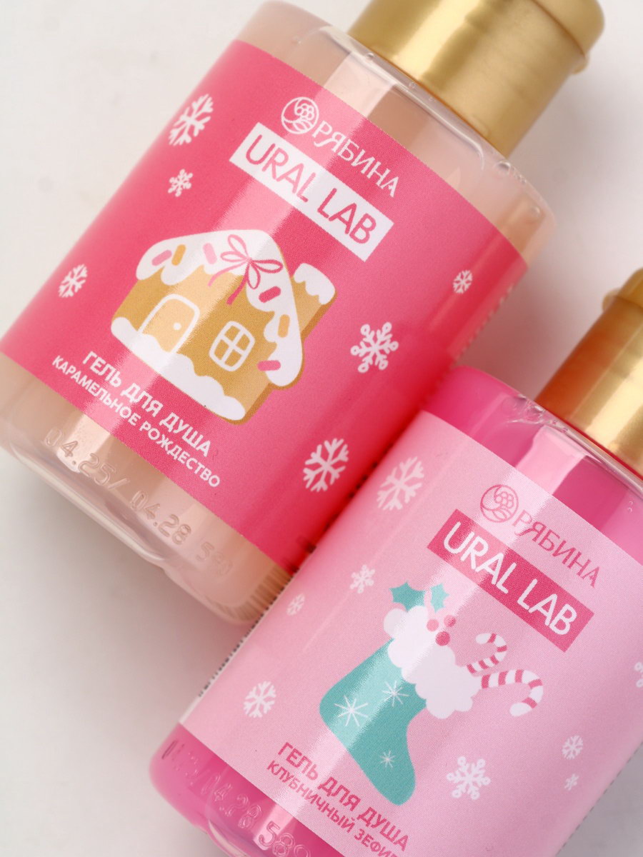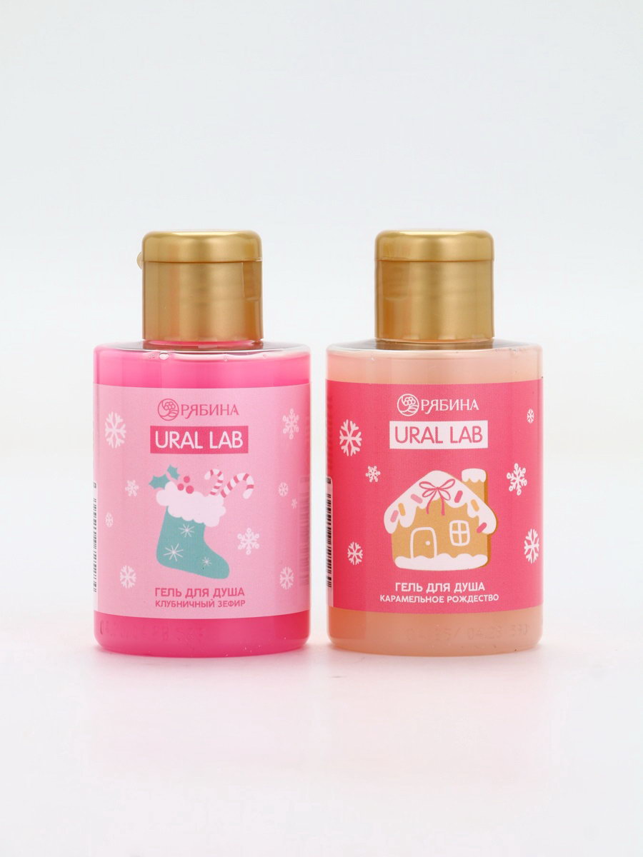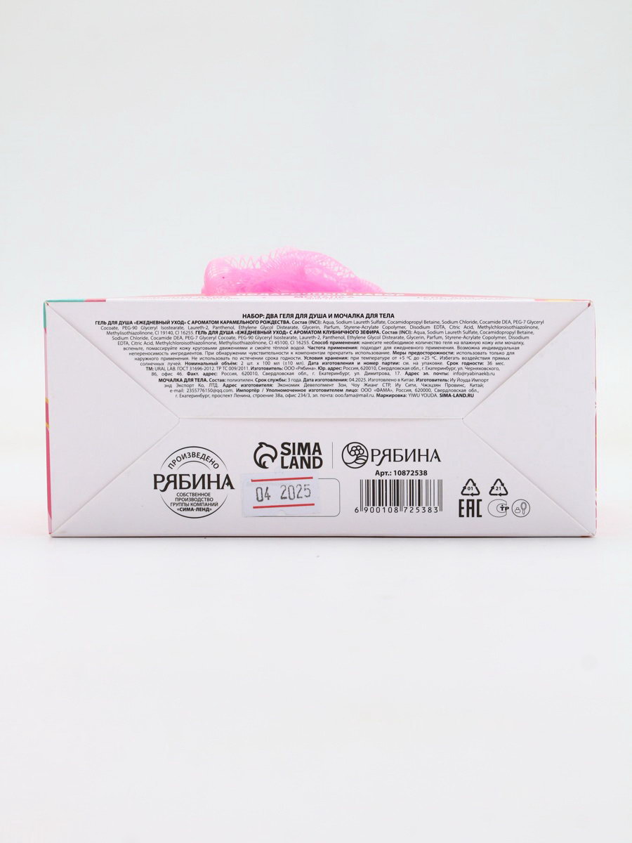 Подарочный набор новогодний "Сладкого года", гель для душа 2 шт. и мочалка для тела, URAL LAB, Россия