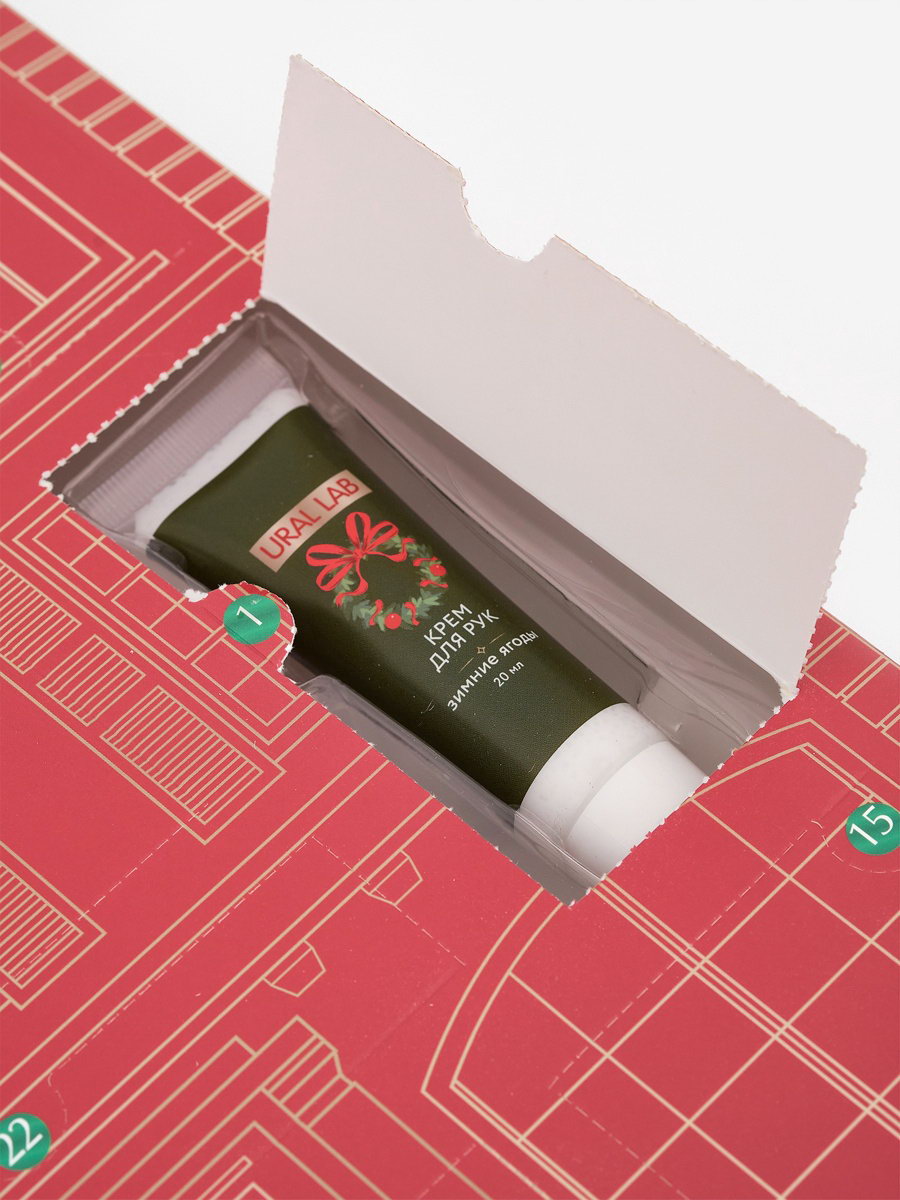 Адвент-календарь косметики Happy New Year, 24 предмета, 8.7x28x34 см., URAL LAB, Китай