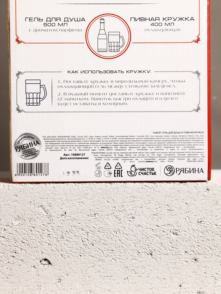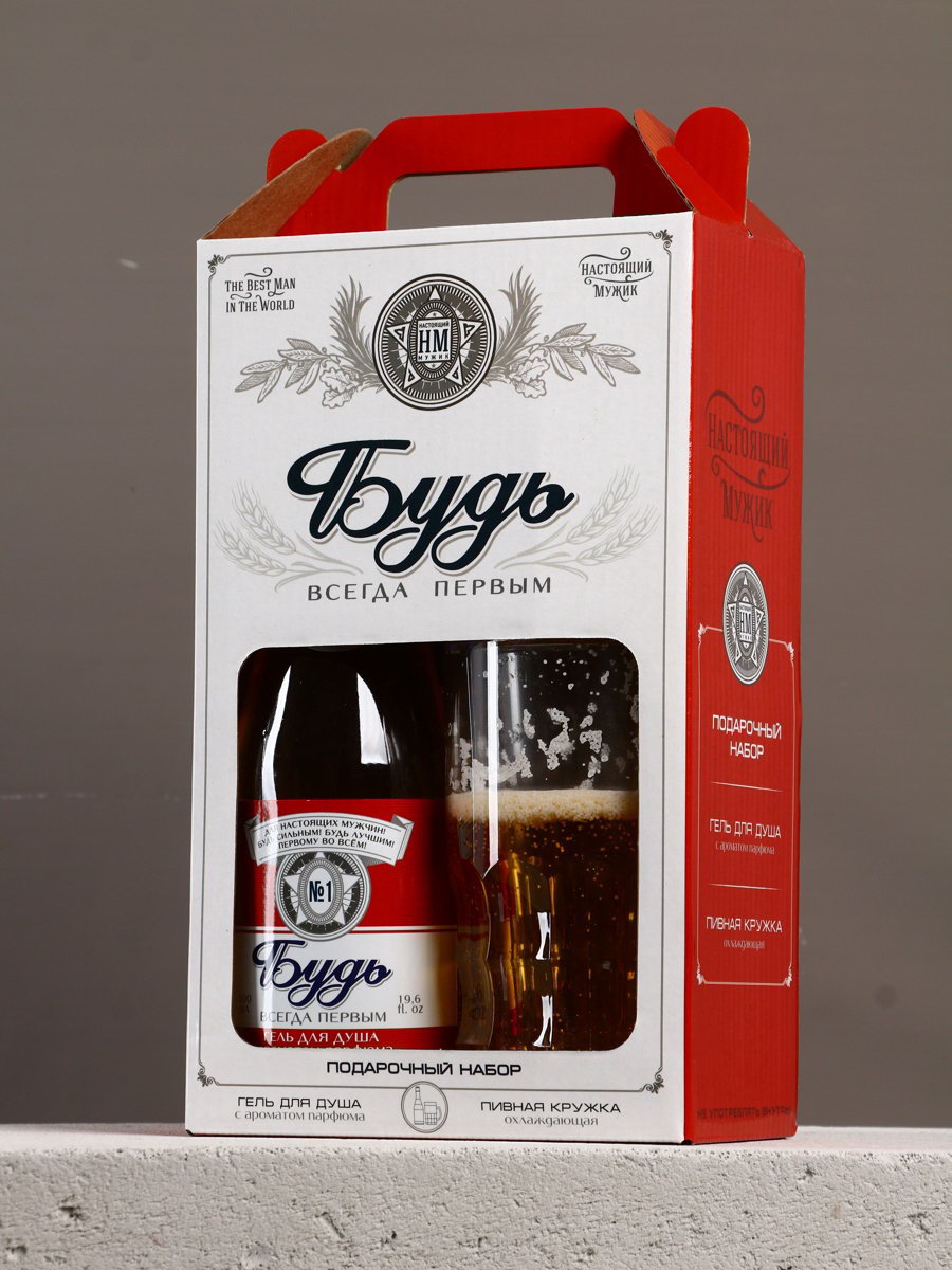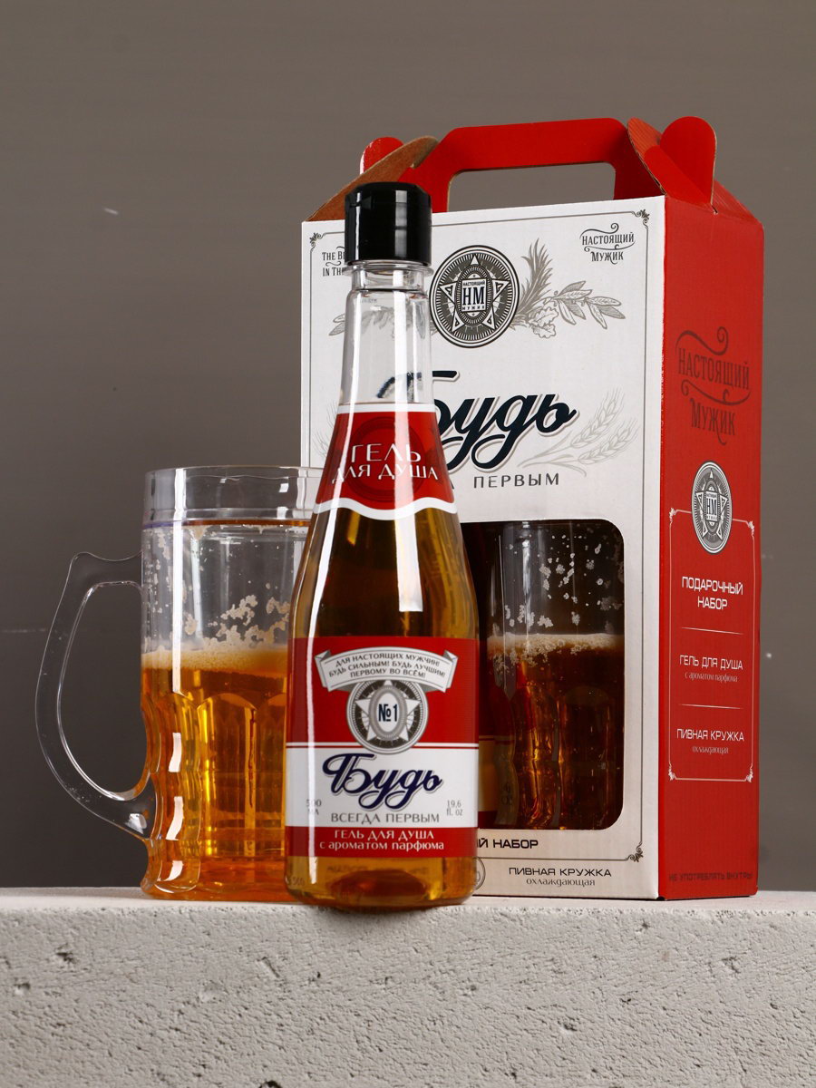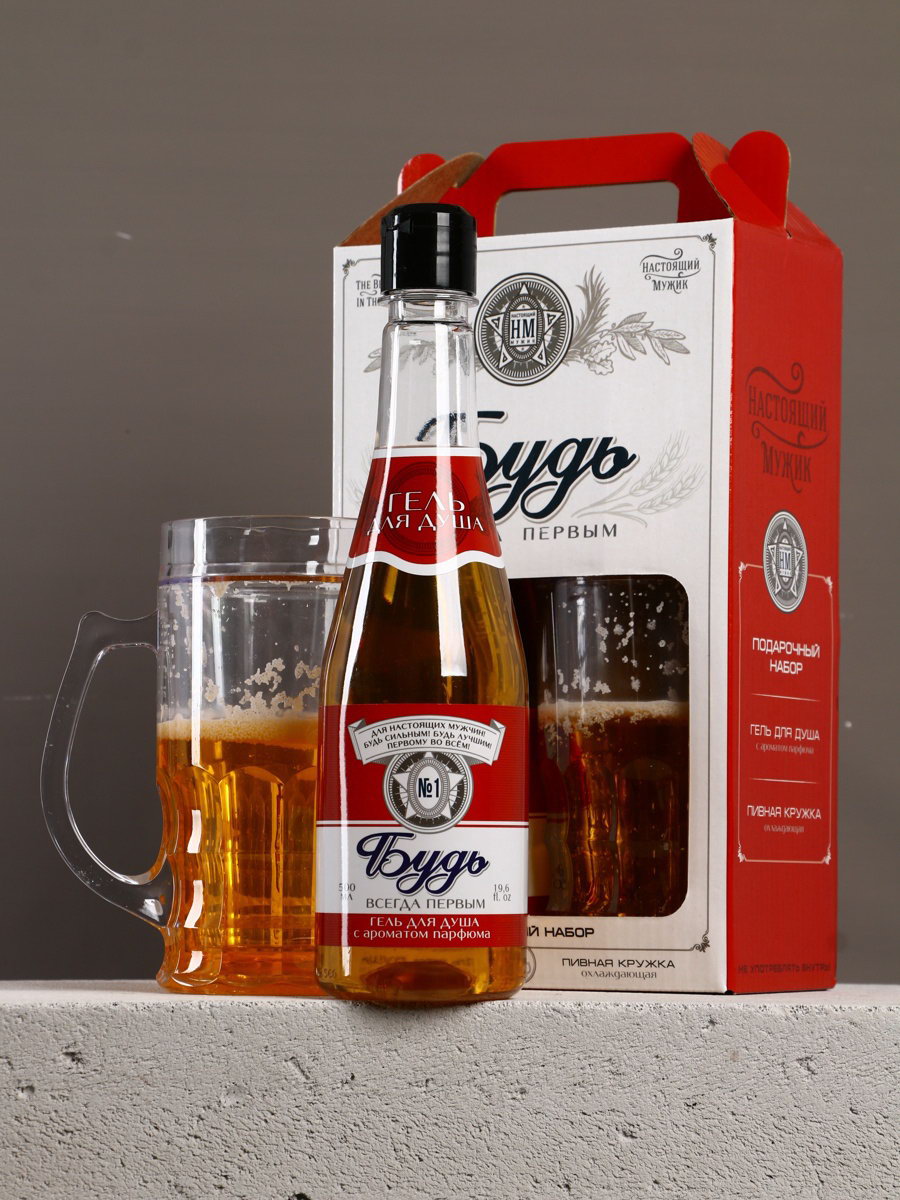 Подарочный набор "Будь": гель для душа пиво и кружка с имитацией, 500 мл, Чистое счастье, Россия