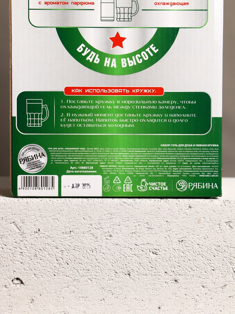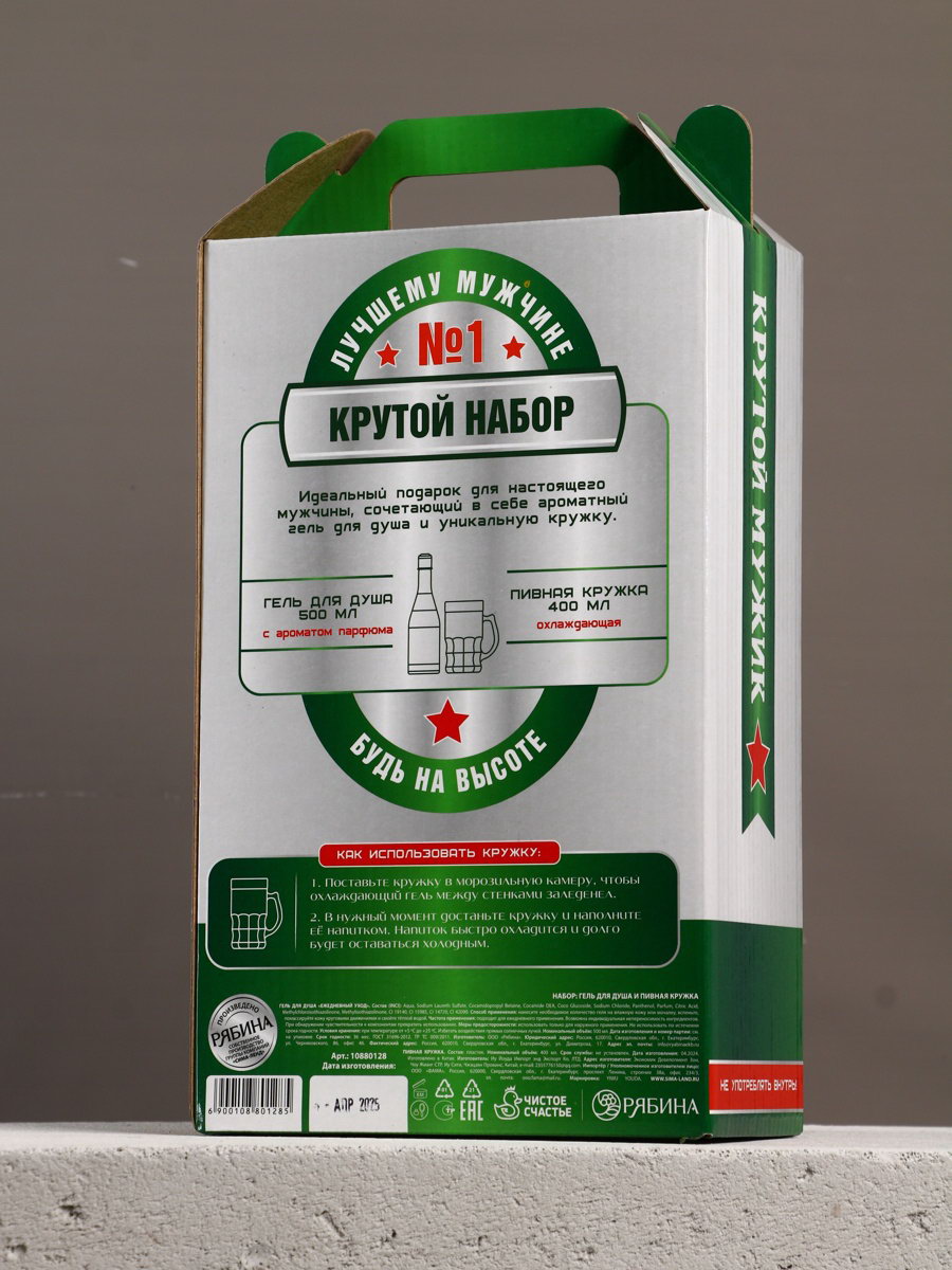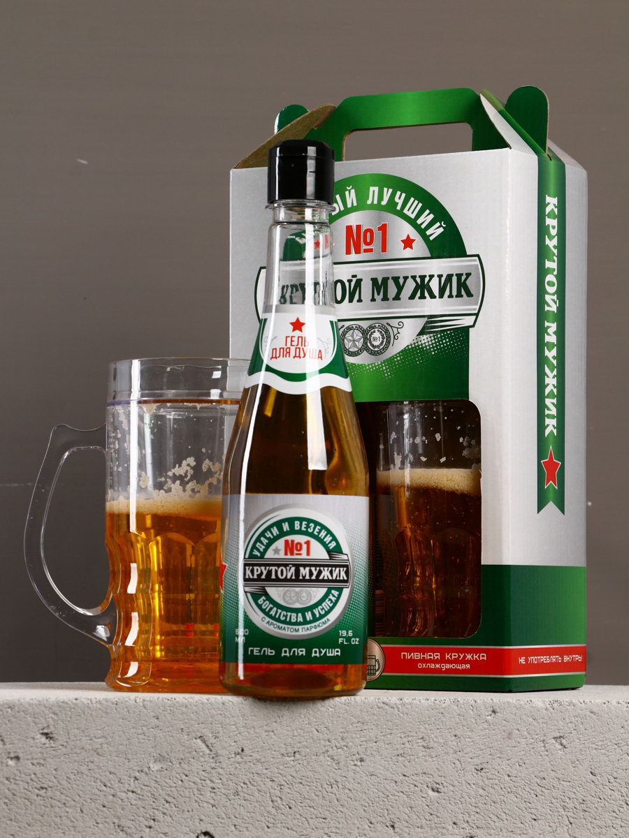 Подарочный набор "Крутой мужик": гель для душа пиво и кружка с имитацией, 500 мл, Чистое счастье, Россия