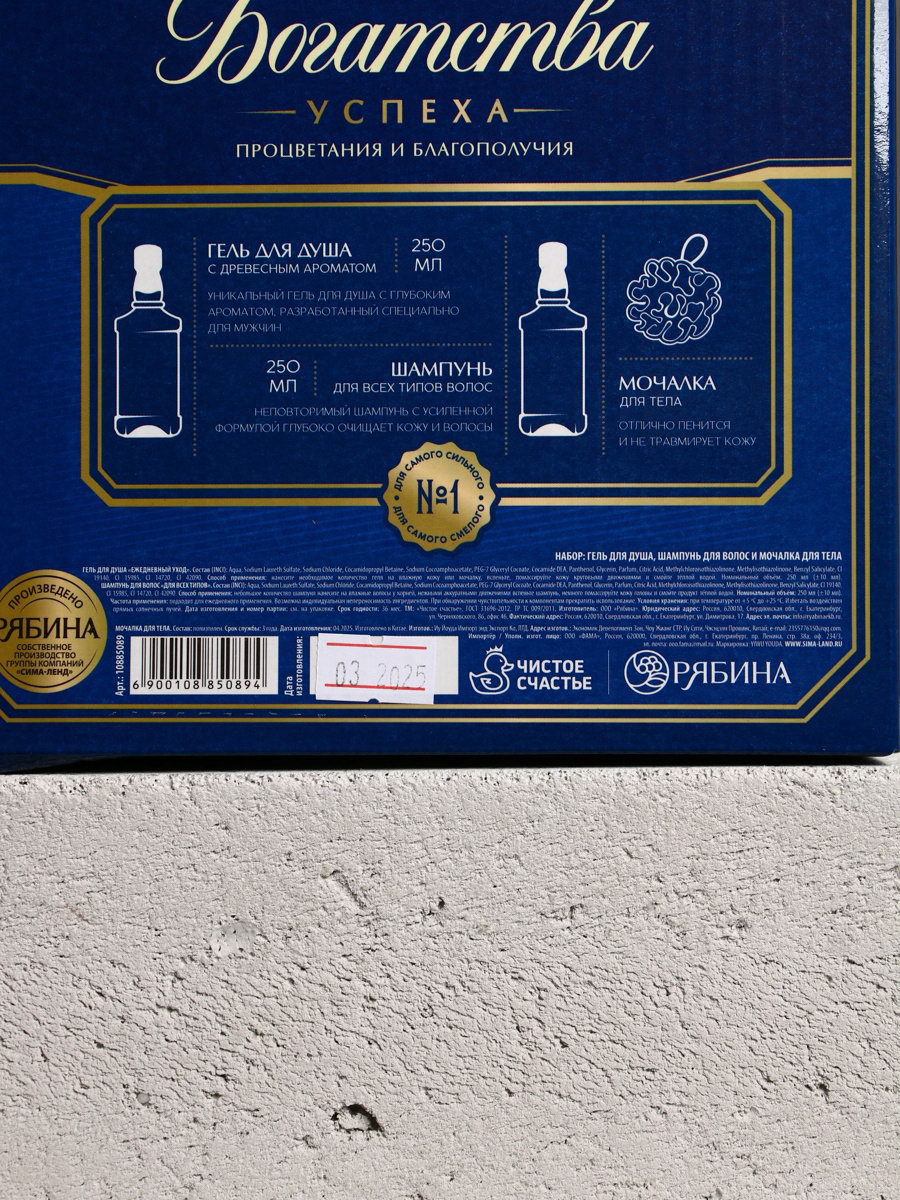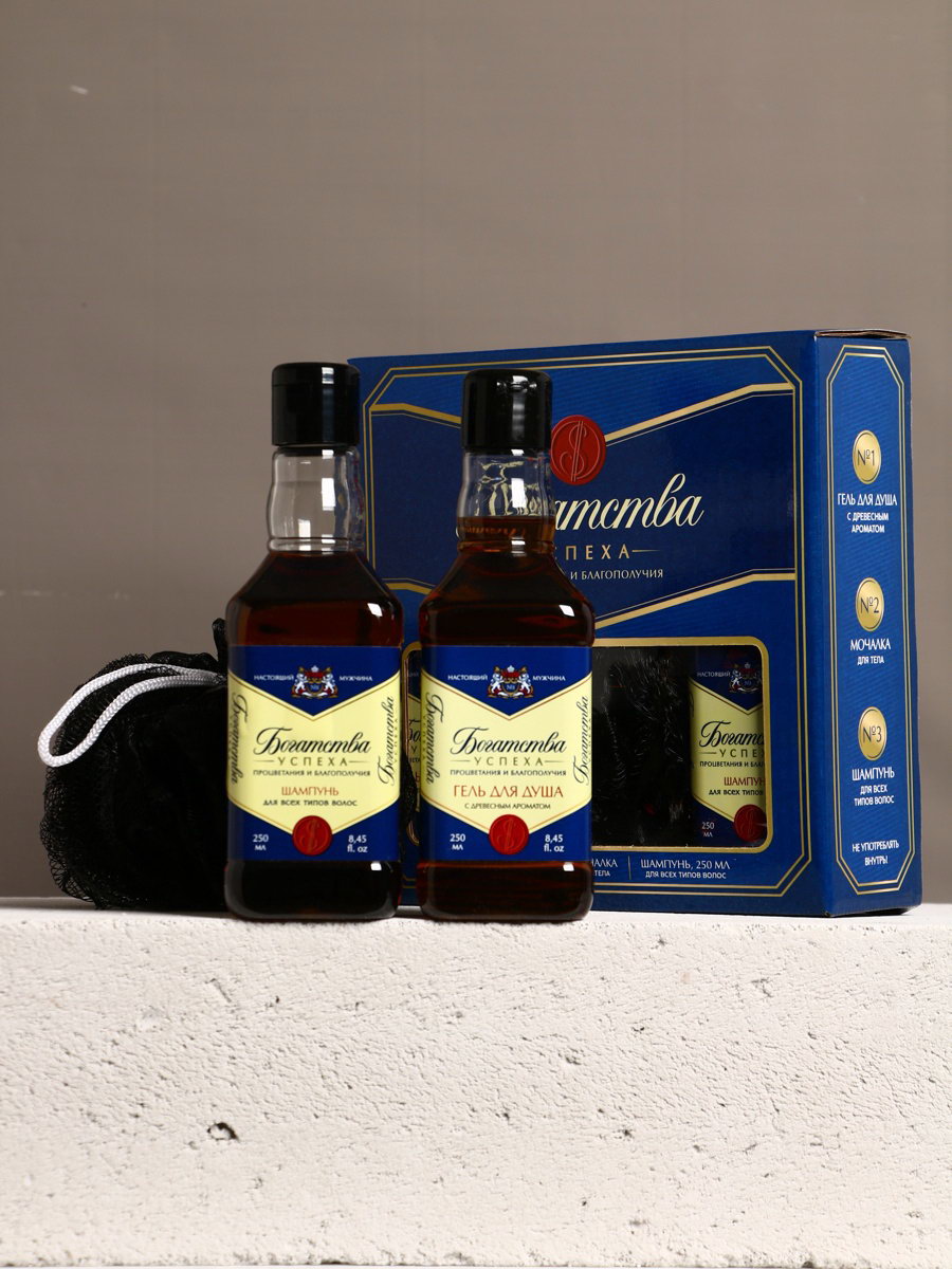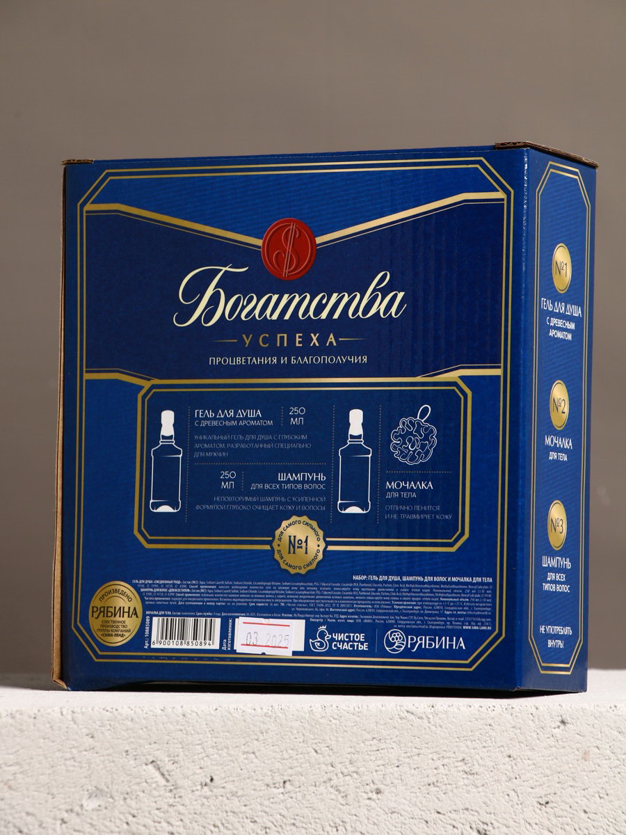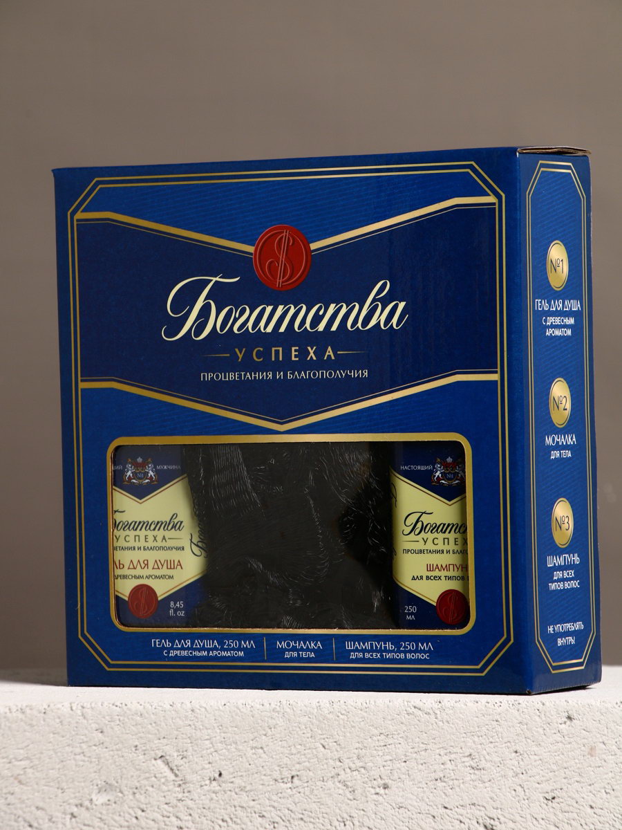 Подарочный набор "Богатства": гель для душа, шампунь для волос, мочалка для тела, Чистое счастье, Россия