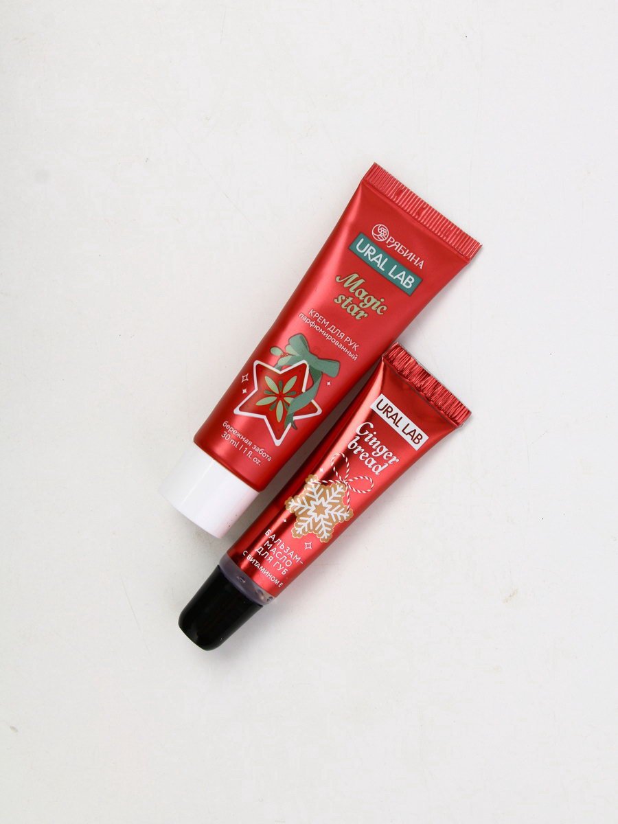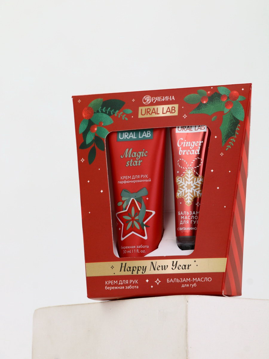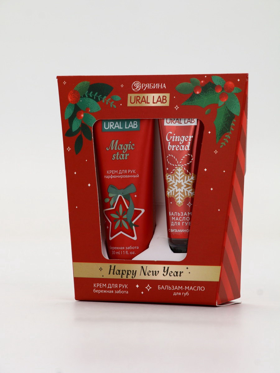 Новогодний подарочный набор косметики Happy New Year: крем для рук и бальзам для губ, URAL LAB, Россия