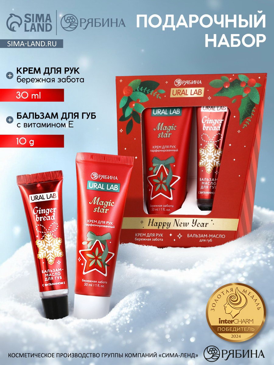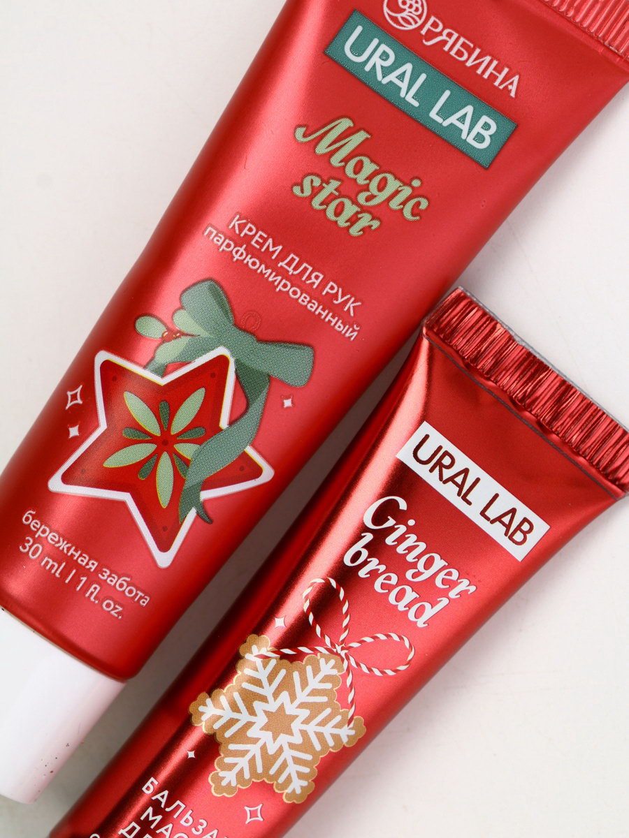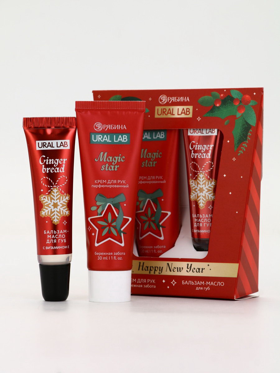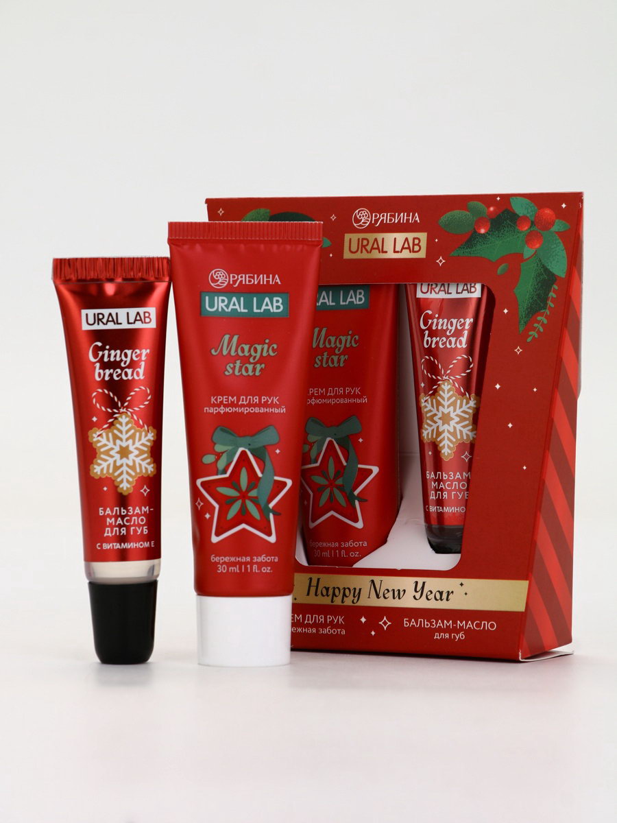 Новогодний подарочный набор косметики Happy New Year: крем для рук и бальзам для губ, URAL LAB, Россия