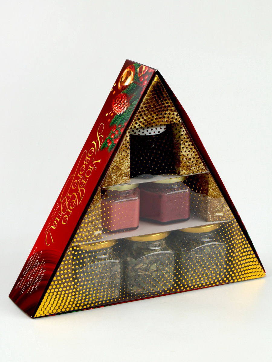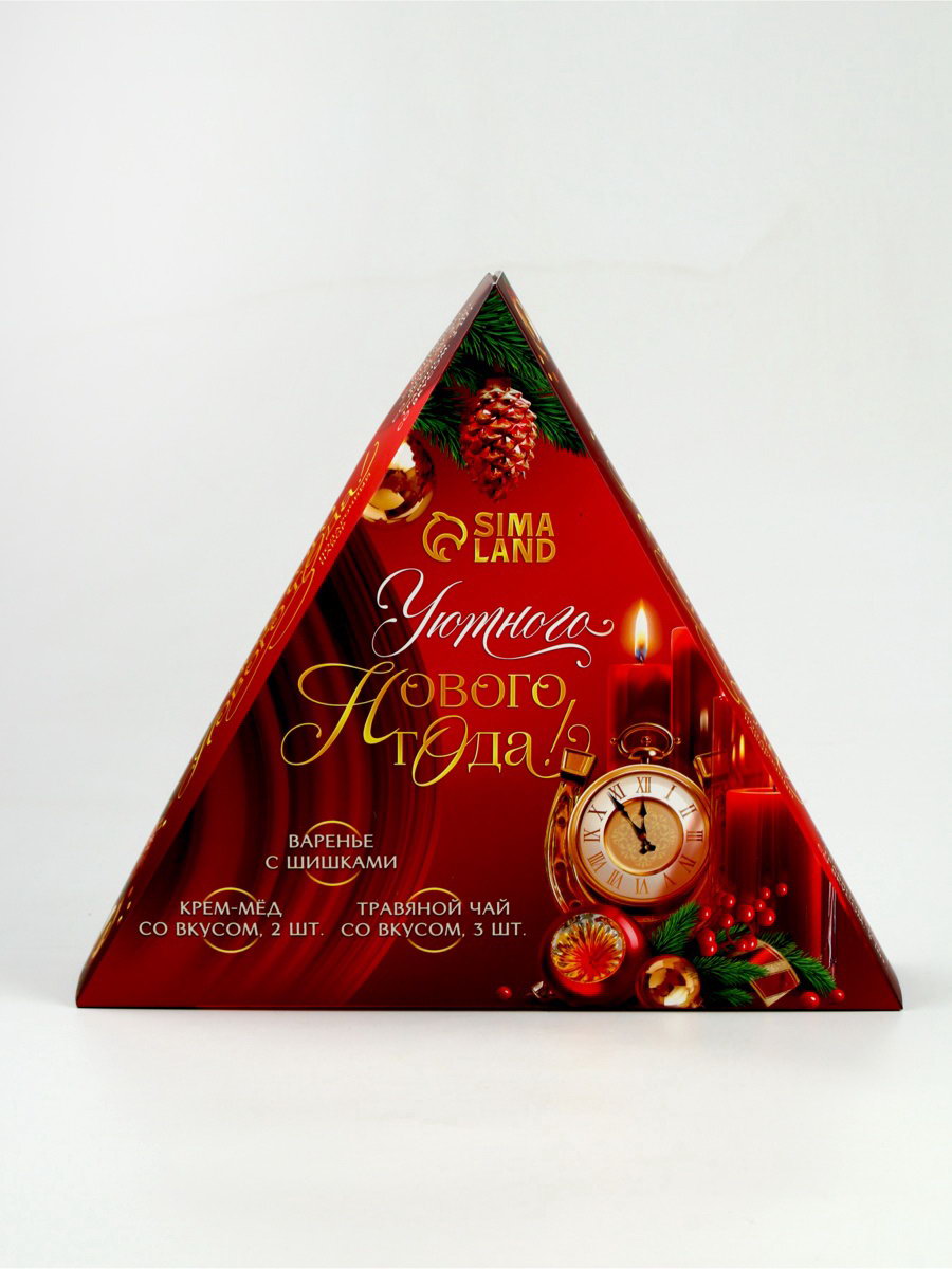 Подарочный набор новогодний "Уютного года" крем-мёд 2 шт. x 120 г, варенье 100 мл, чай 3 шт. x 25 г, Фабрика счастья, Россия