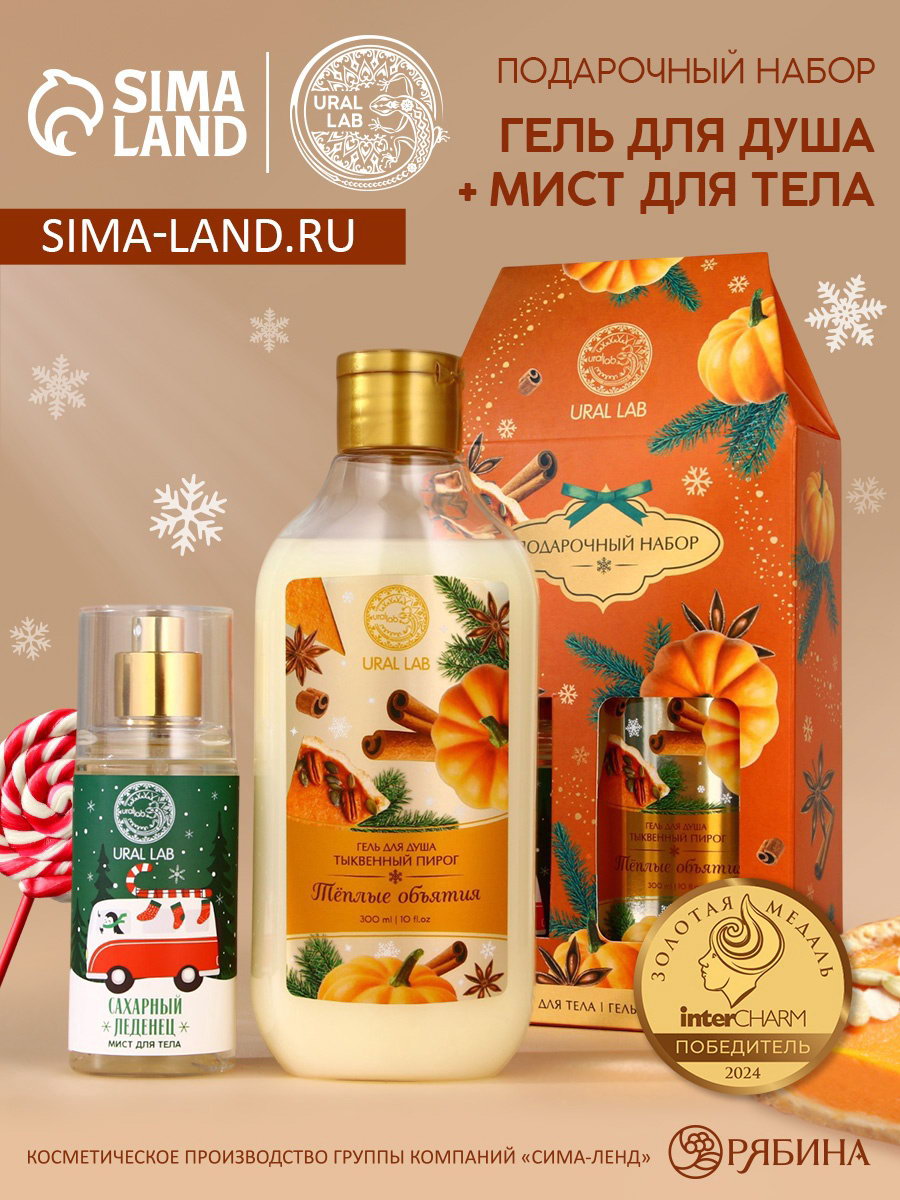 Подарочный набор новогодний "Тёплые объятия": гель для душа 300 мл и мист для тела 88 мл, URAL LAB, Россия